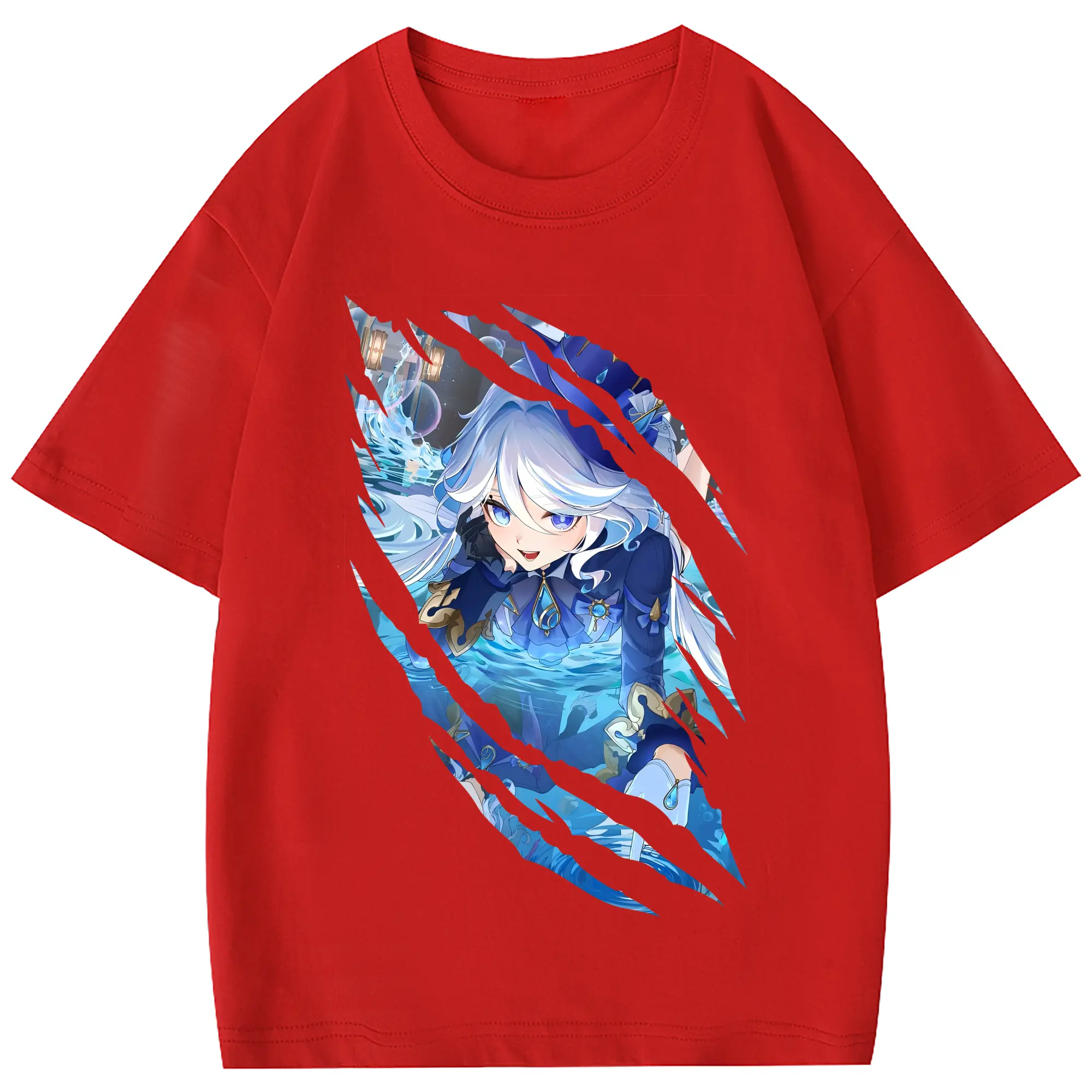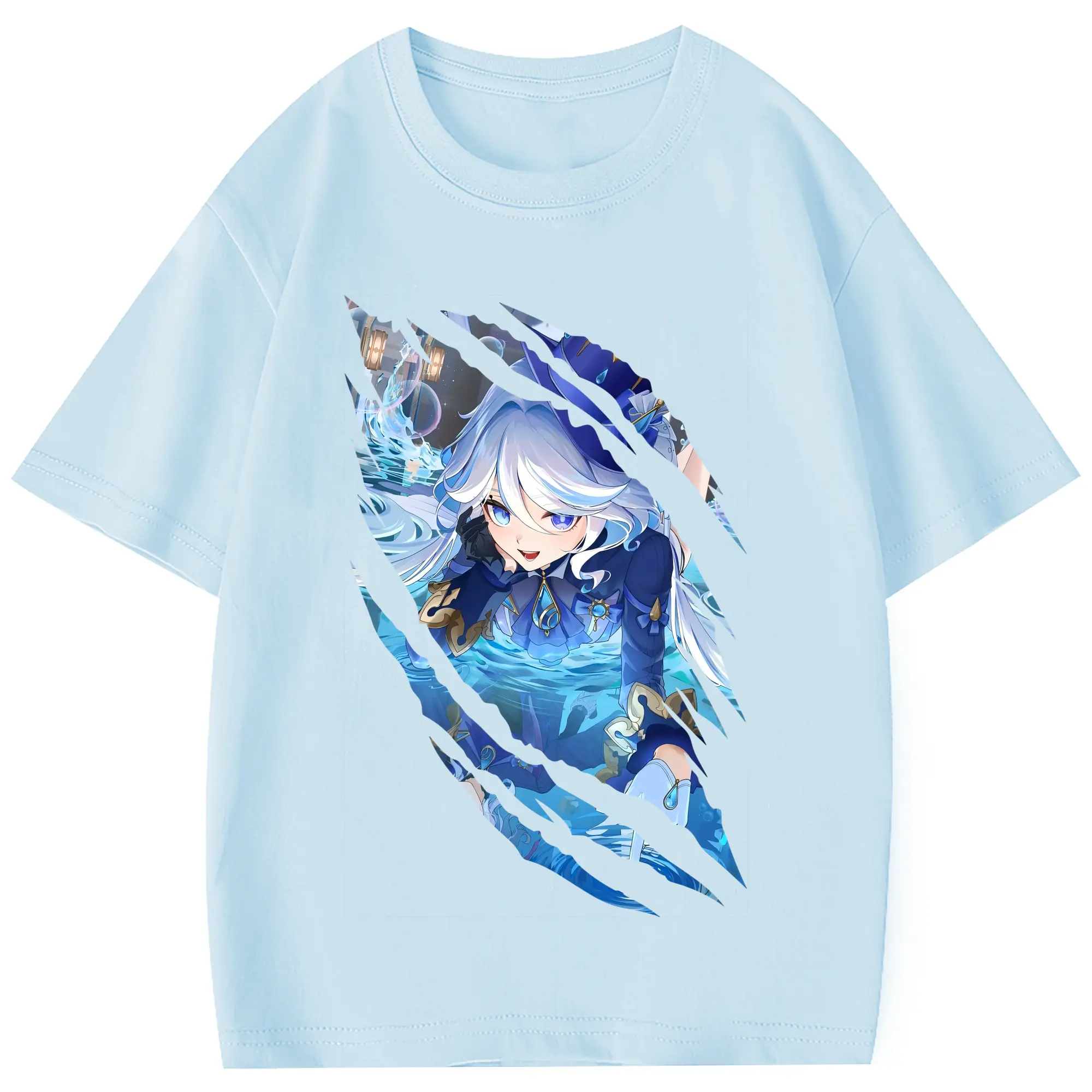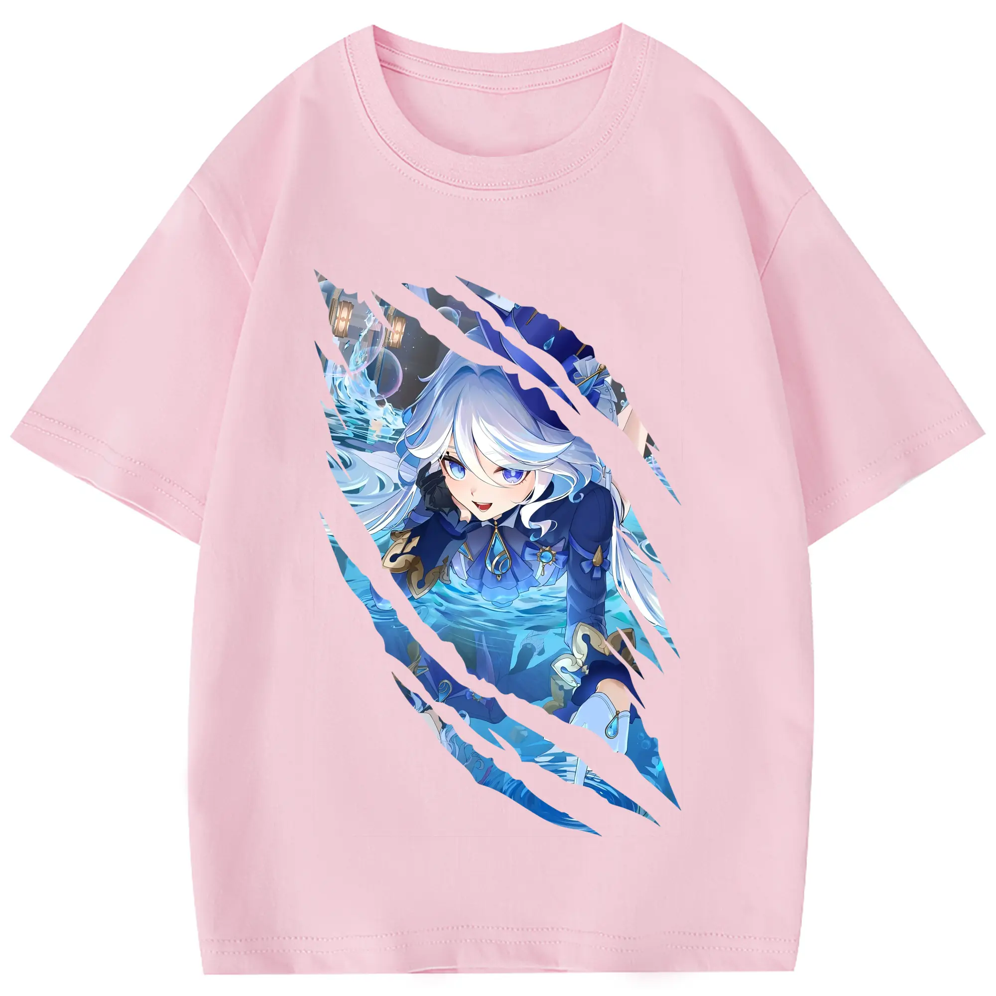 原 神 グッズ フリーナ - 綿100% 半袖Tシャツ ・ バックプリント ・ 快適 通気性 ・ 日常使い 散歩 スポーツ用