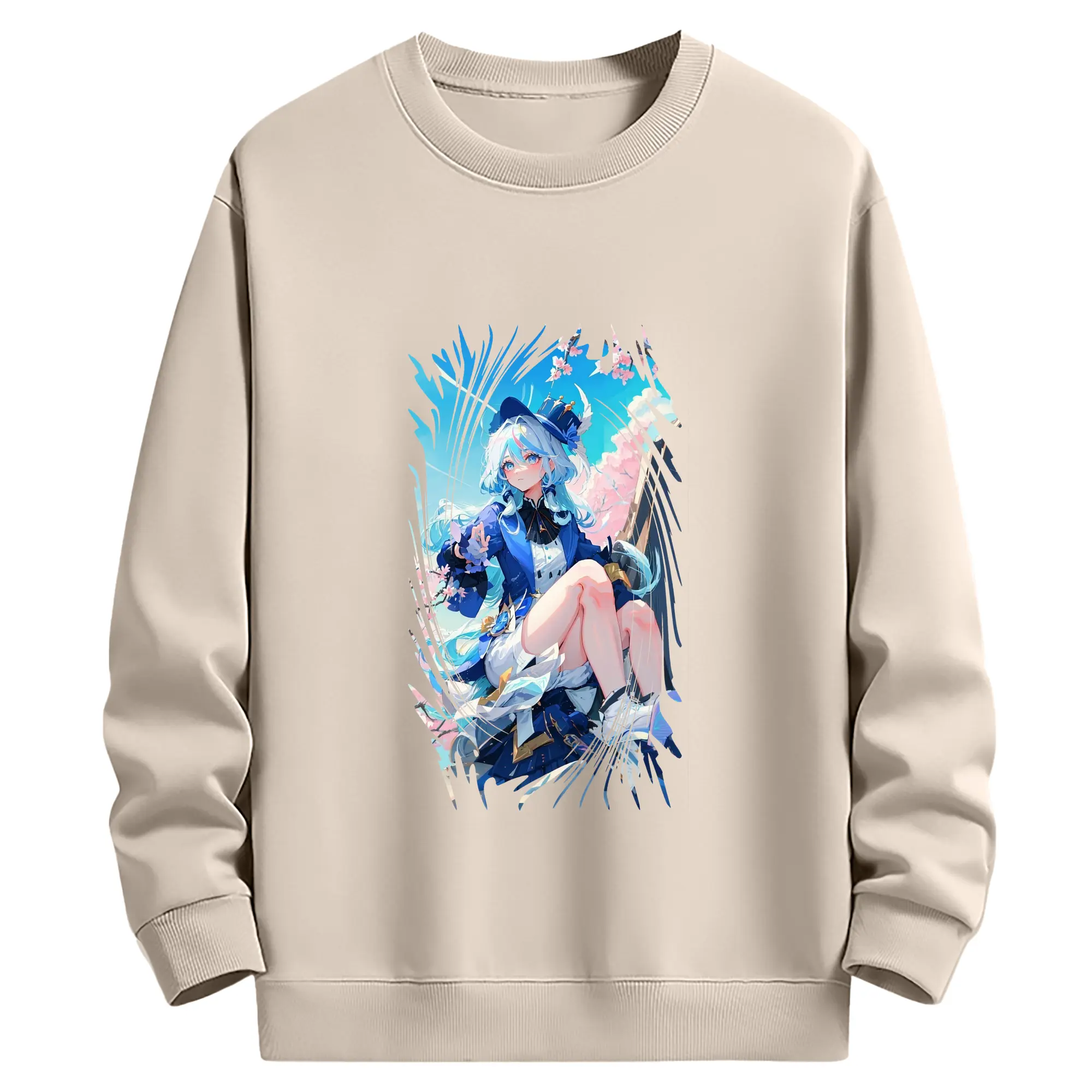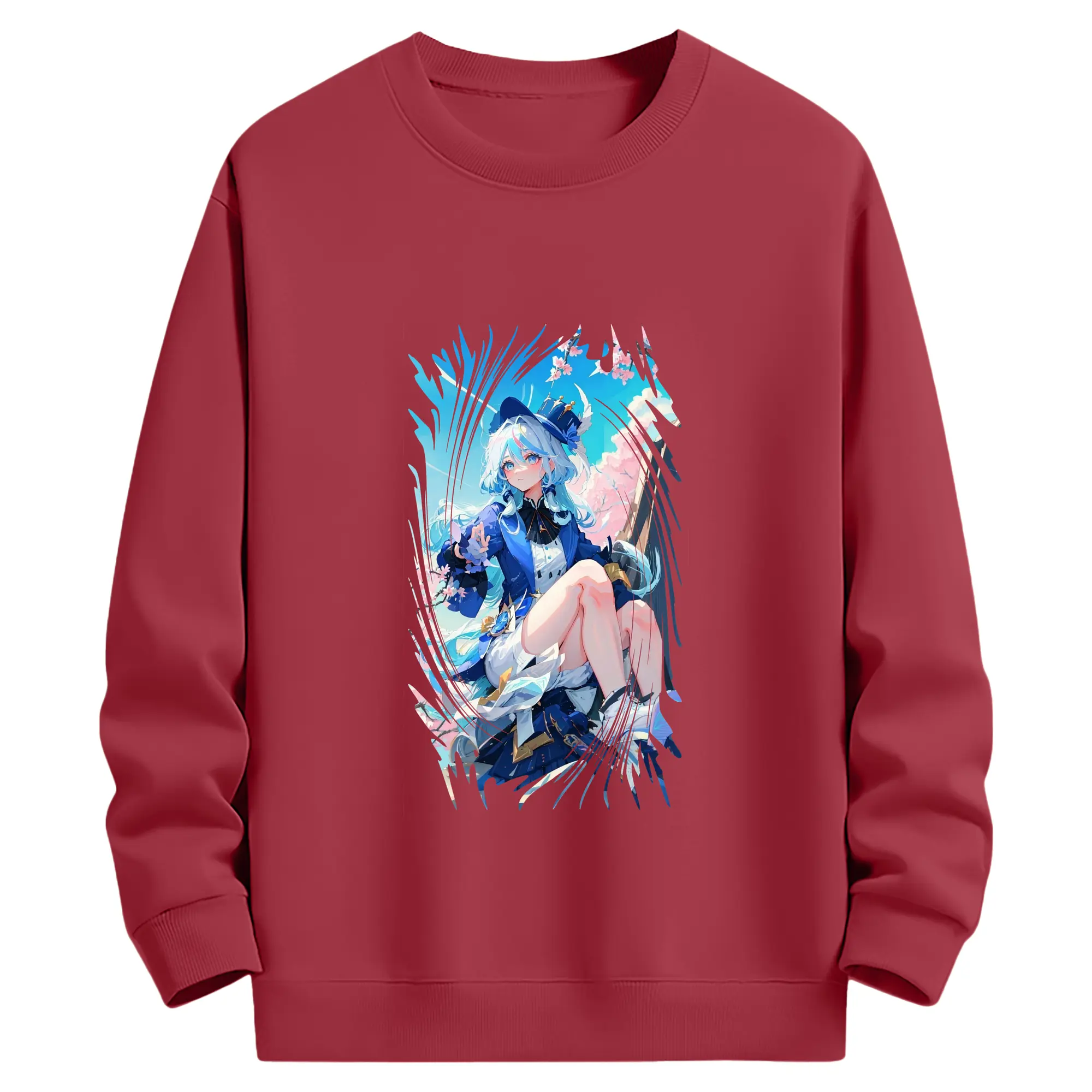 原 神 グッズ フリーナ - 薄手 クルーネック スウェット 裏毛260g · ポリエステル 春秋向け カジュアル 男女兼用 · トレーナー デイリー スポーツ 散歩に最適
