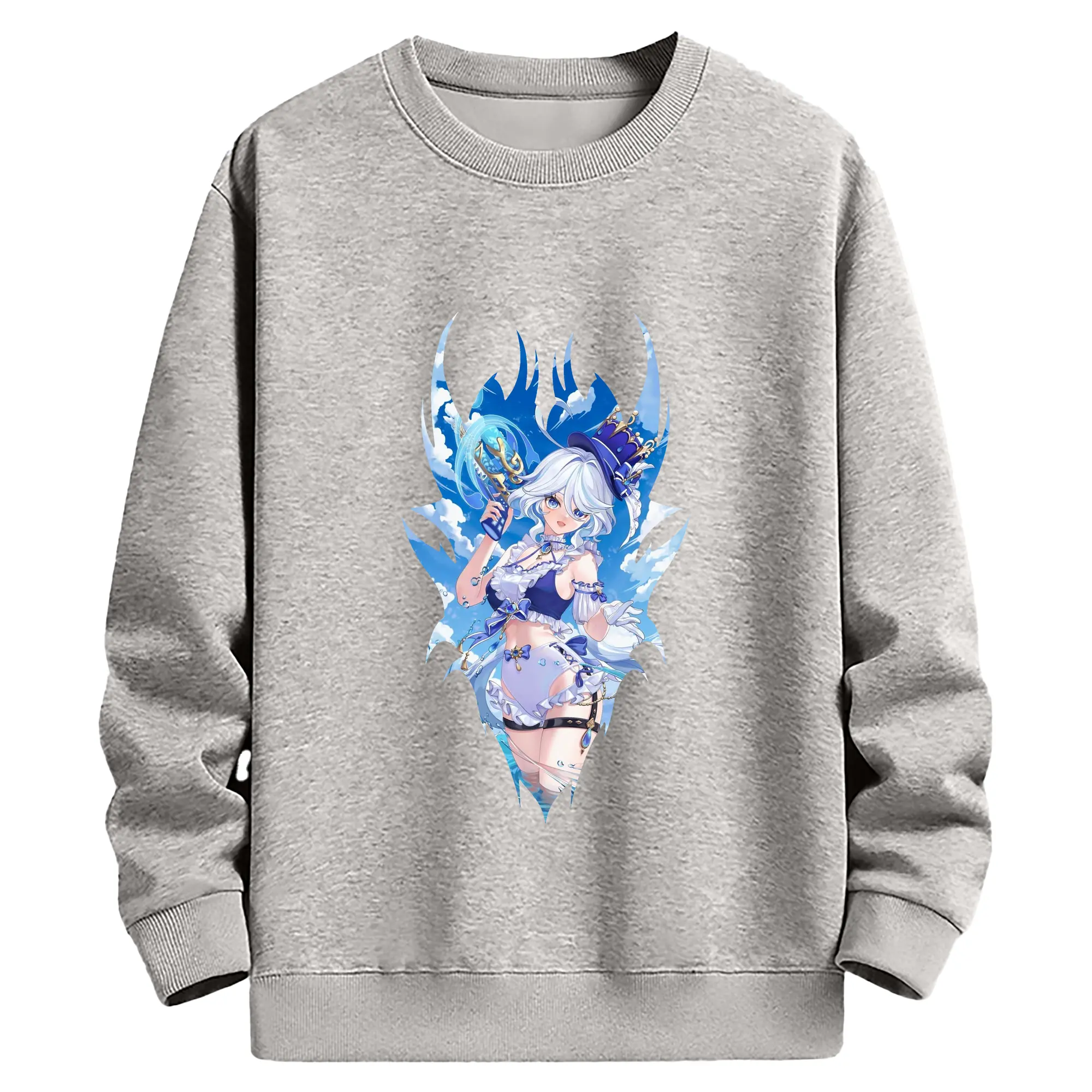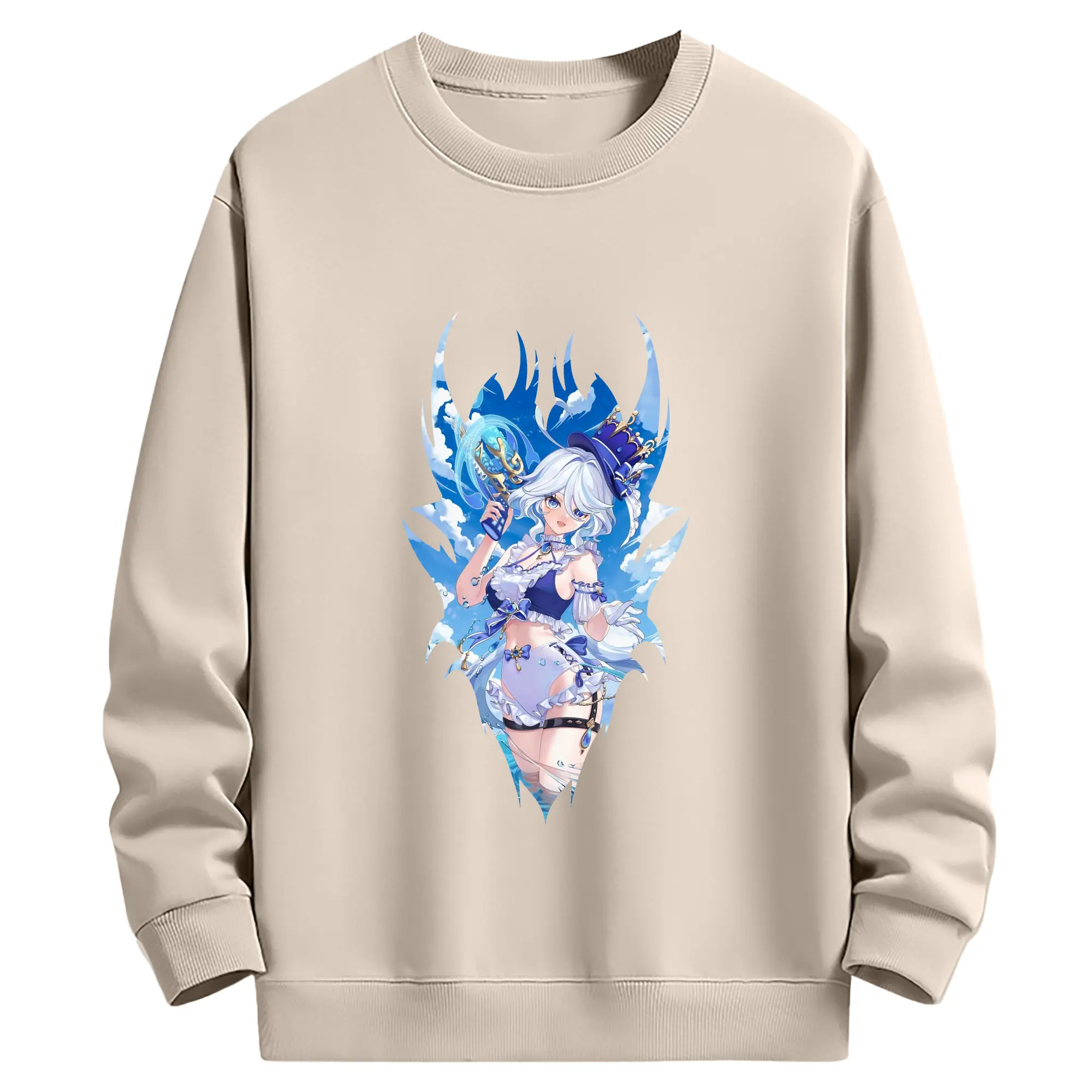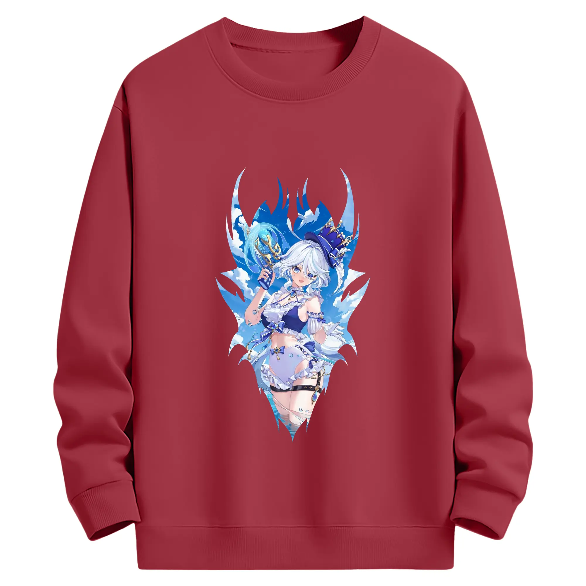 原 神 グッズ フリーナ - 薄手 クルーネック スウェット 裏毛260g · ポリエステル 春秋向け カジュアル 男女兼用 · トレーナー デイリー スポーツ 散歩に最適