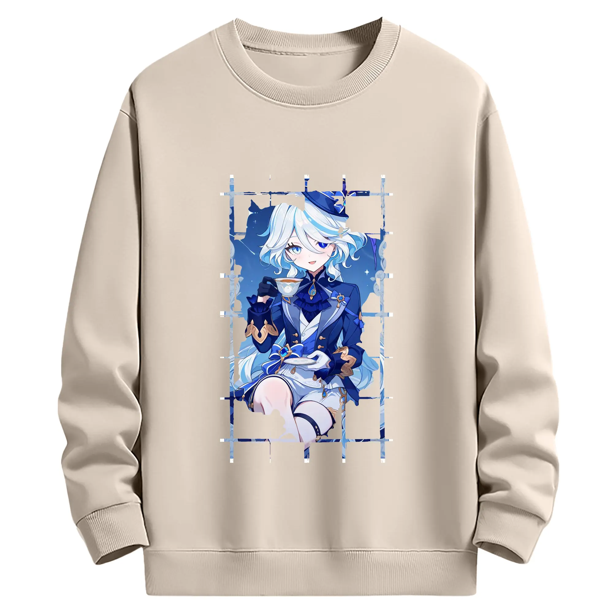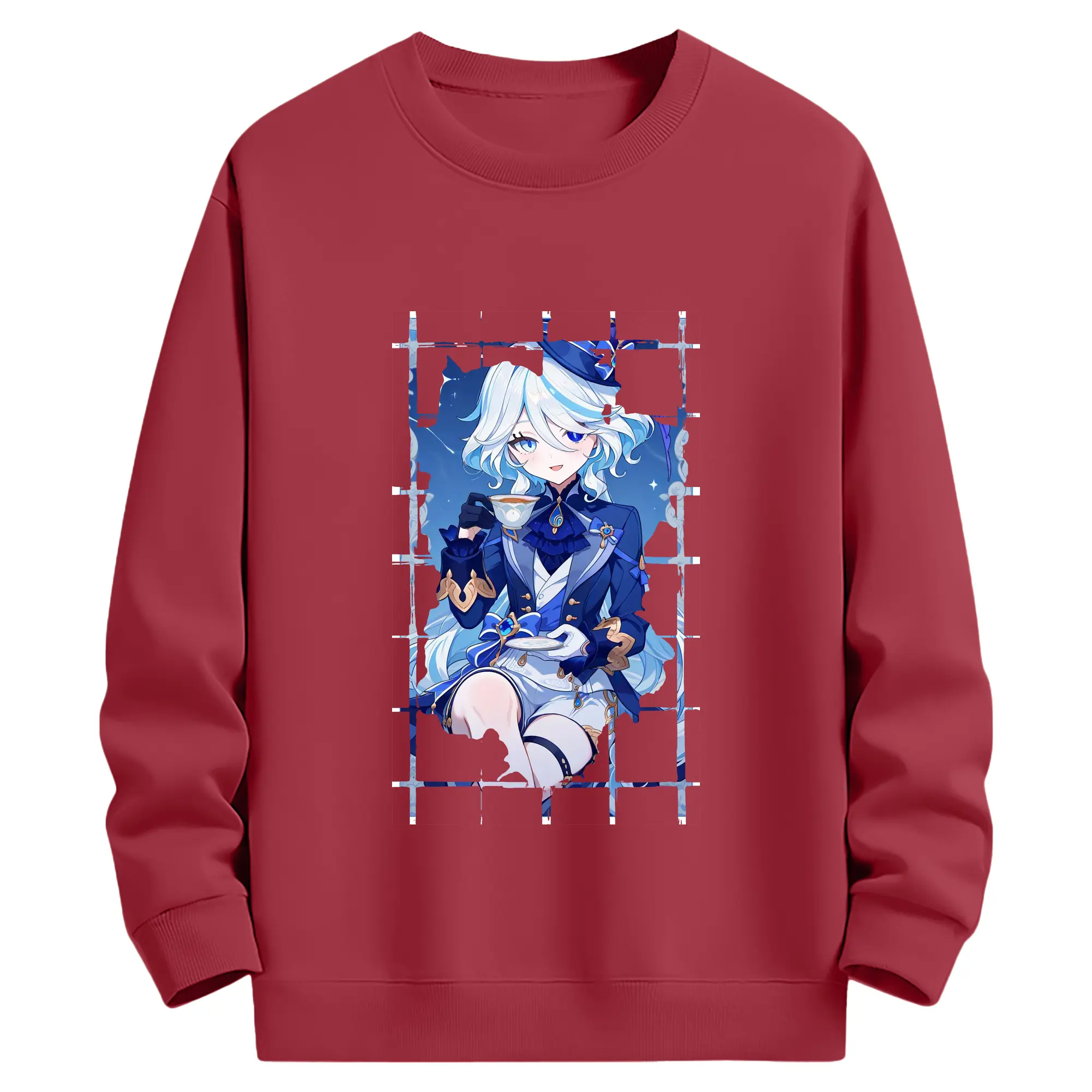 原 神 グッズ フリーナ - 薄手 クルーネック スウェット 裏毛260g · ポリエステル 春秋向け カジュアル 男女兼用 · トレーナー デイリー スポーツ 散歩に最適