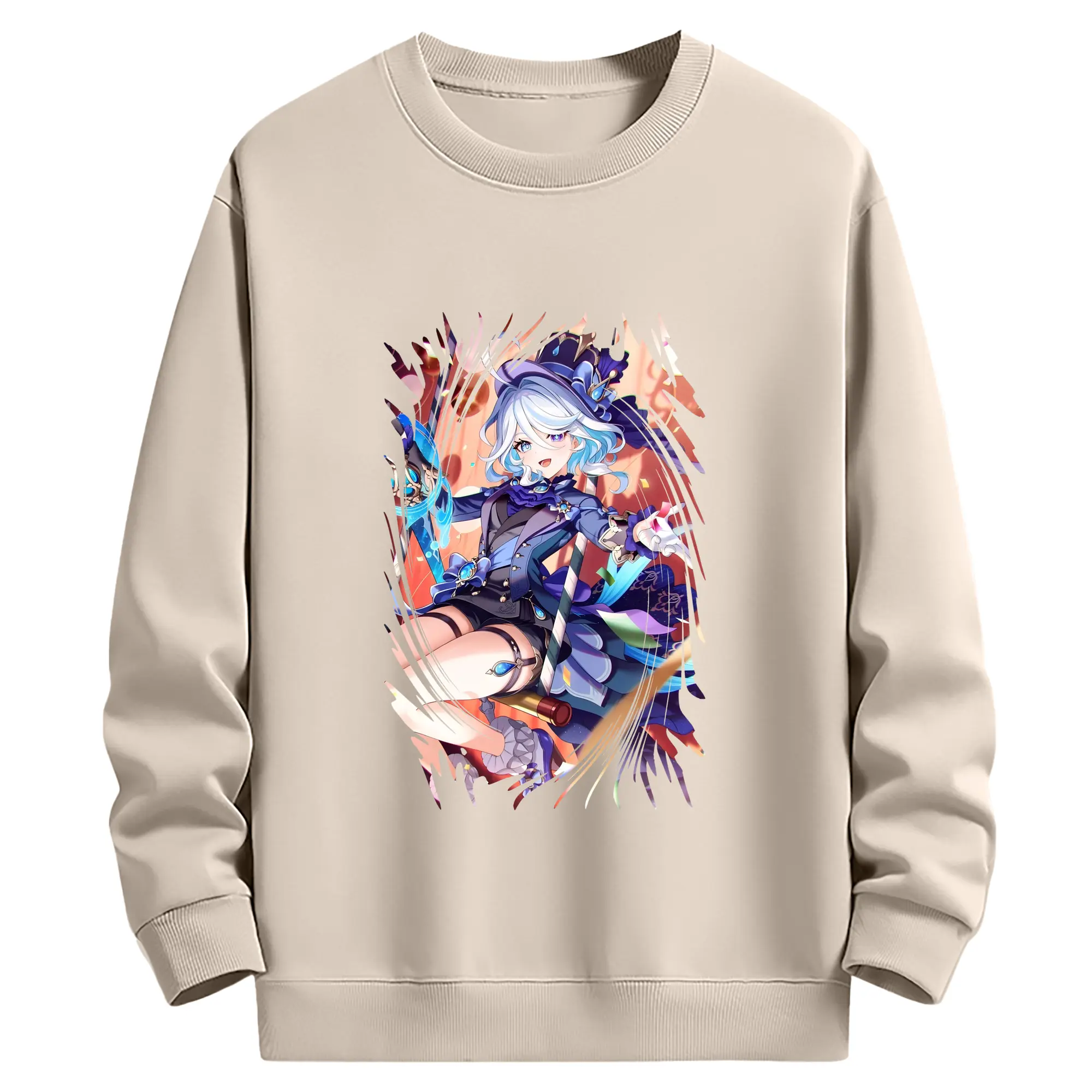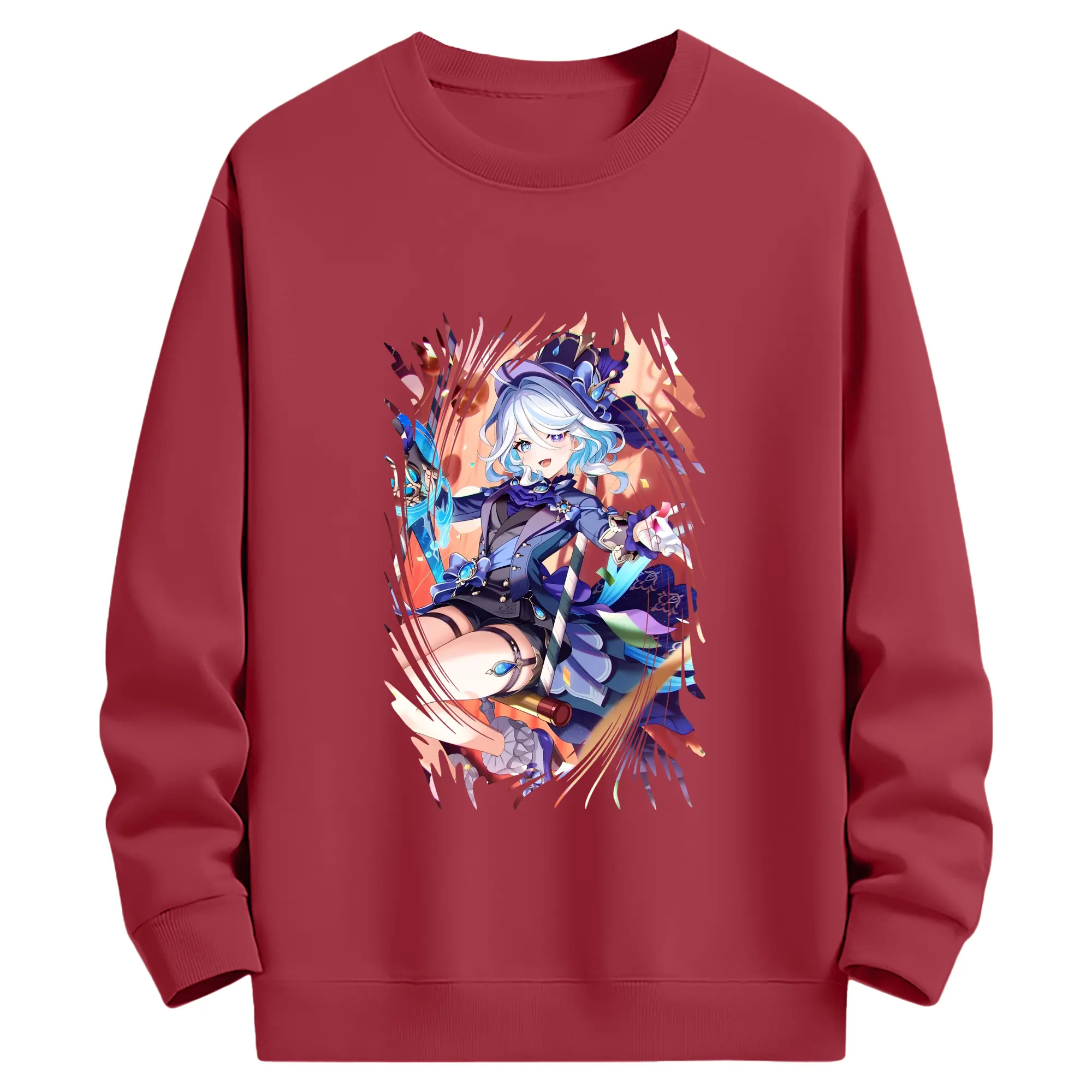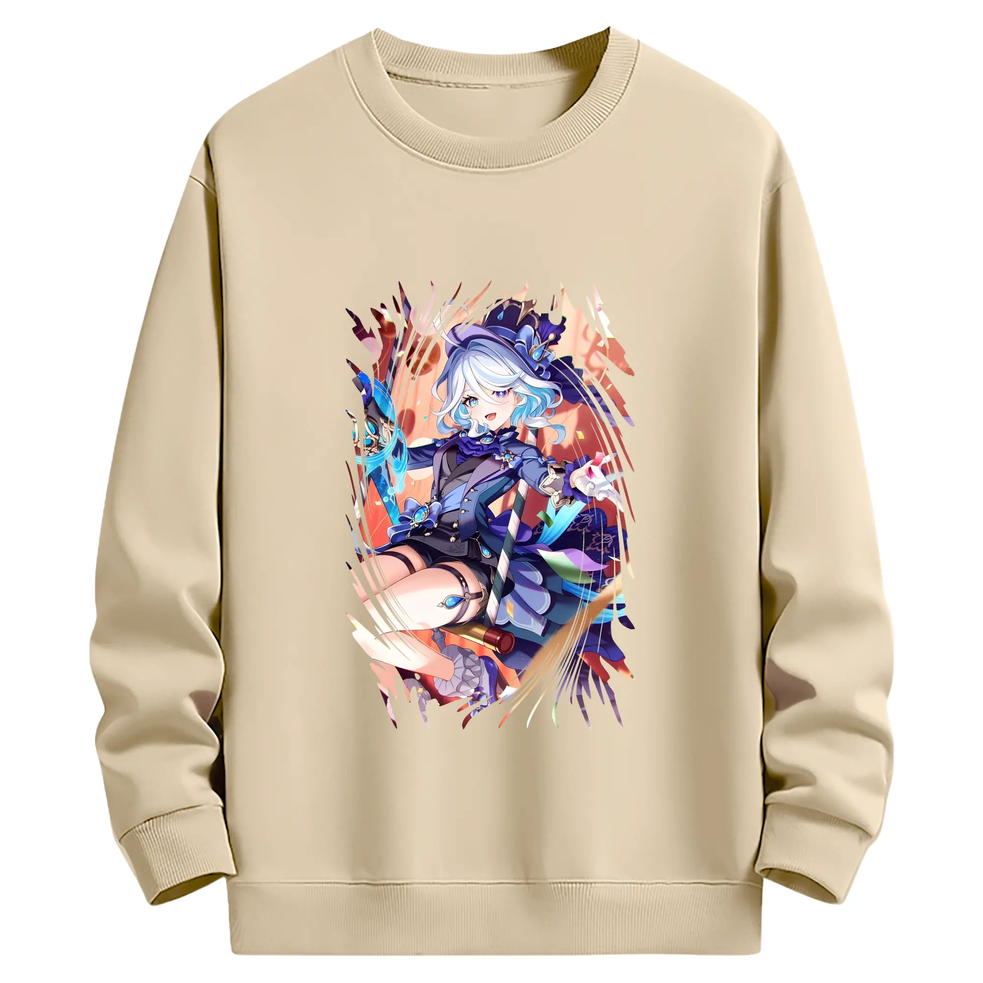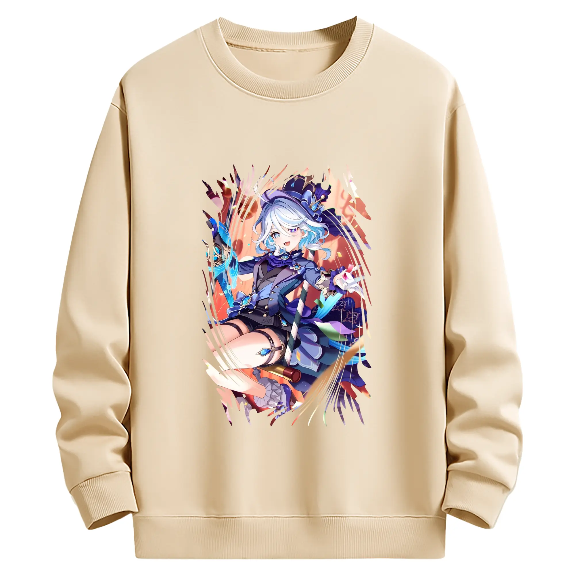 原 神 グッズ フリーナ - 薄手 クルーネック スウェット 裏毛260g · ポリエステル 春秋向け カジュアル 男女兼用 · トレーナー デイリー スポーツ 散歩に最適