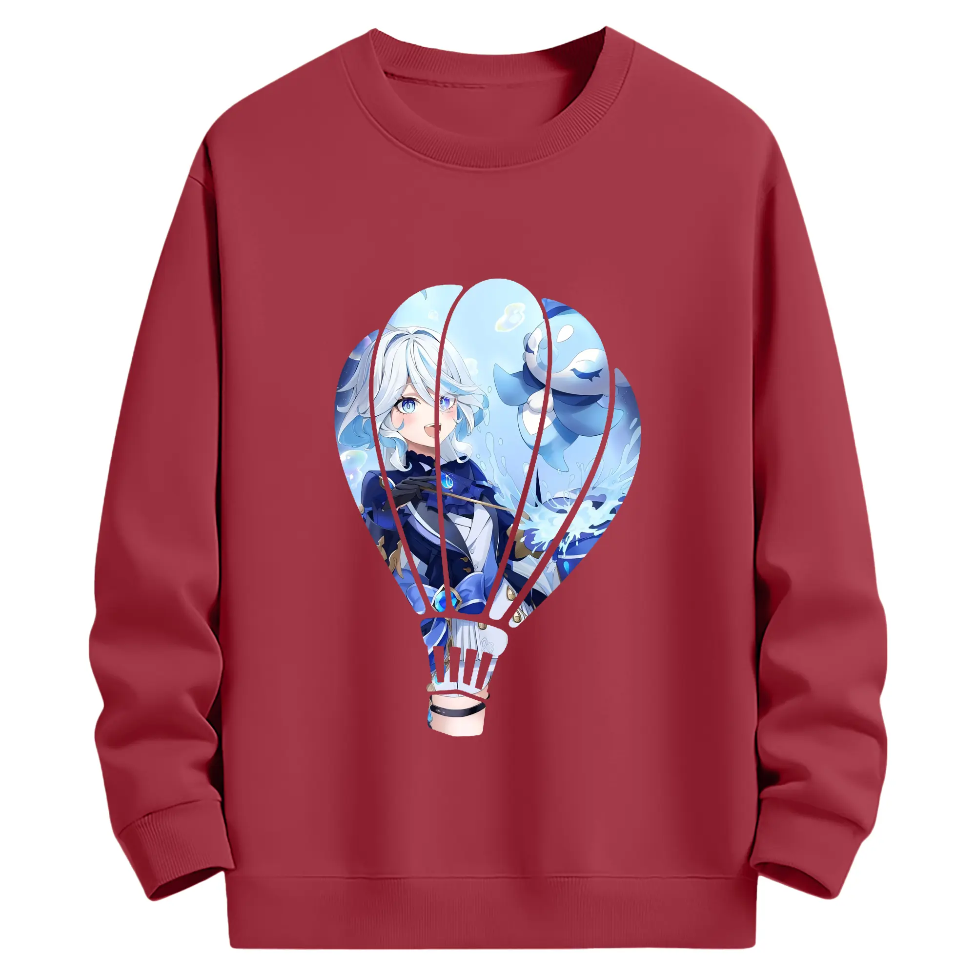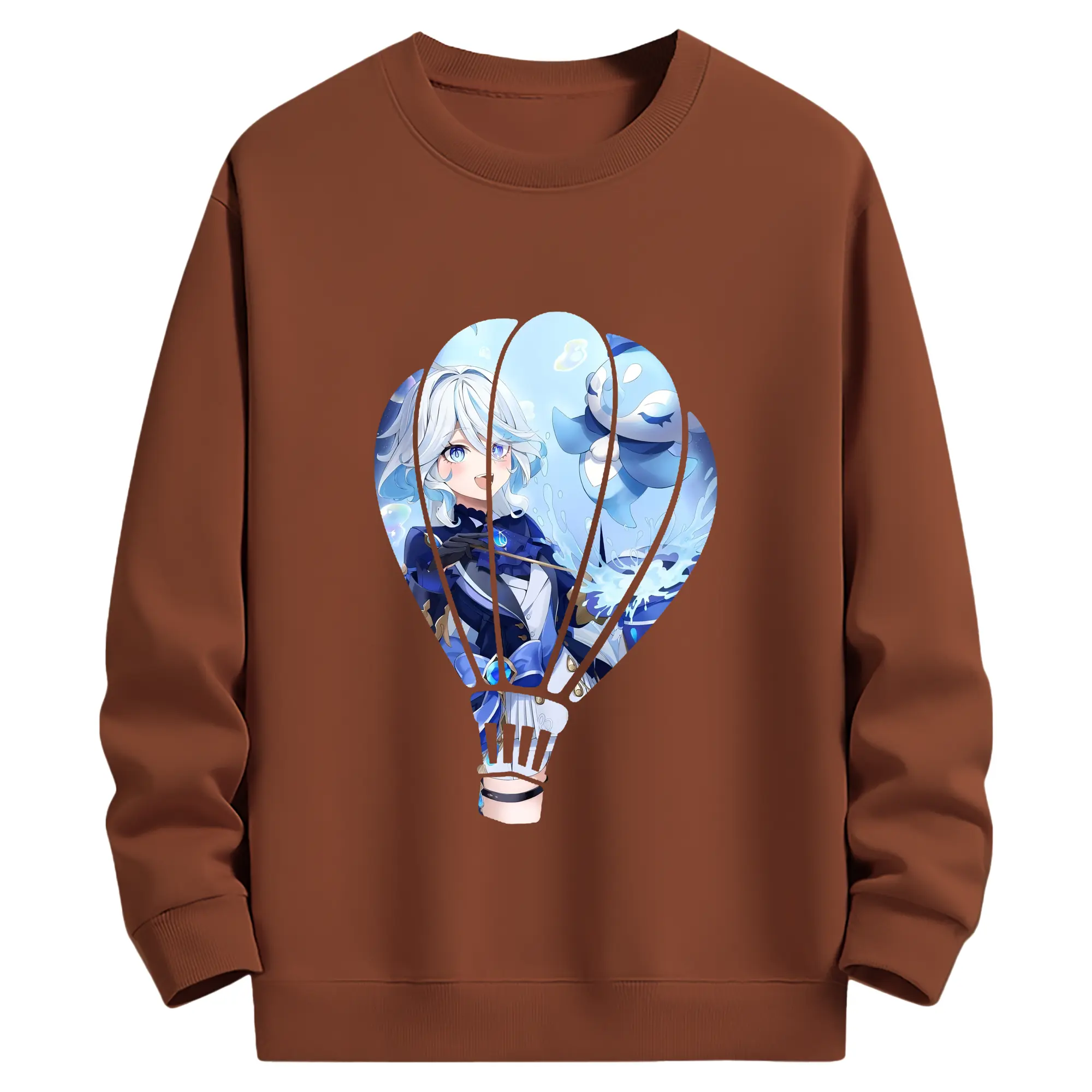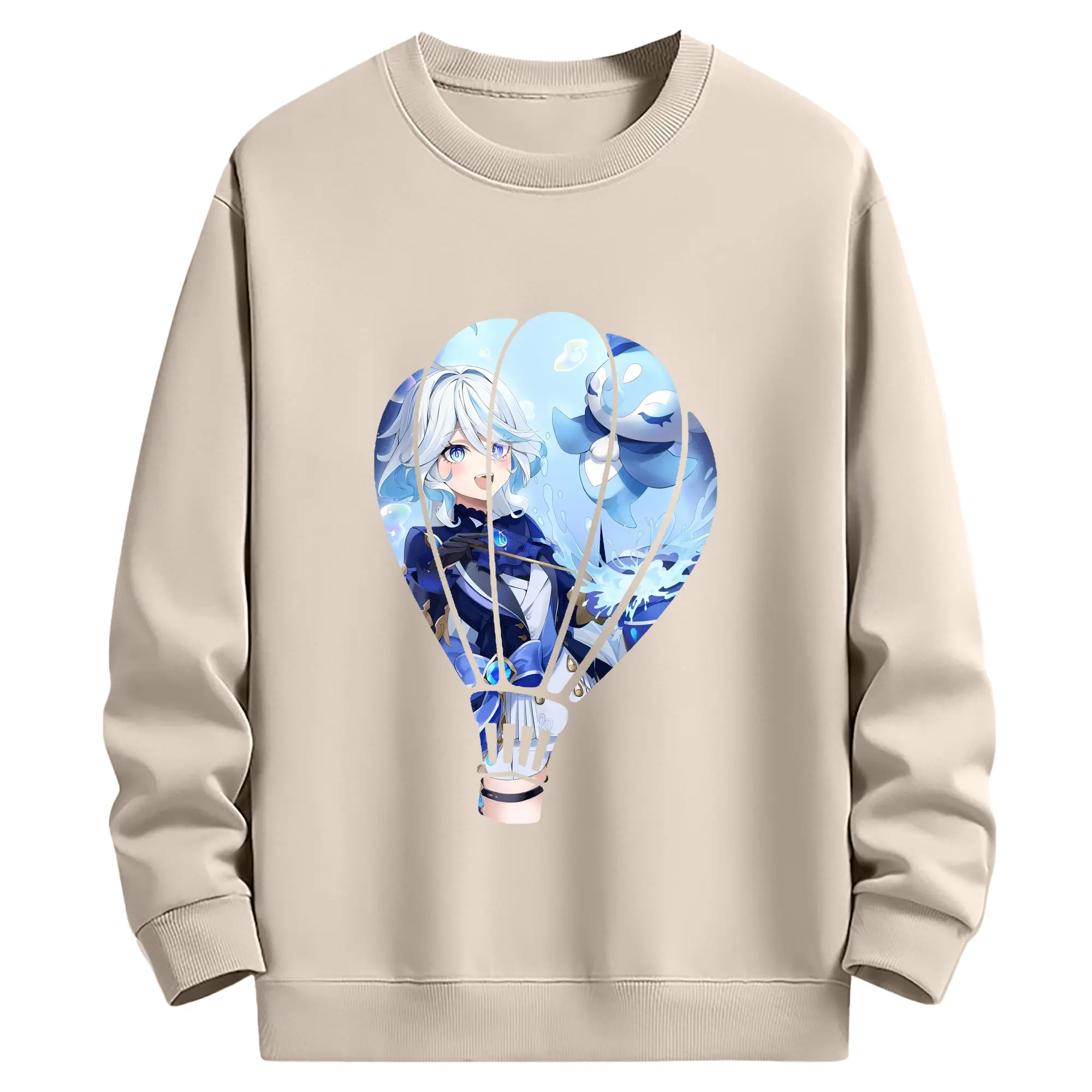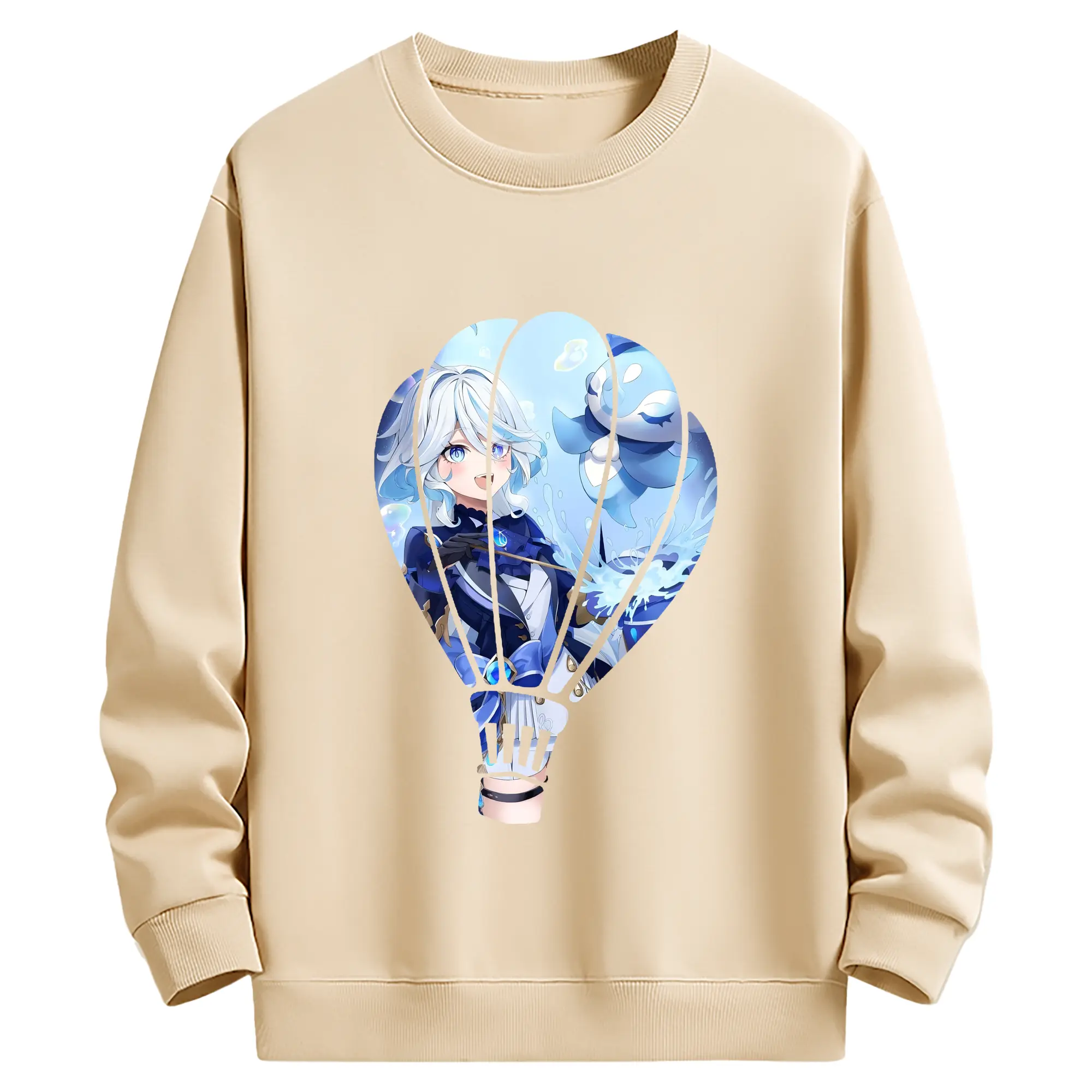 原 神 グッズ フリーナ - 薄手 クルーネック スウェット 裏毛260g · ポリエステル 春秋向け カジュアル 男女兼用 · トレーナー デイリー スポーツ 散歩に最適