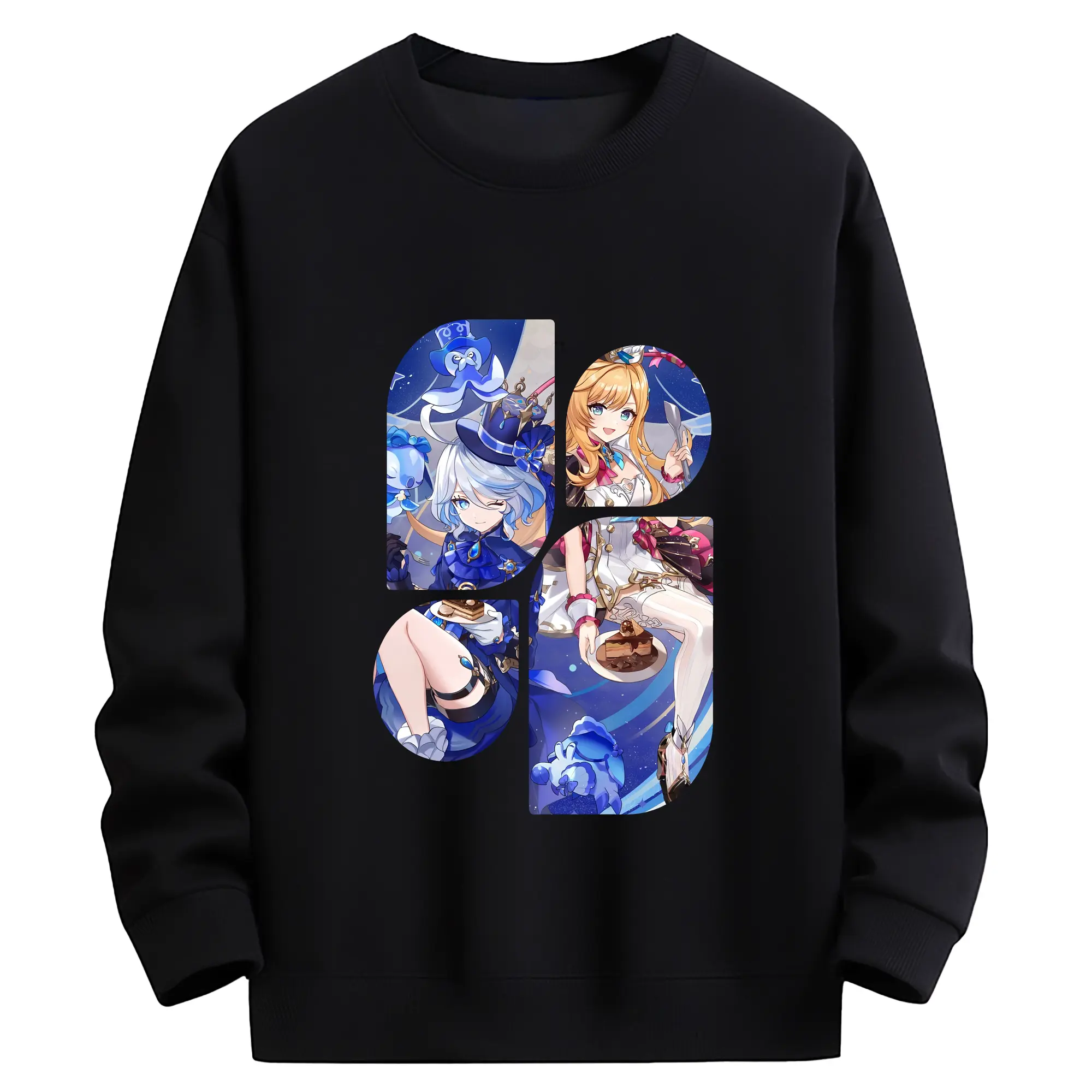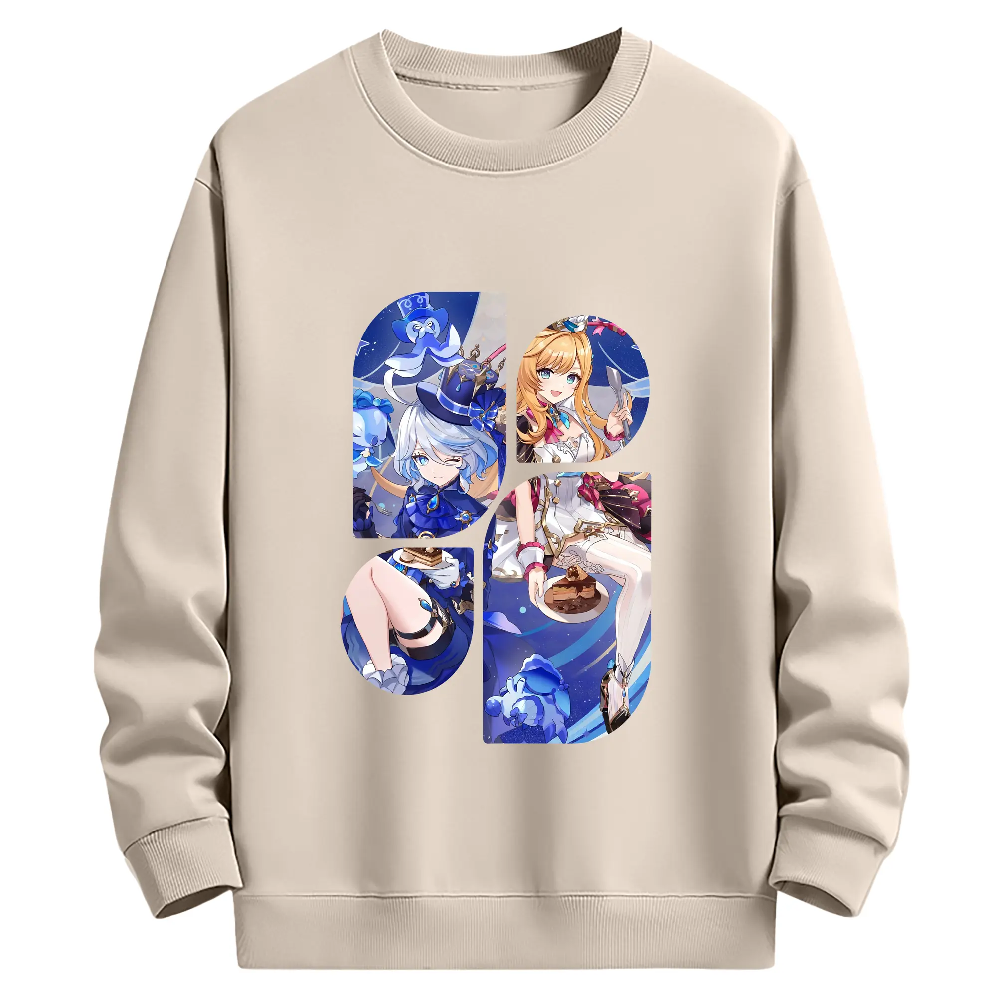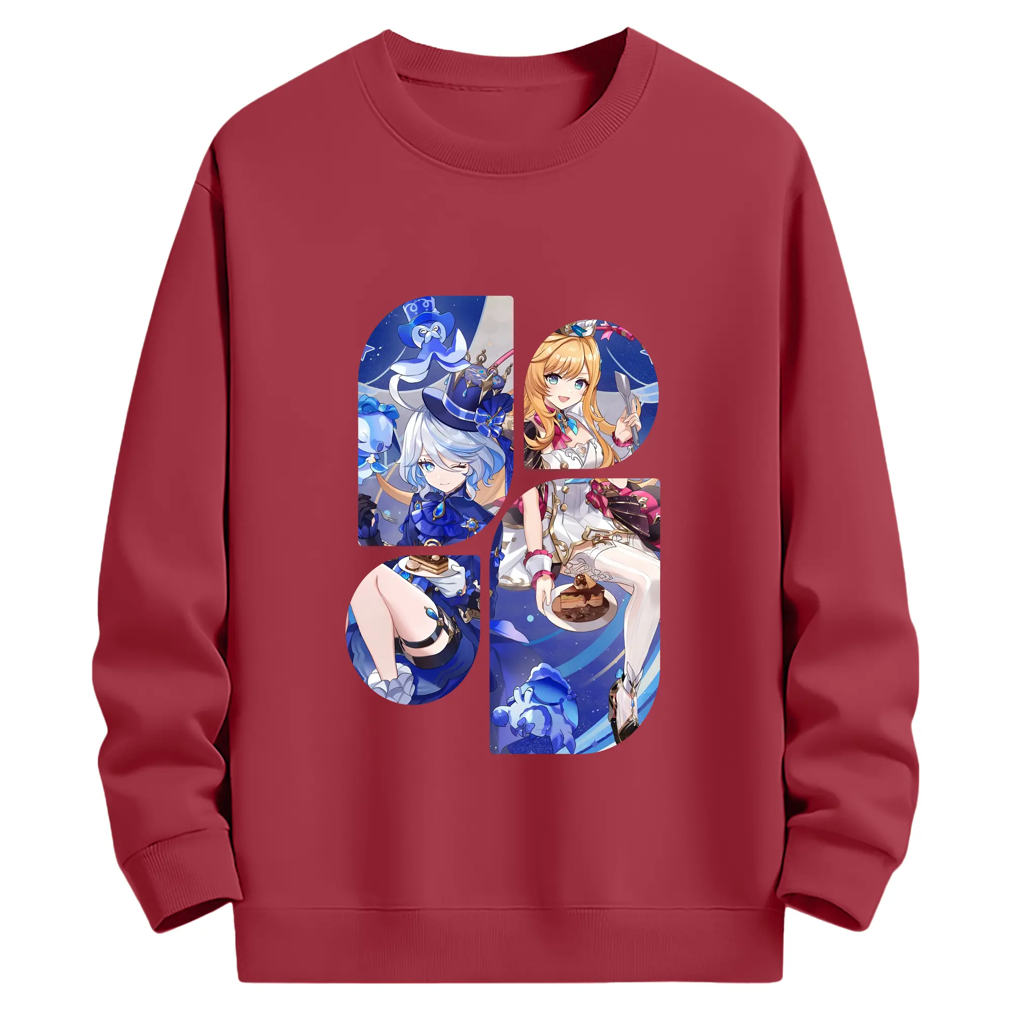 原 神 グッズ フリーナ - 薄手 クルーネック スウェット 裏毛260g · ポリエステル 春秋向け カジュアル 男女兼用 · トレーナー デイリー スポーツ 散歩に最適