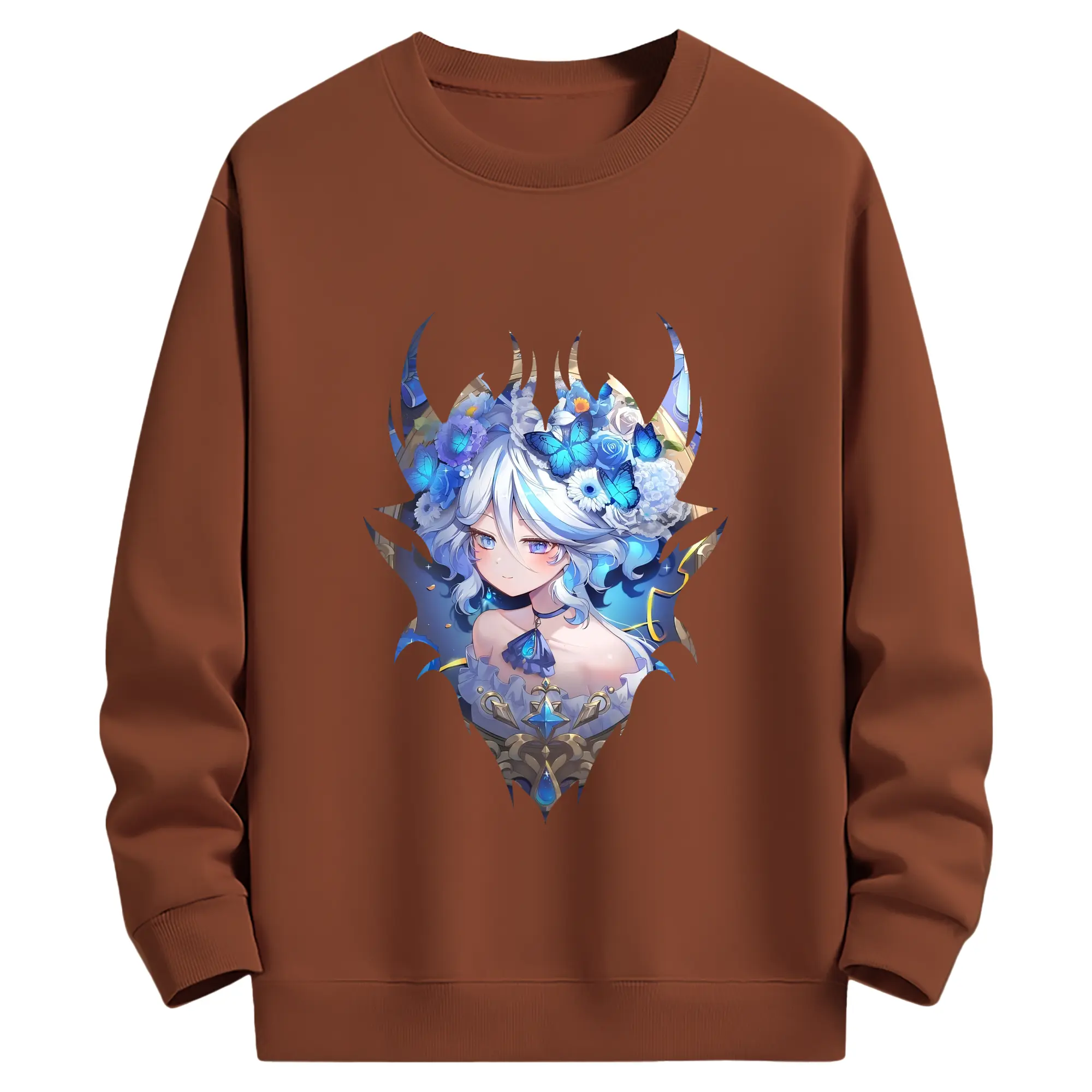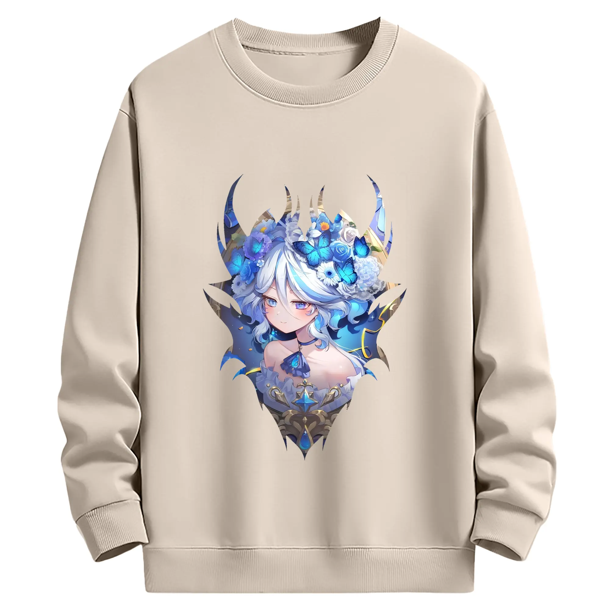 原 神 グッズ フリーナ - 薄手 クルーネック スウェット 裏毛260g · ポリエステル 春秋向け カジュアル 男女兼用 · トレーナー デイリー スポーツ 散歩に最適