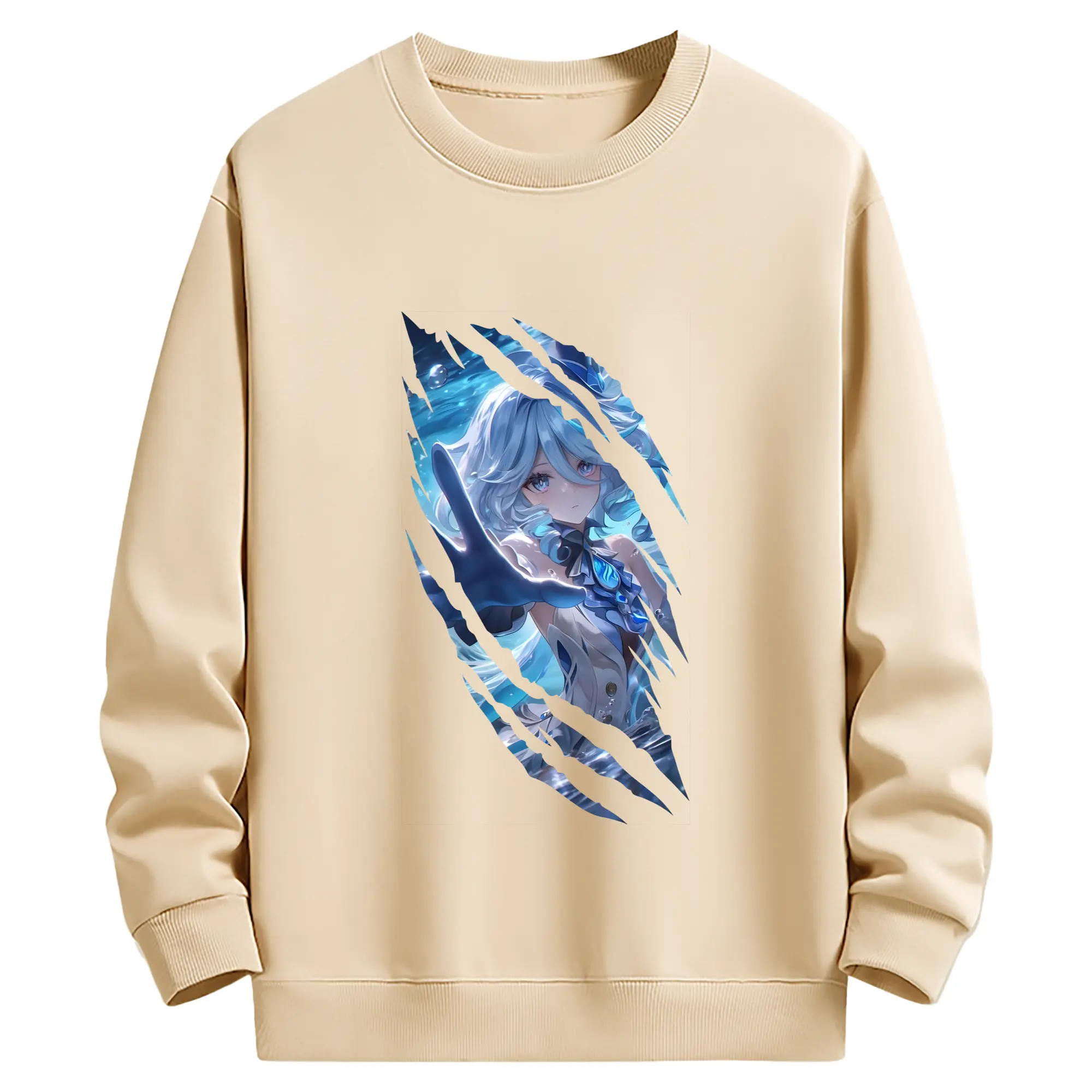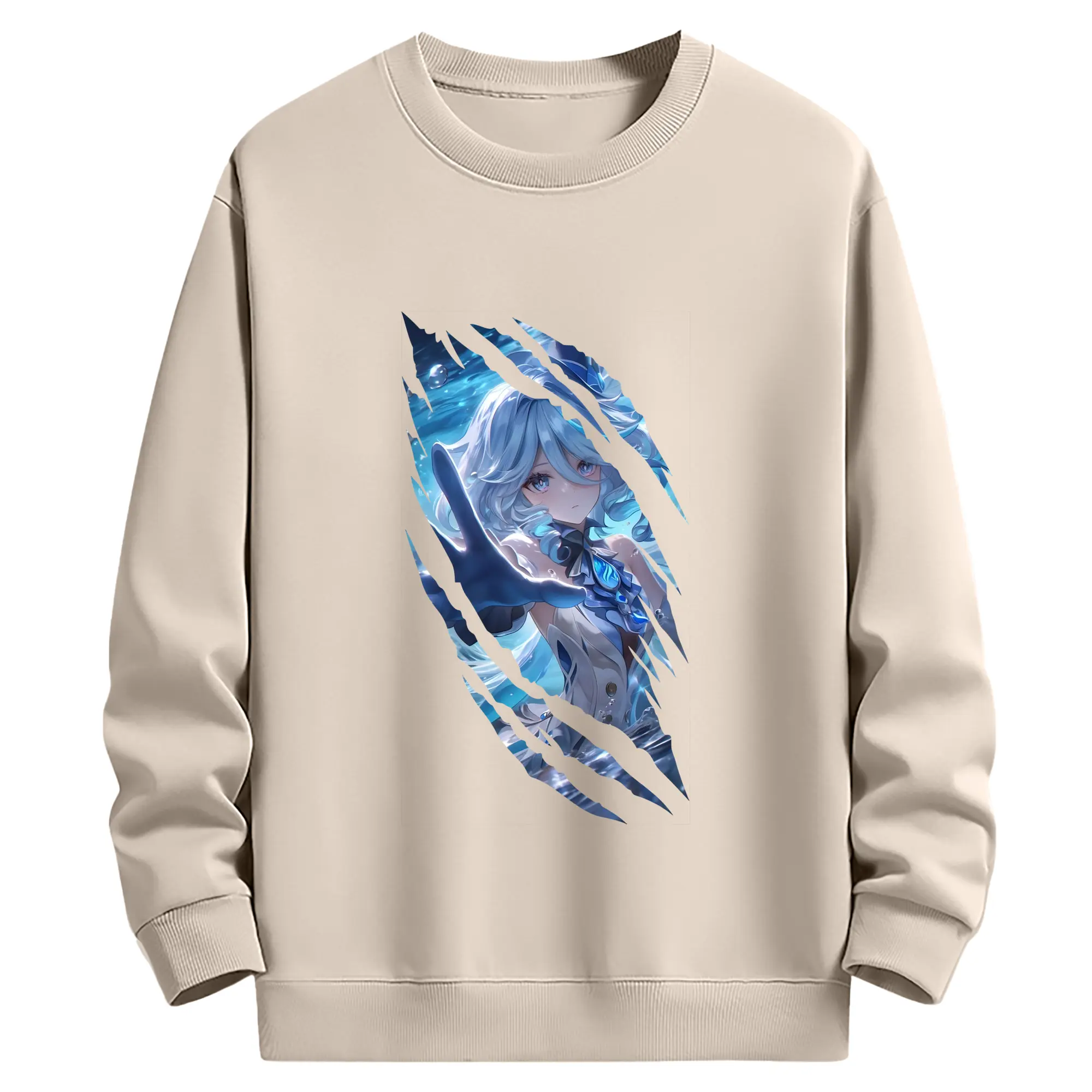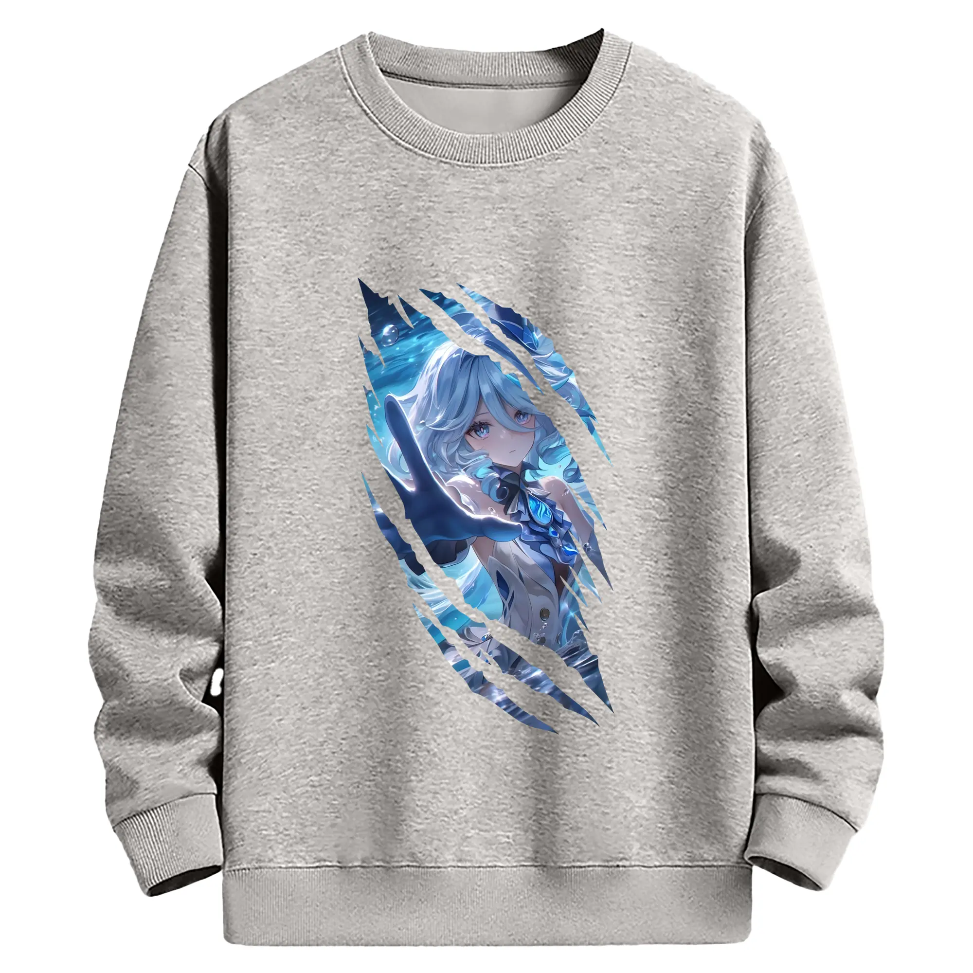 原 神 グッズ フリーナ - 薄手 クルーネック スウェット 裏毛260g · ポリエステル 春秋向け カジュアル 男女兼用 · トレーナー デイリー スポーツ 散歩に最適