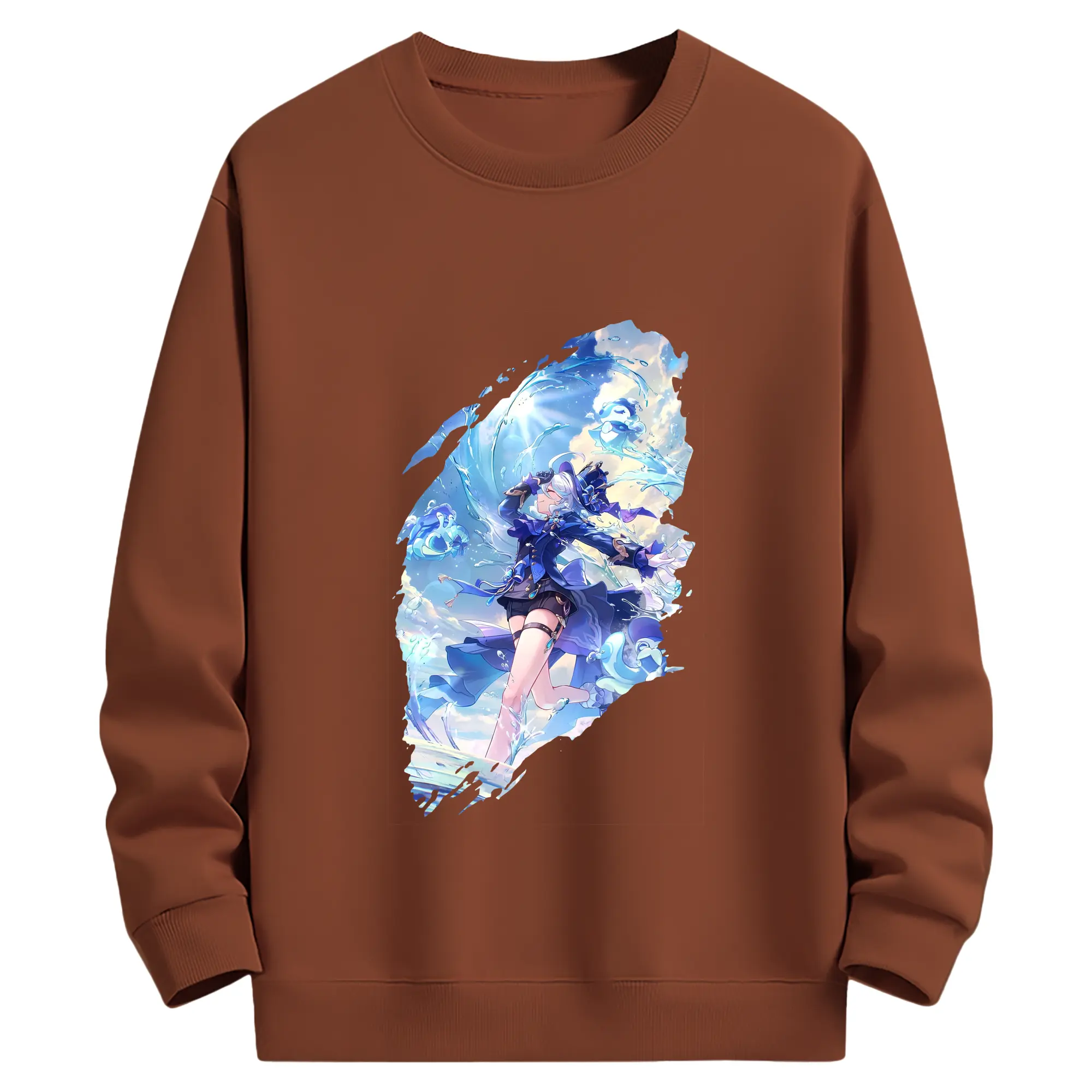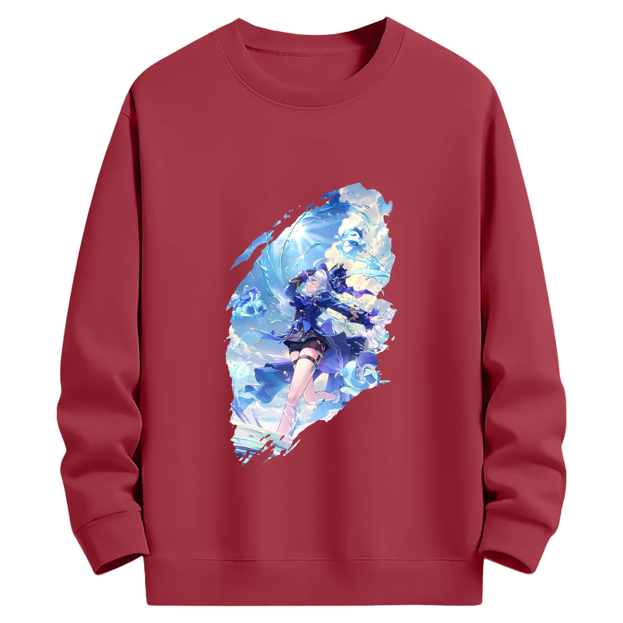 原 神 グッズ フリーナ - 薄手 クルーネック スウェット 裏毛260g · ポリエステル 春秋向け カジュアル 男女兼用 · トレーナー デイリー スポーツ 散歩に最適