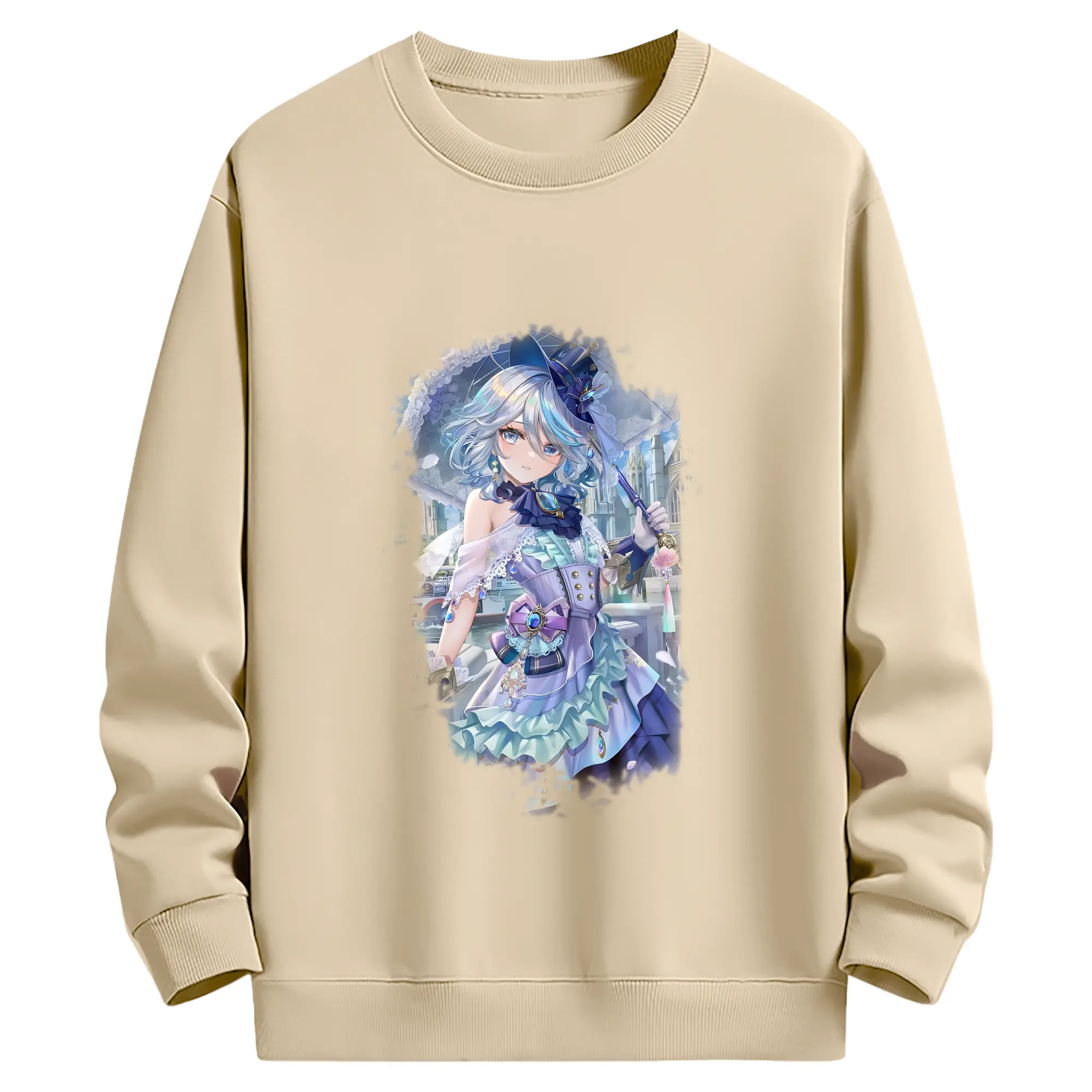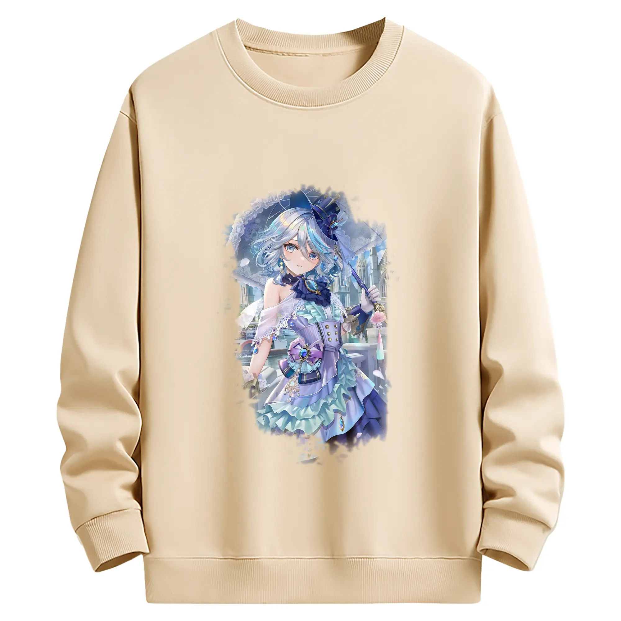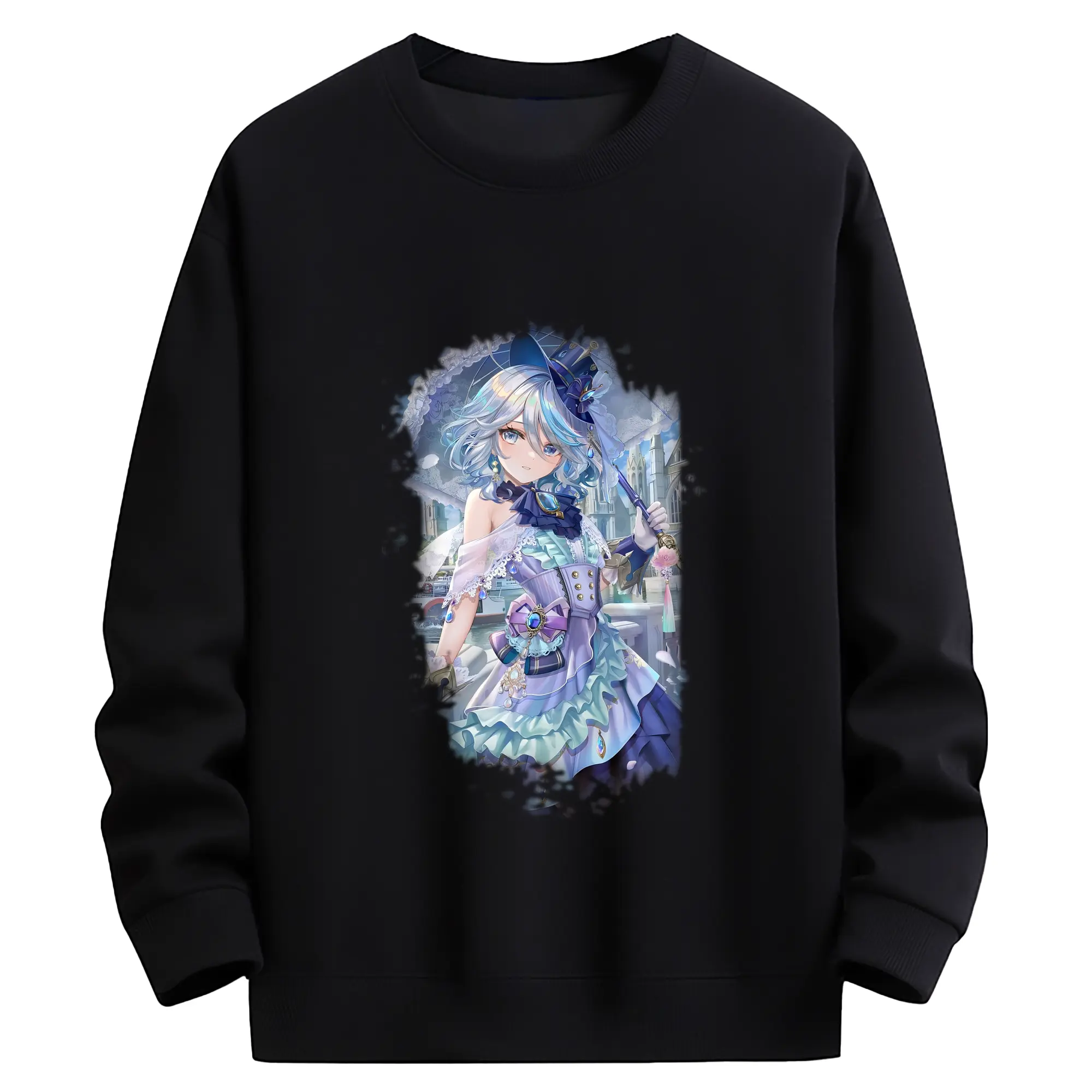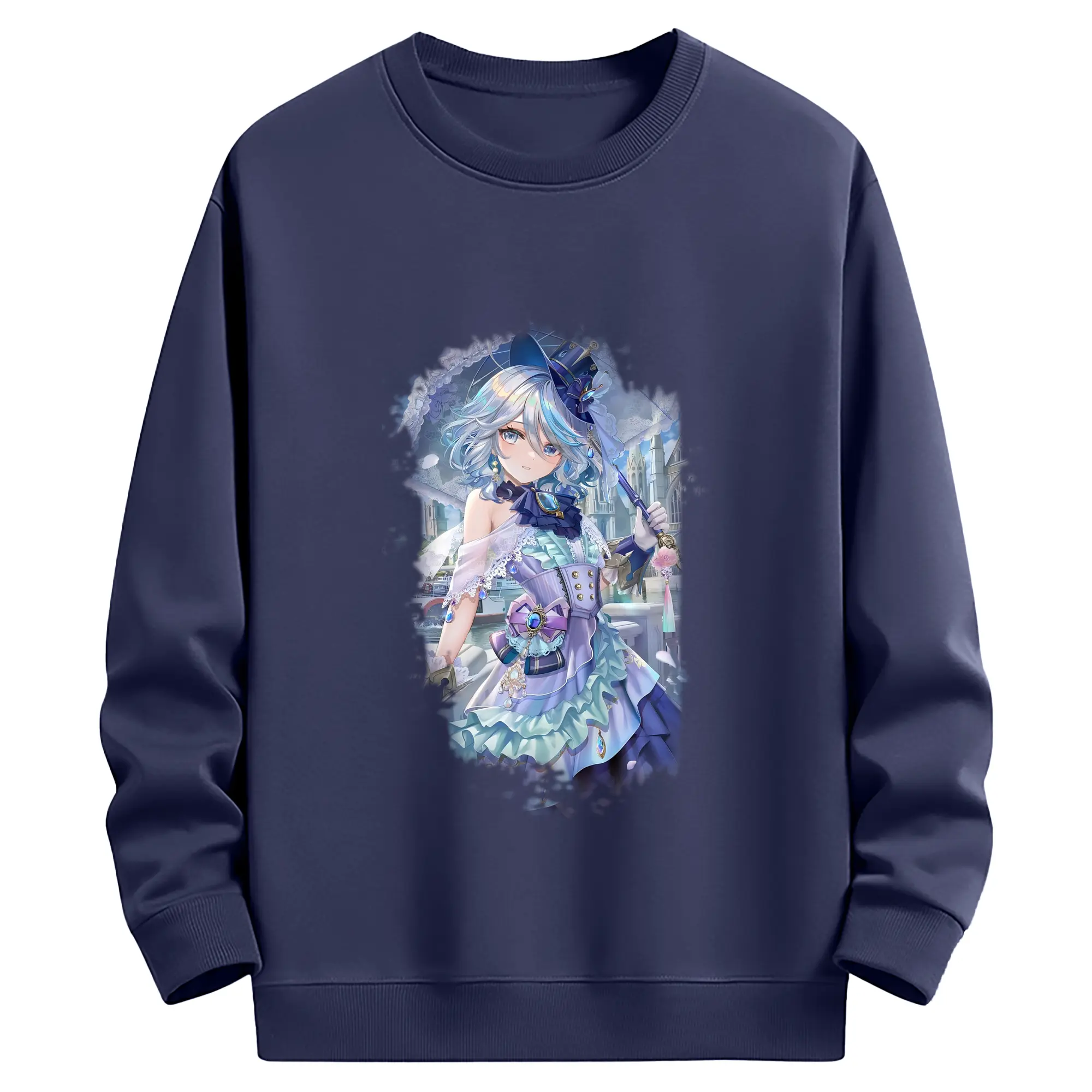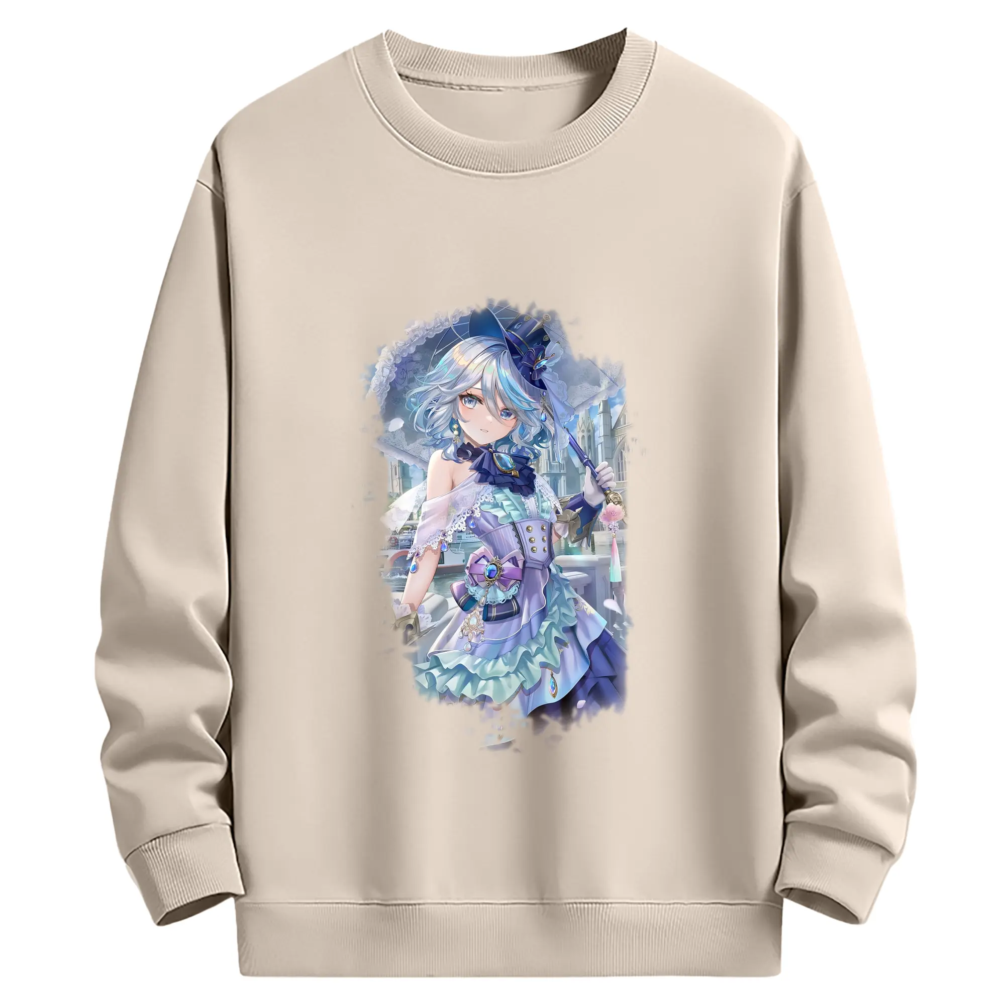 原 神 グッズ フリーナ - 薄手 クルーネック スウェット 裏毛260g · ポリエステル 春秋向け カジュアル 男女兼用 · トレーナー デイリー スポーツ 散歩に最適