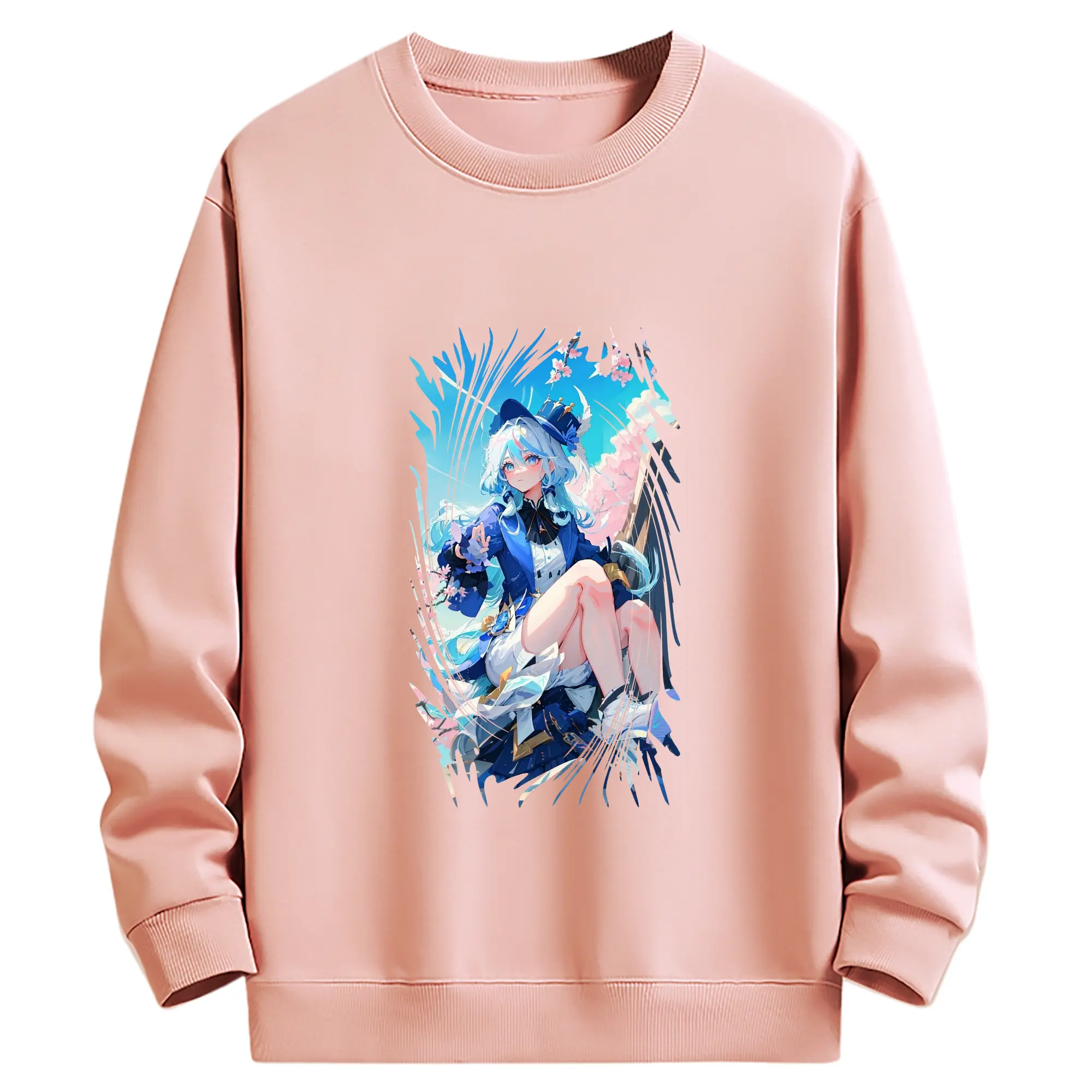 原 神 グッズ フリーナ - 薄手 クルーネック スウェット 裏毛260g · ポリエステル 春秋向け カジュアル 男女兼用 · トレーナー デイリー スポーツ 散歩に最適