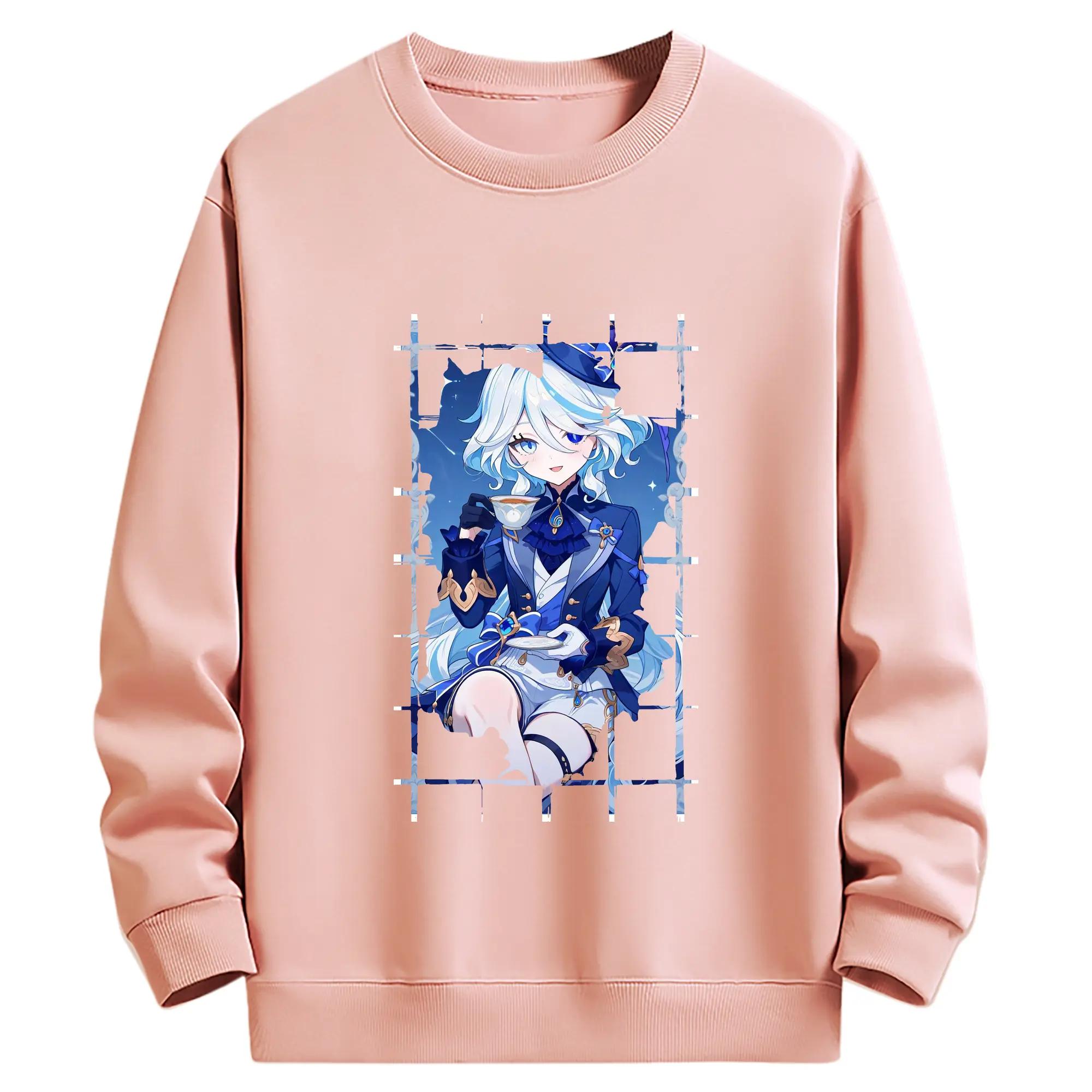 原 神 グッズ フリーナ - 薄手 クルーネック スウェット 裏毛260g · ポリエステル 春秋向け カジュアル 男女兼用 · トレーナー デイリー スポーツ 散歩に最適