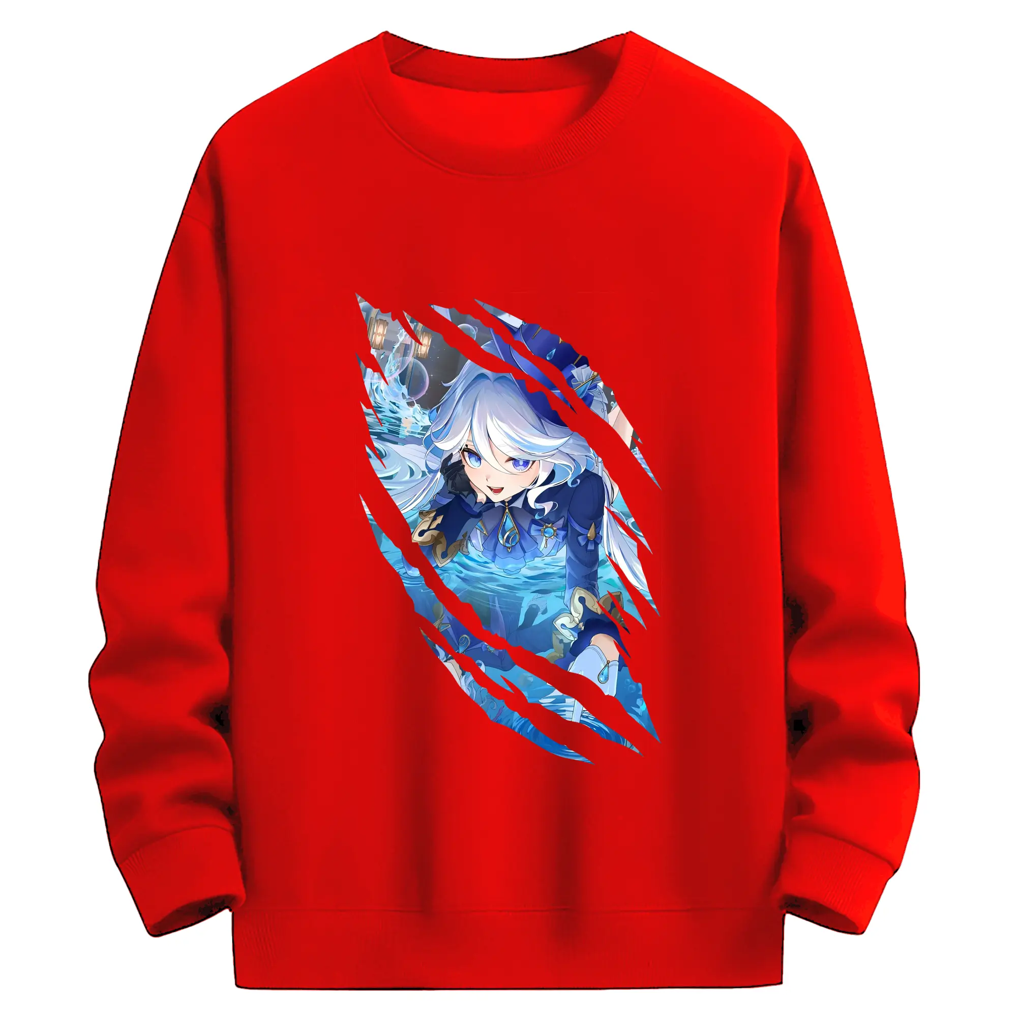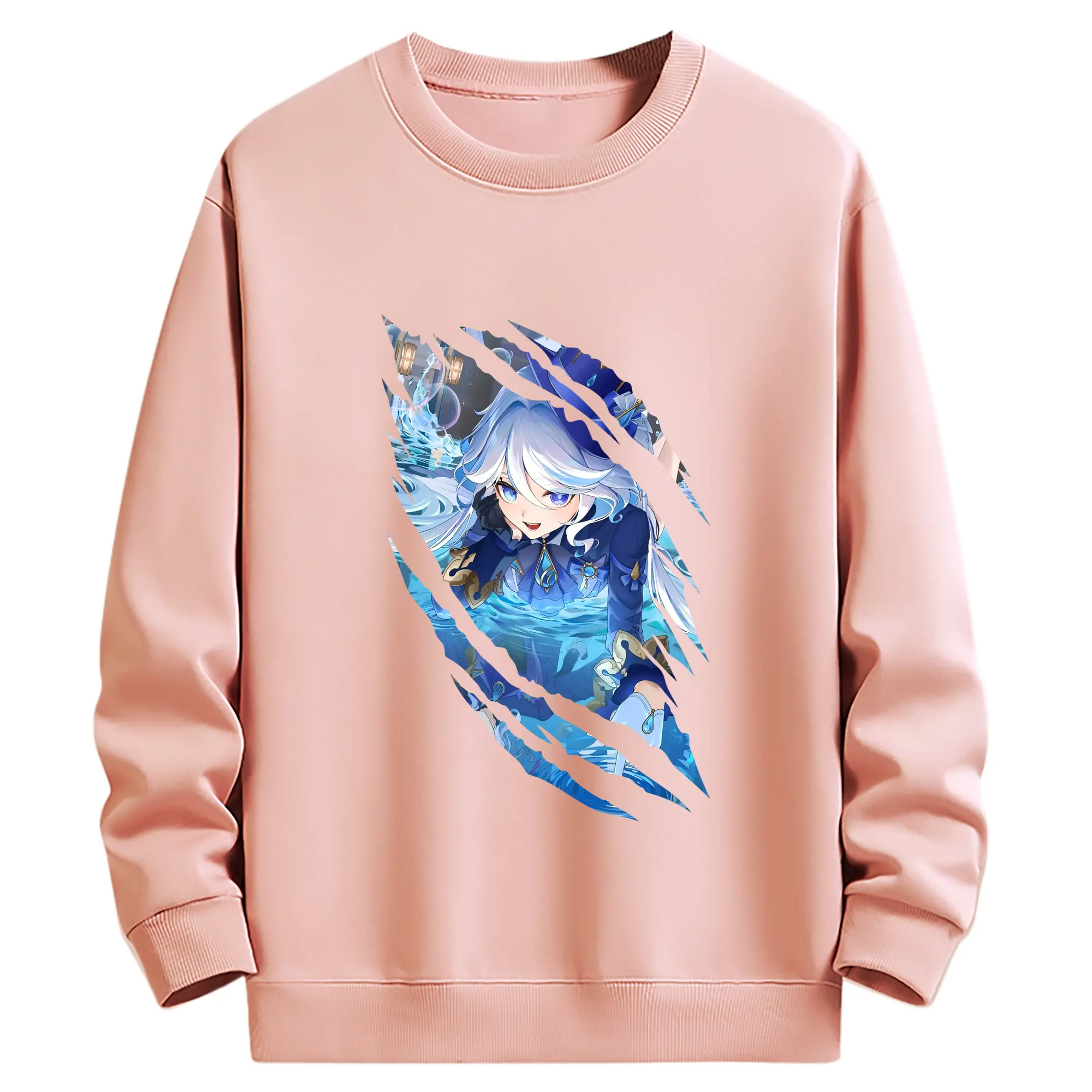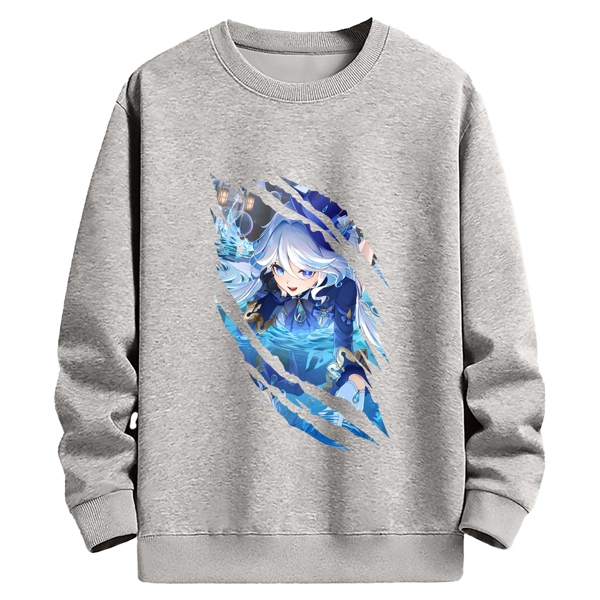 原 神 グッズ フリーナ - 薄手 クルーネック スウェット 裏毛260g · ポリエステル 春秋向け カジュアル 男女兼用 · トレーナー デイリー スポーツ 散歩に最適