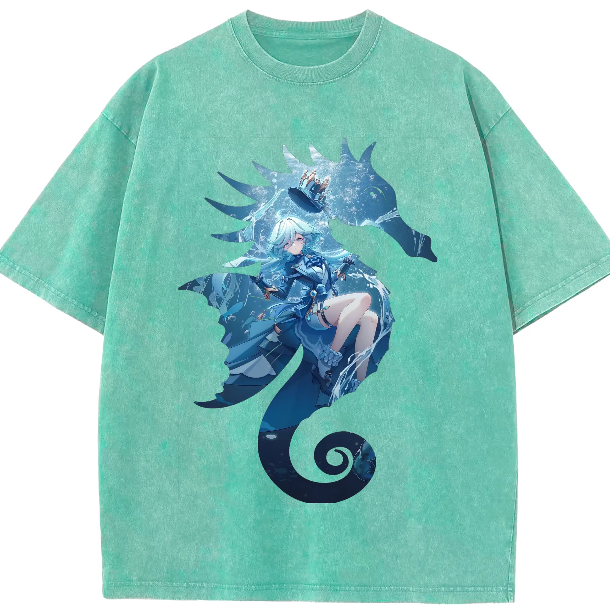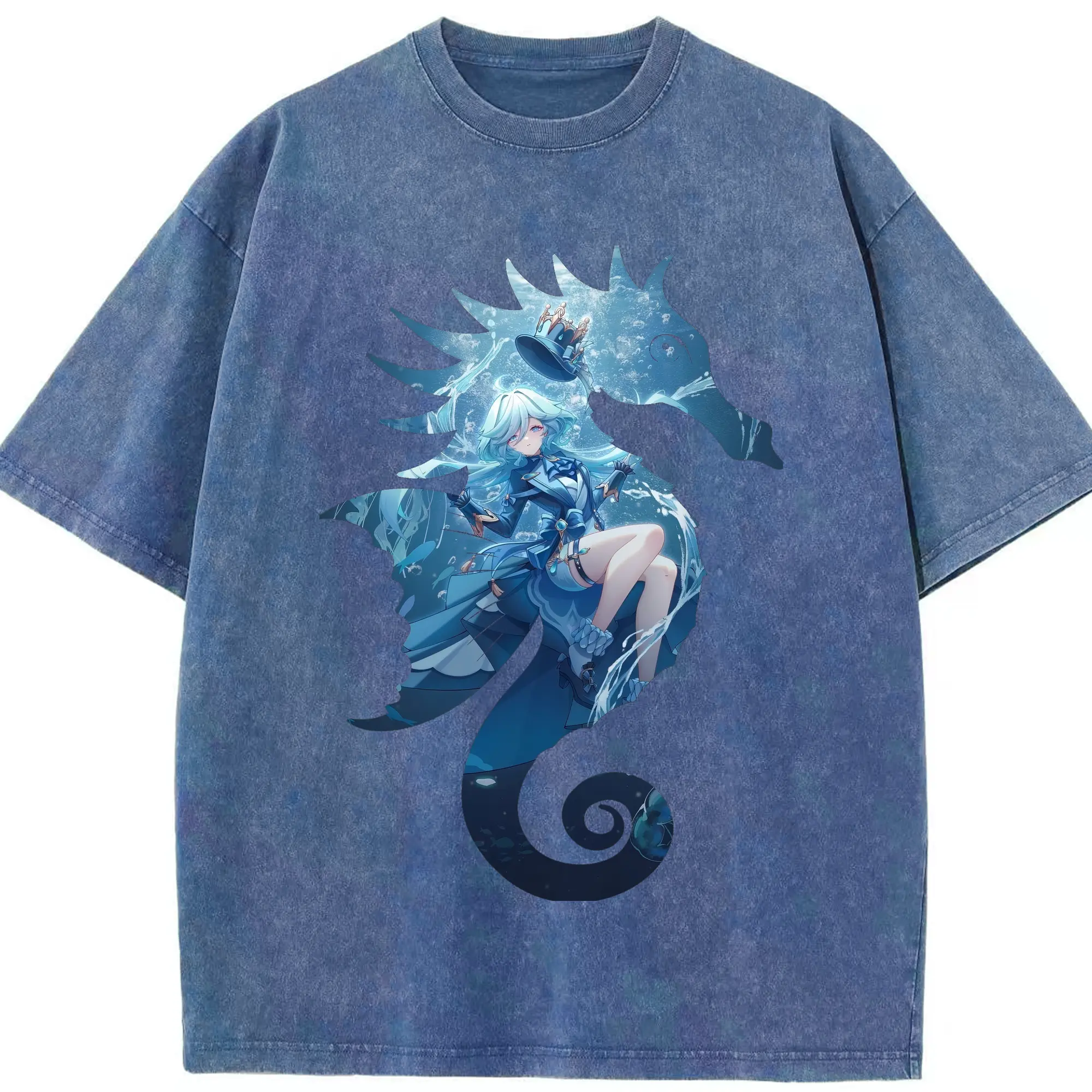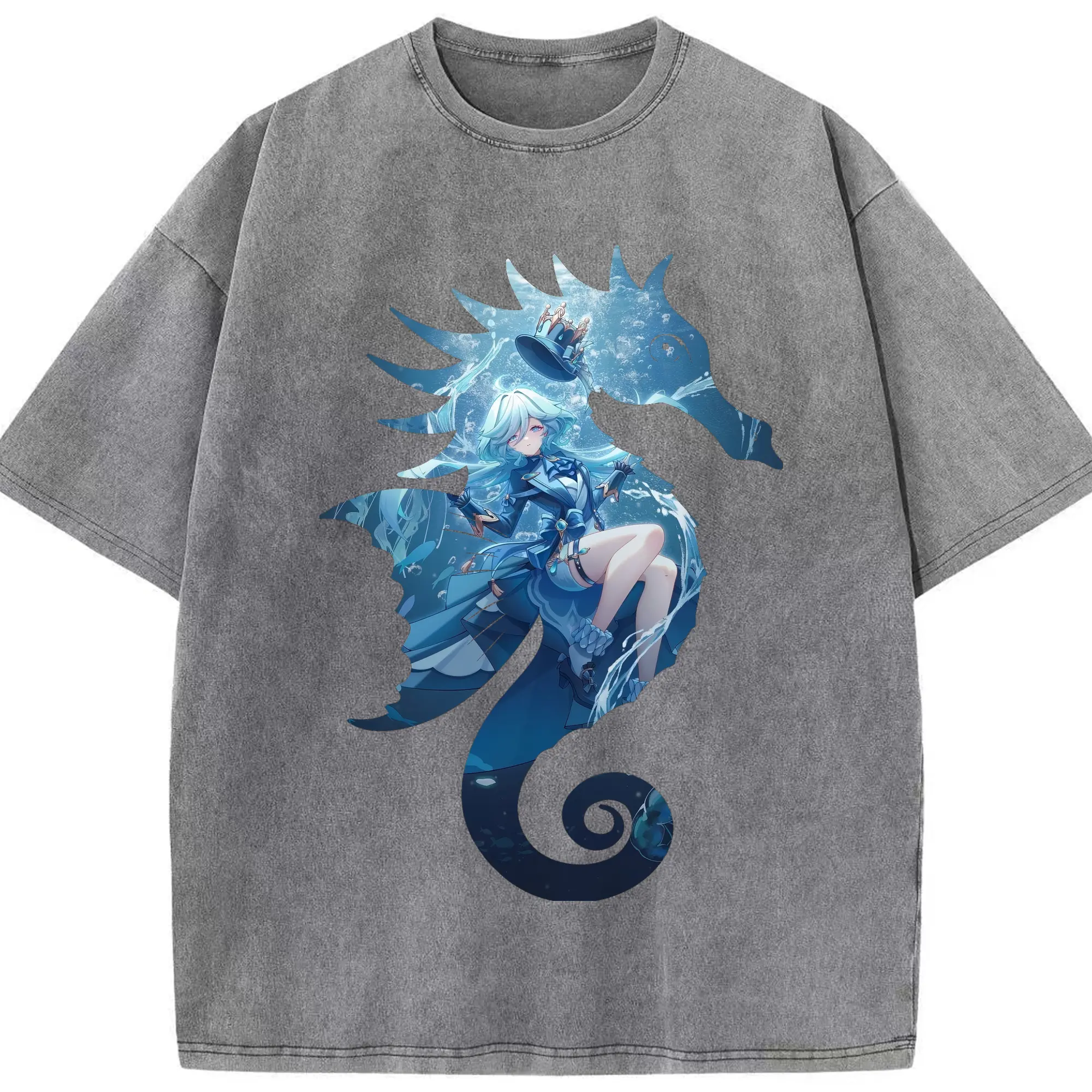 原 神 グッズ フリーナ - 綿100% ヴィンテージ風 半袖Tシャツ ・ 背面プリント ・ 柔らか肌触り ・ 通気性 快適 ・ スポーツ カジュアル 外出用