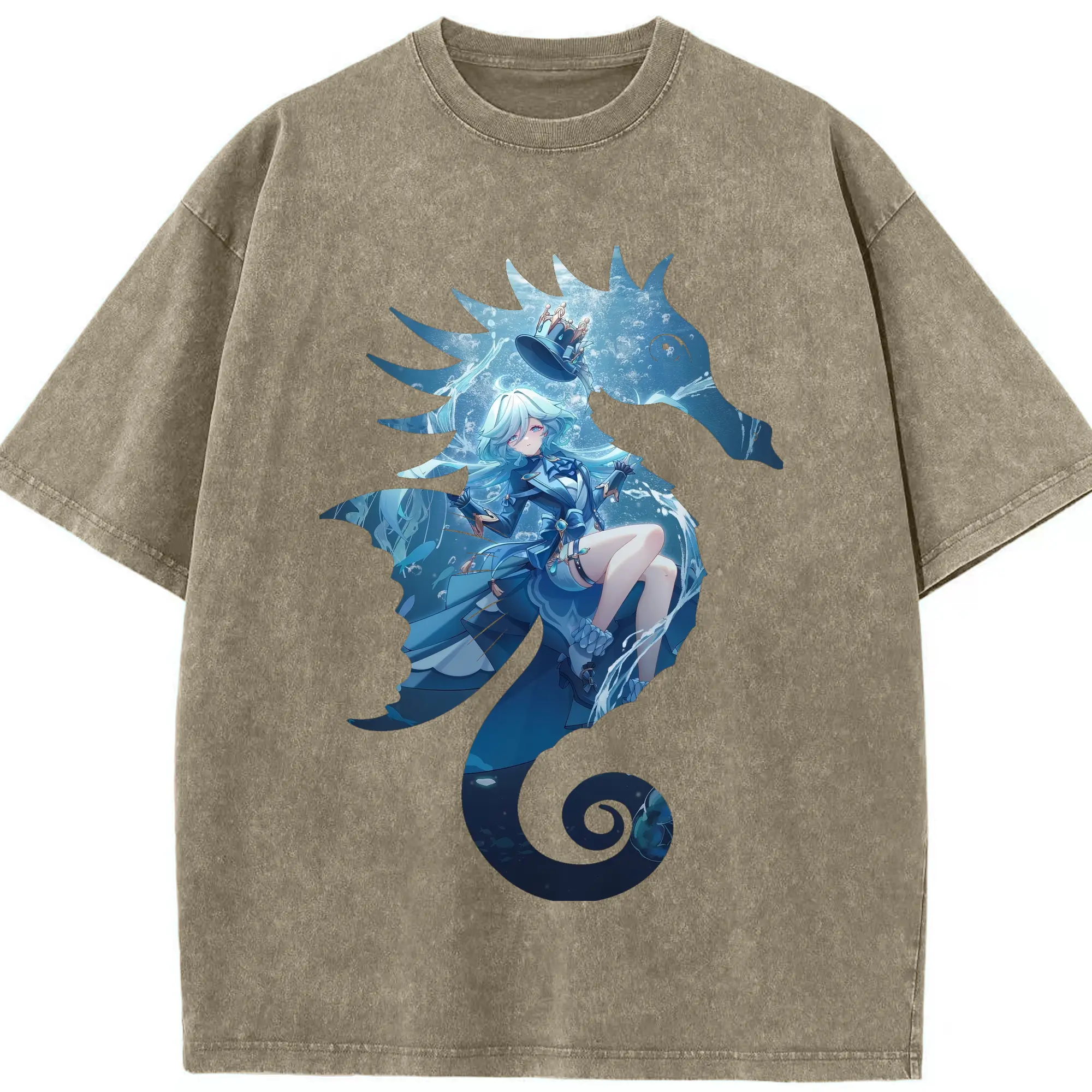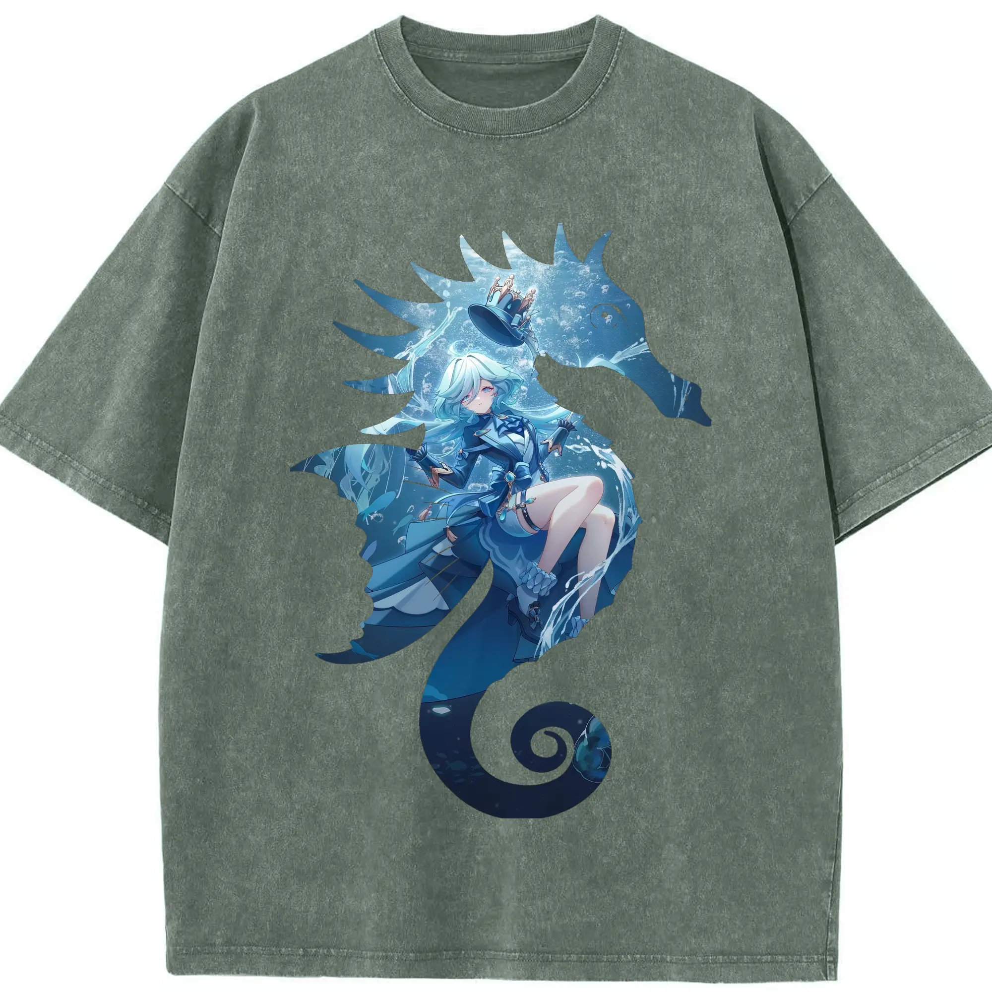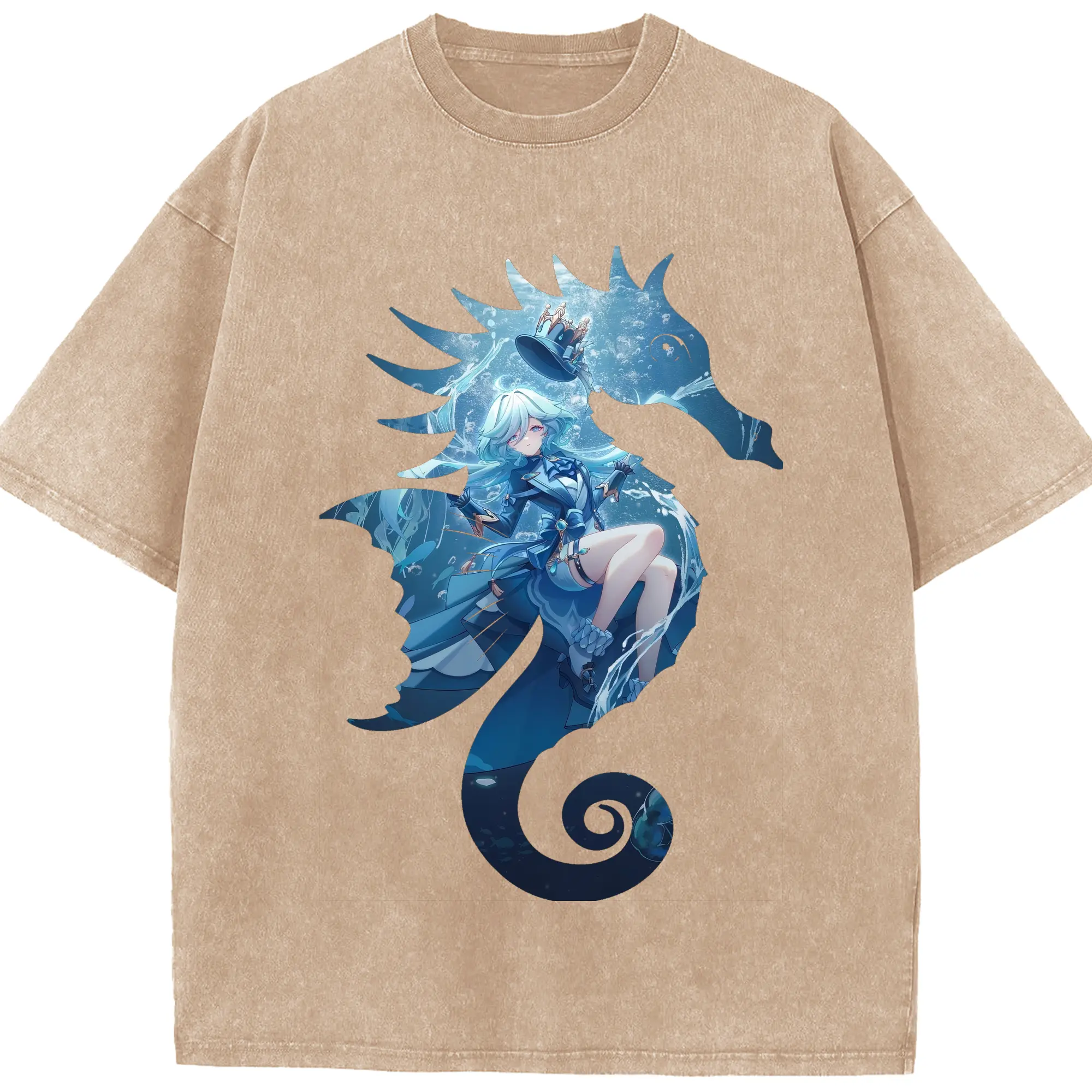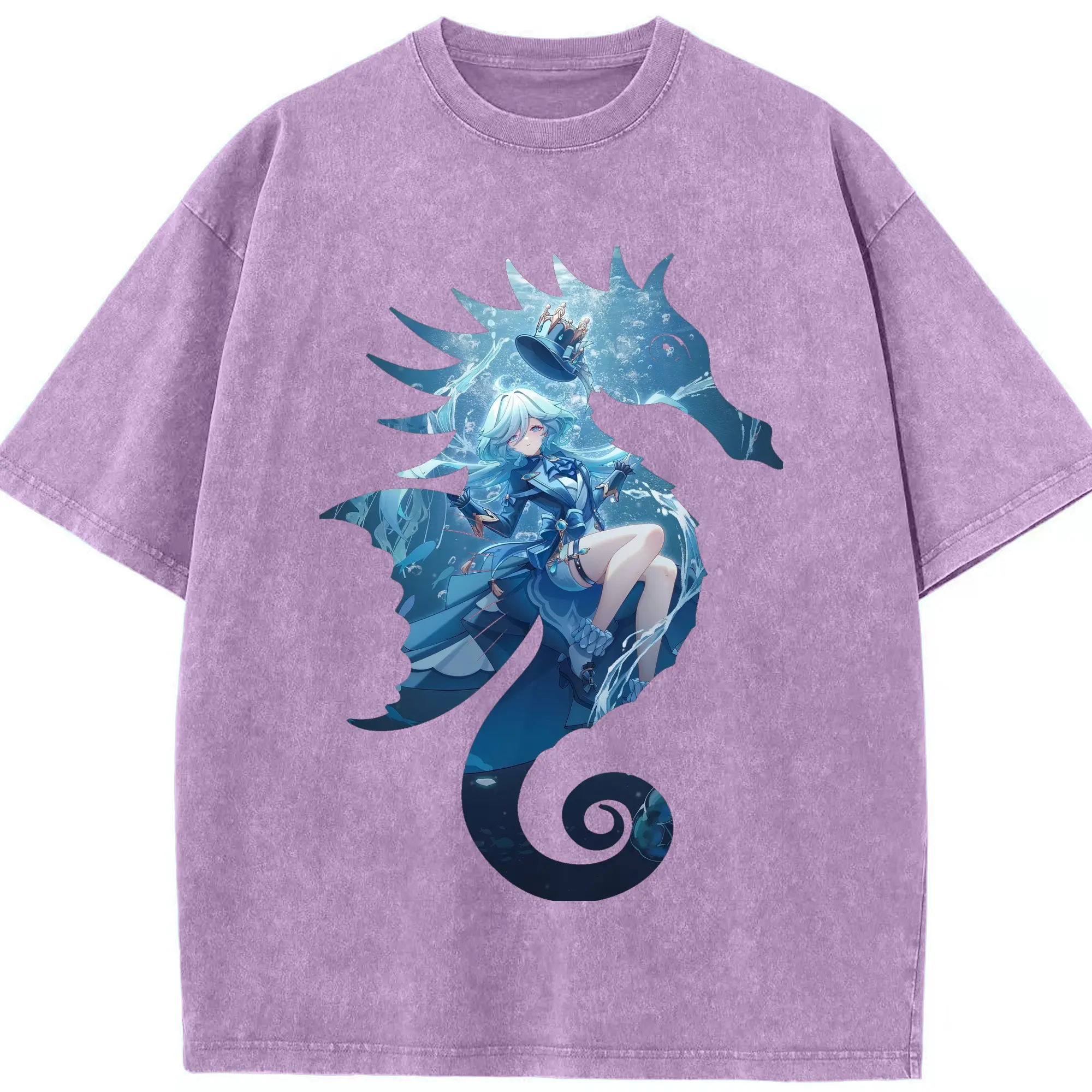 原 神 グッズ フリーナ - 綿100% ヴィンテージ風 半袖Tシャツ ・ 背面プリント ・ 柔らか肌触り ・ 通気性 快適 ・ スポーツ カジュアル 外出用