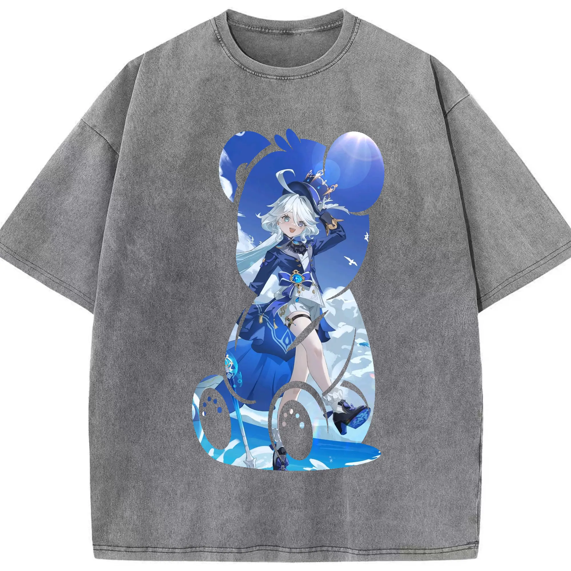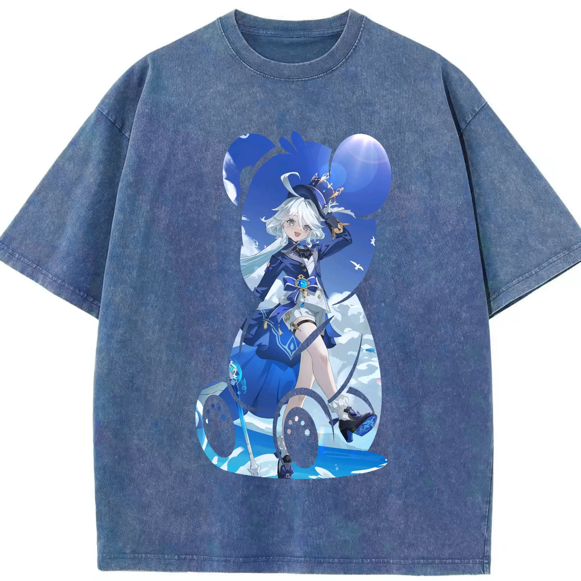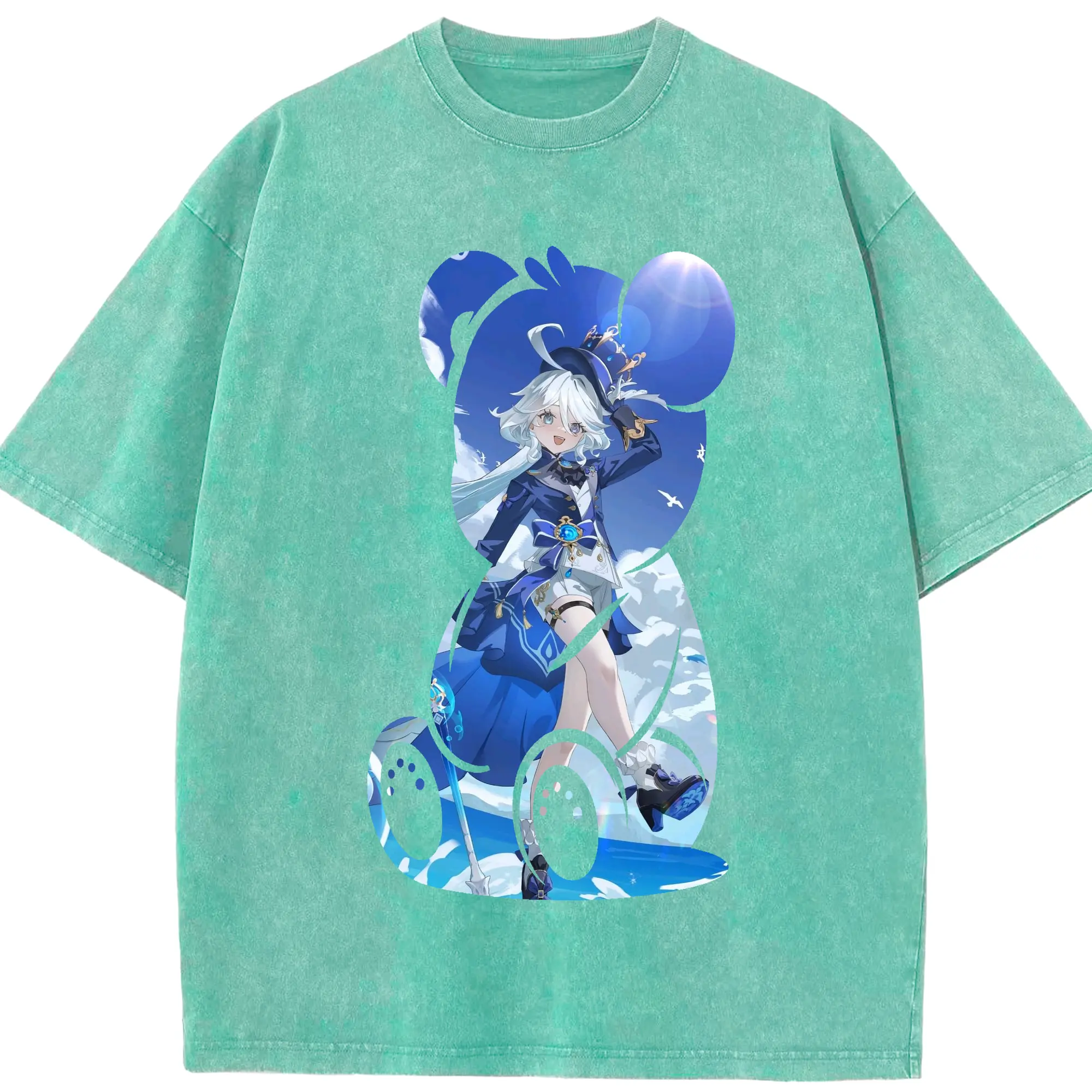 原 神 グッズ フリーナ - 綿100% ヴィンテージ風 半袖Tシャツ ・ 背面プリント ・ 柔らか肌触り ・ 通気性 快適 ・ スポーツ カジュアル 外出用