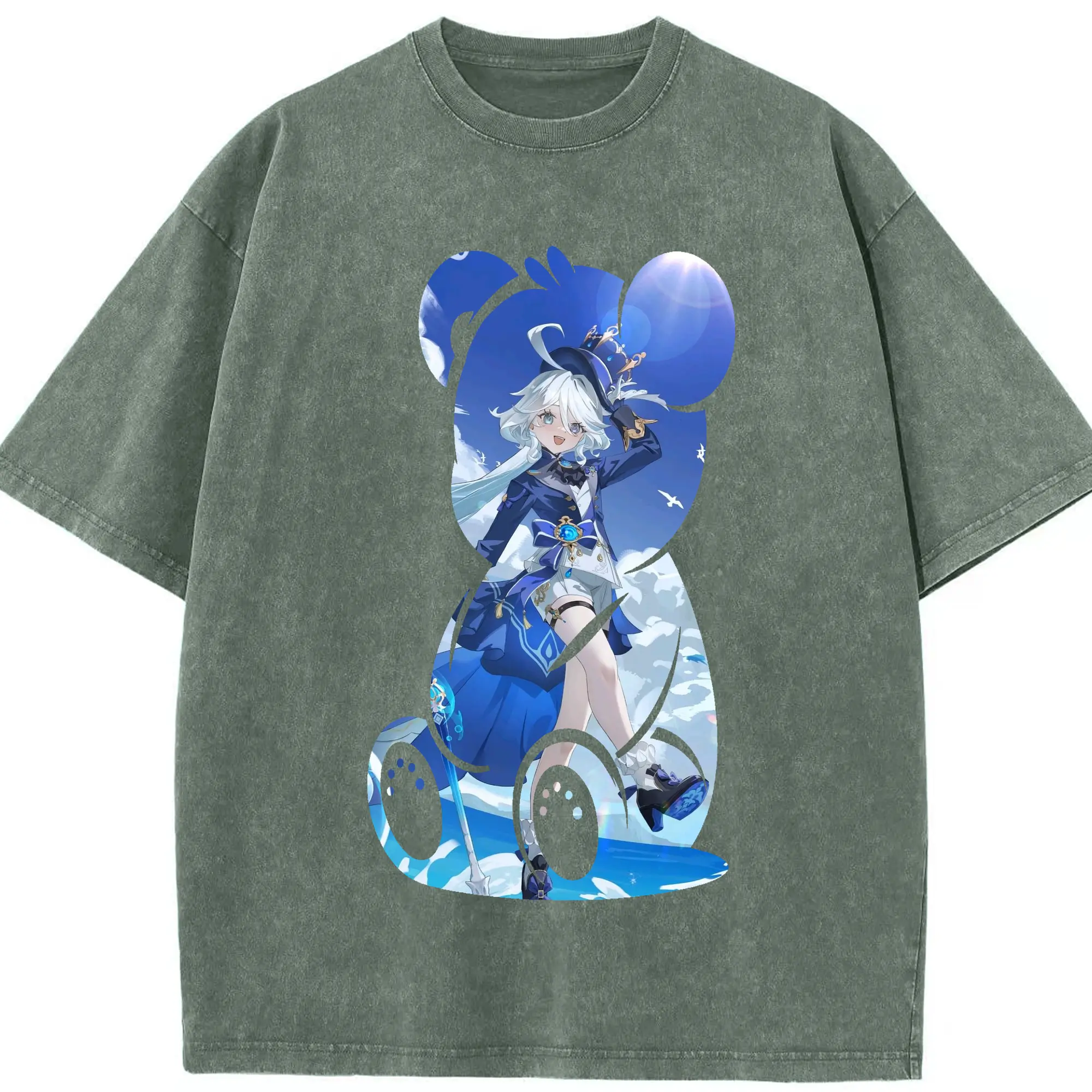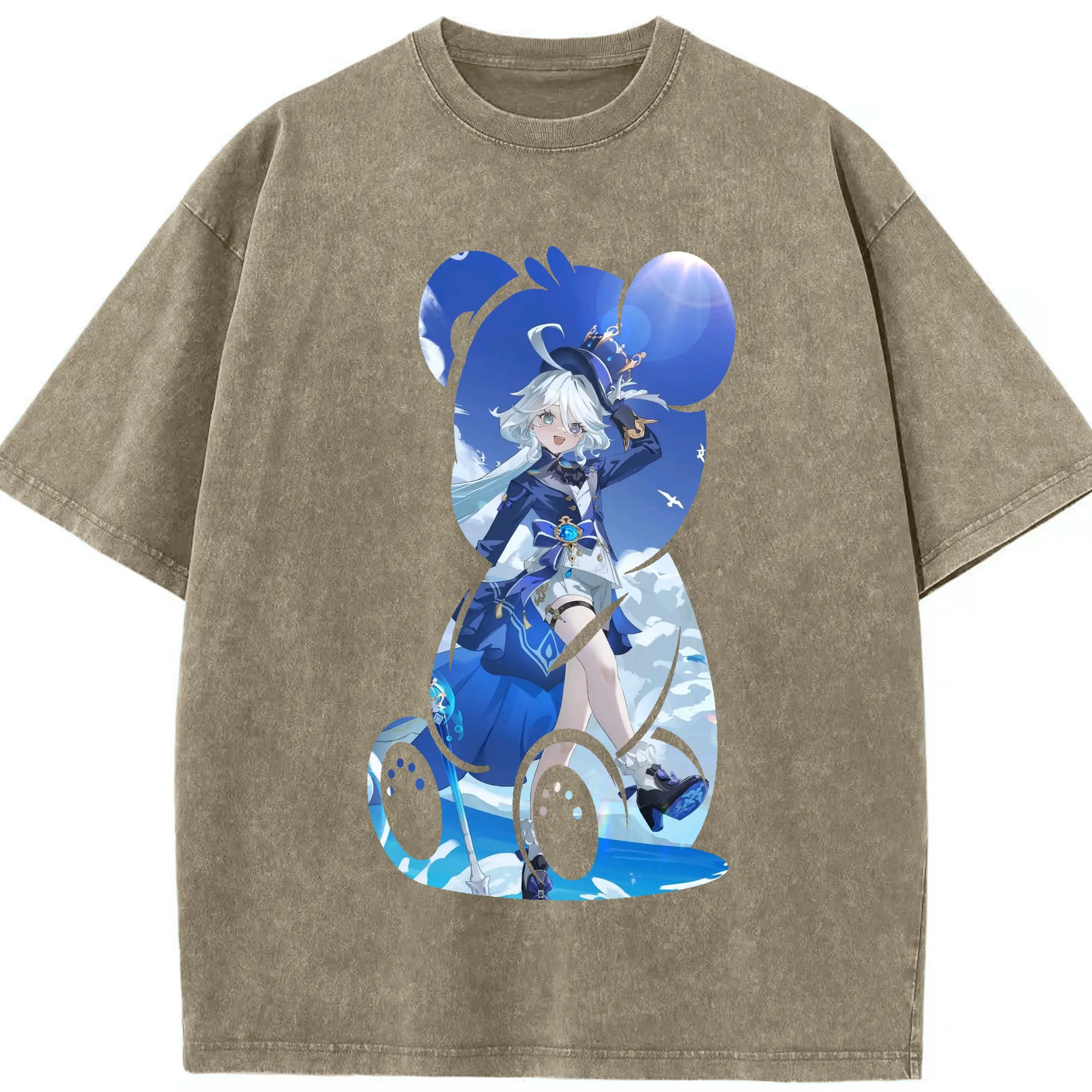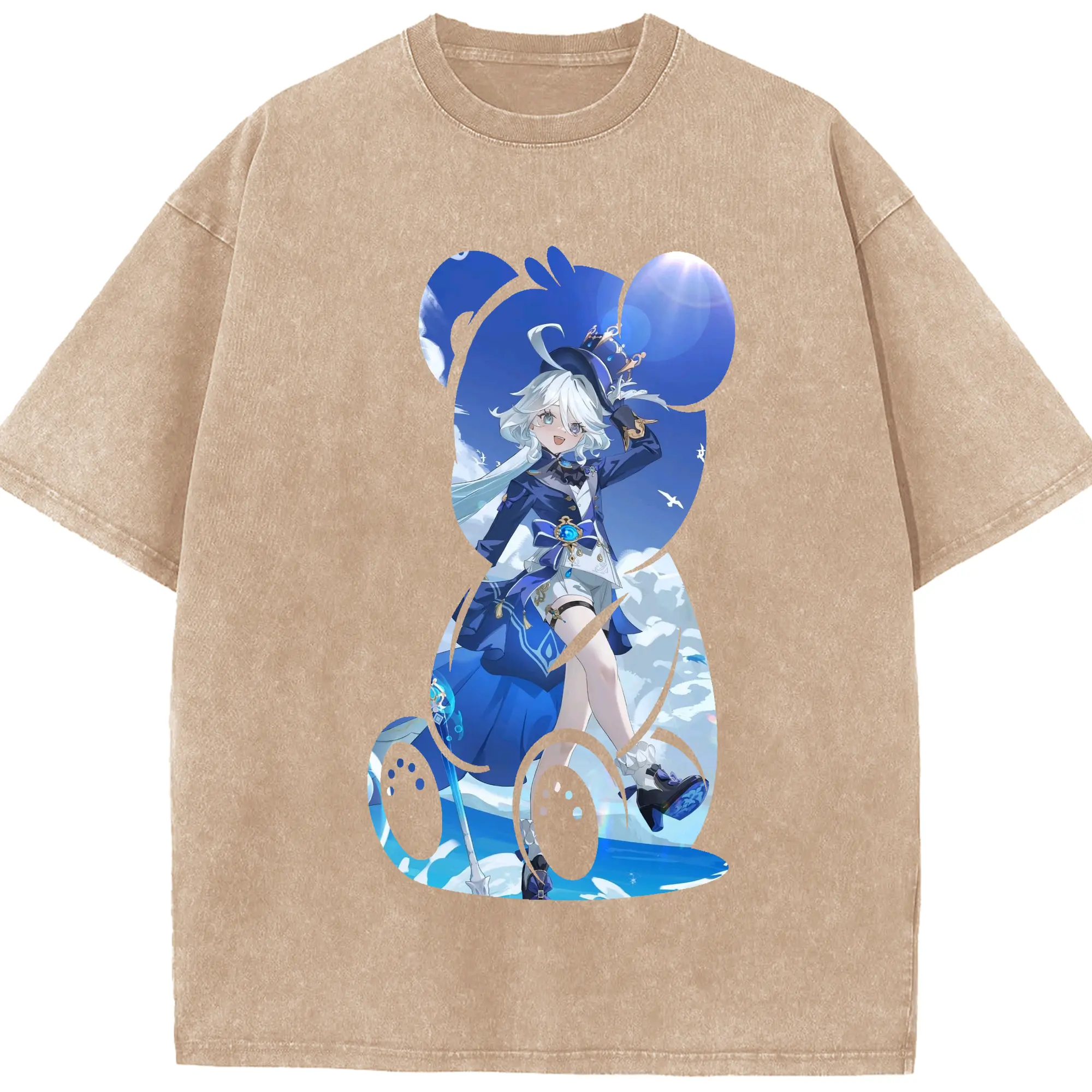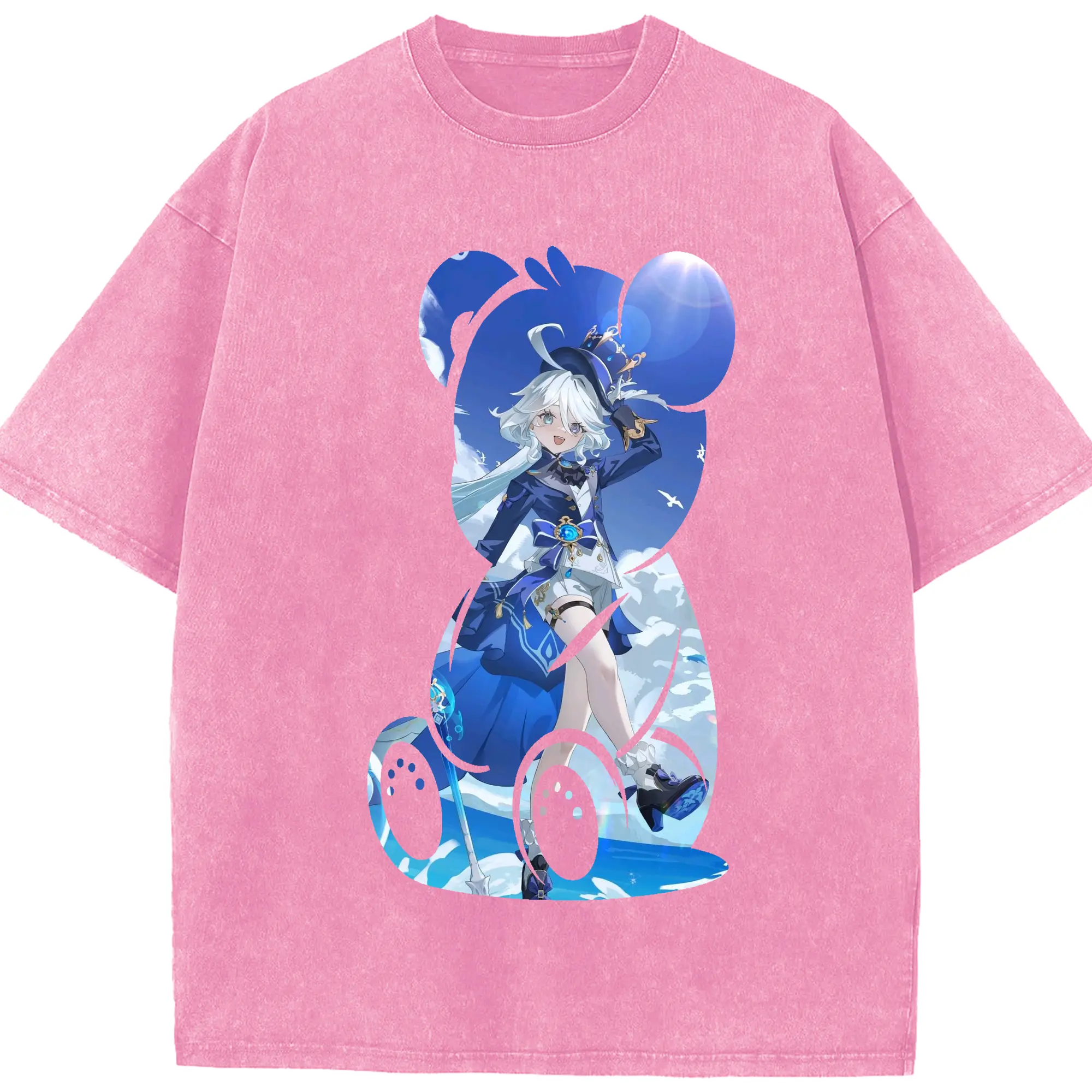 原 神 グッズ フリーナ - 綿100% ヴィンテージ風 半袖Tシャツ ・ 背面プリント ・ 柔らか肌触り ・ 通気性 快適 ・ スポーツ カジュアル 外出用