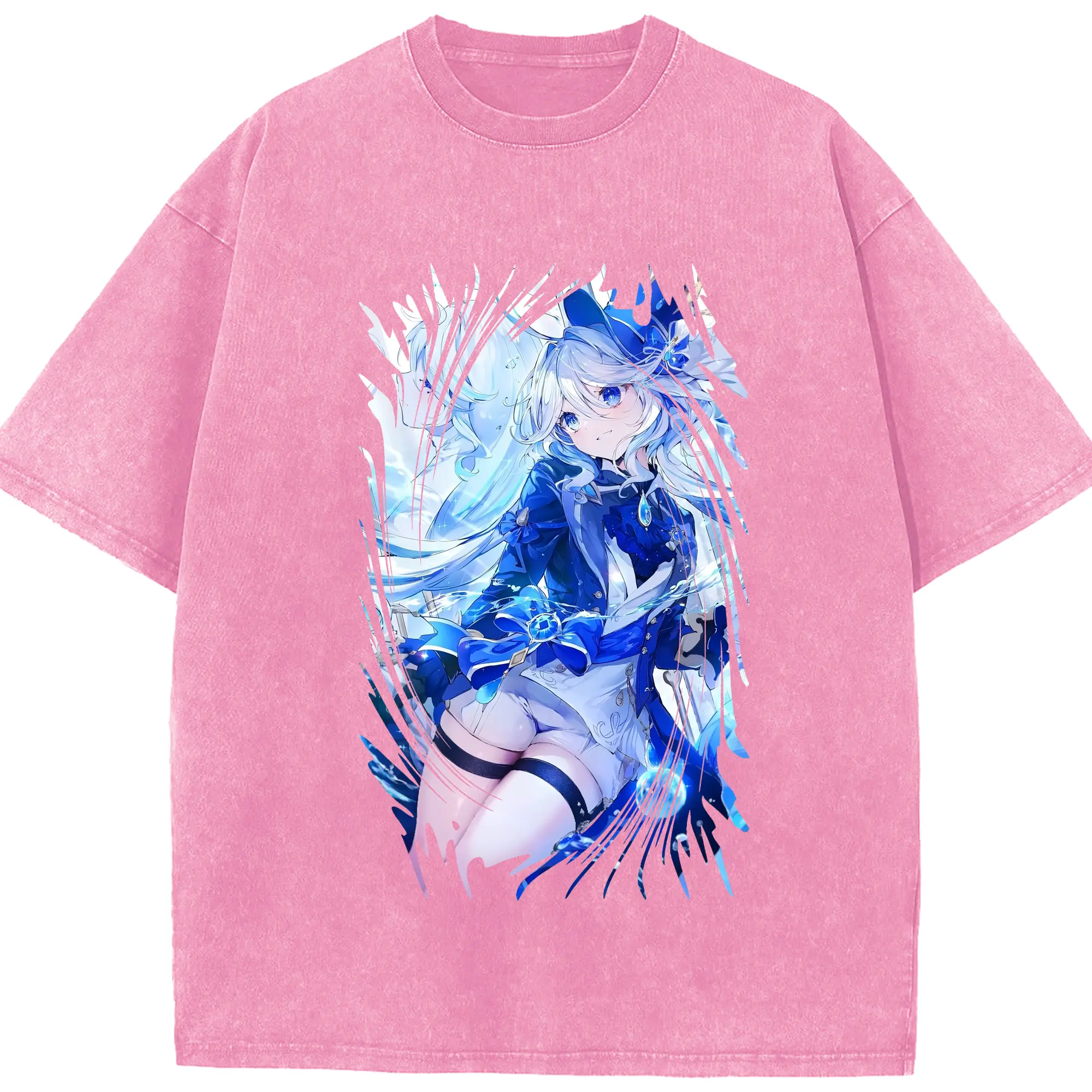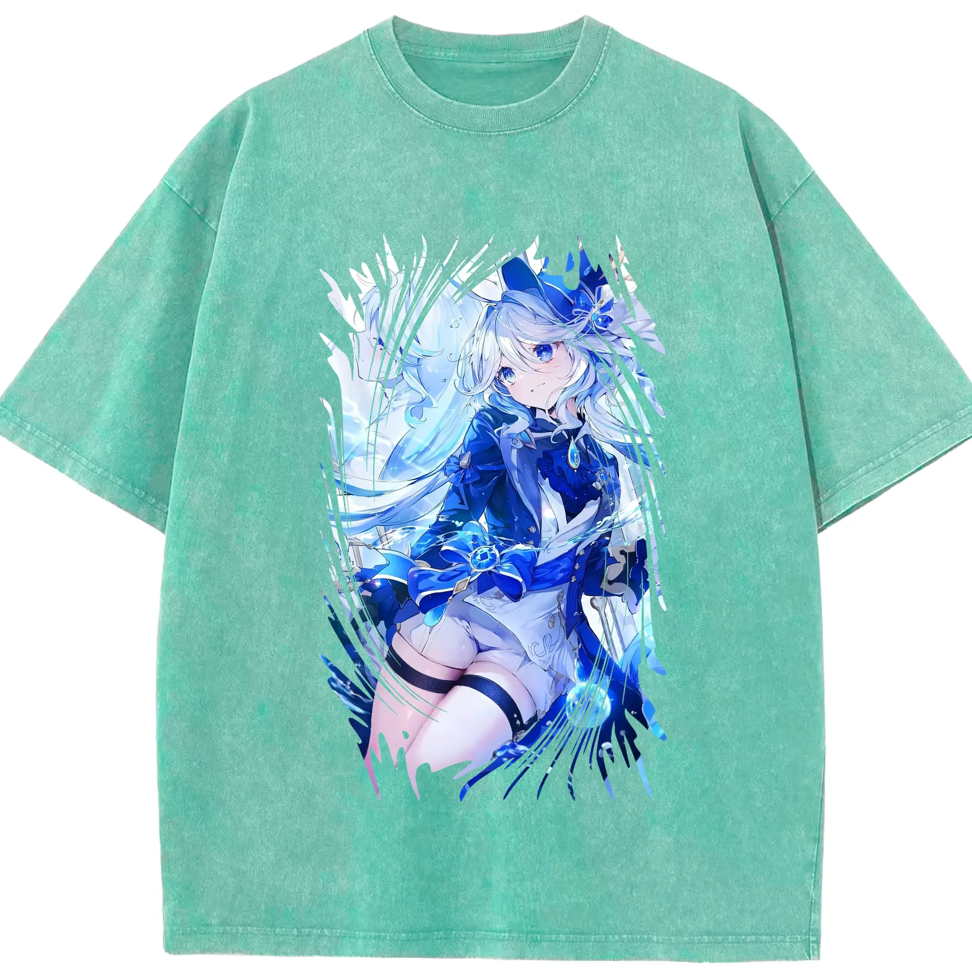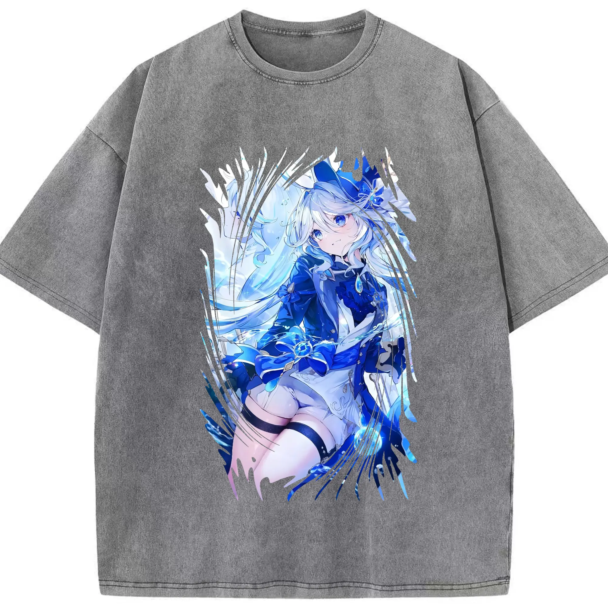 原 神 グッズ フリーナ - 綿100% ヴィンテージ風 半袖Tシャツ ・ 背面プリント ・ 柔らか肌触り ・ 通気性 快適 ・ スポーツ カジュアル 外出用