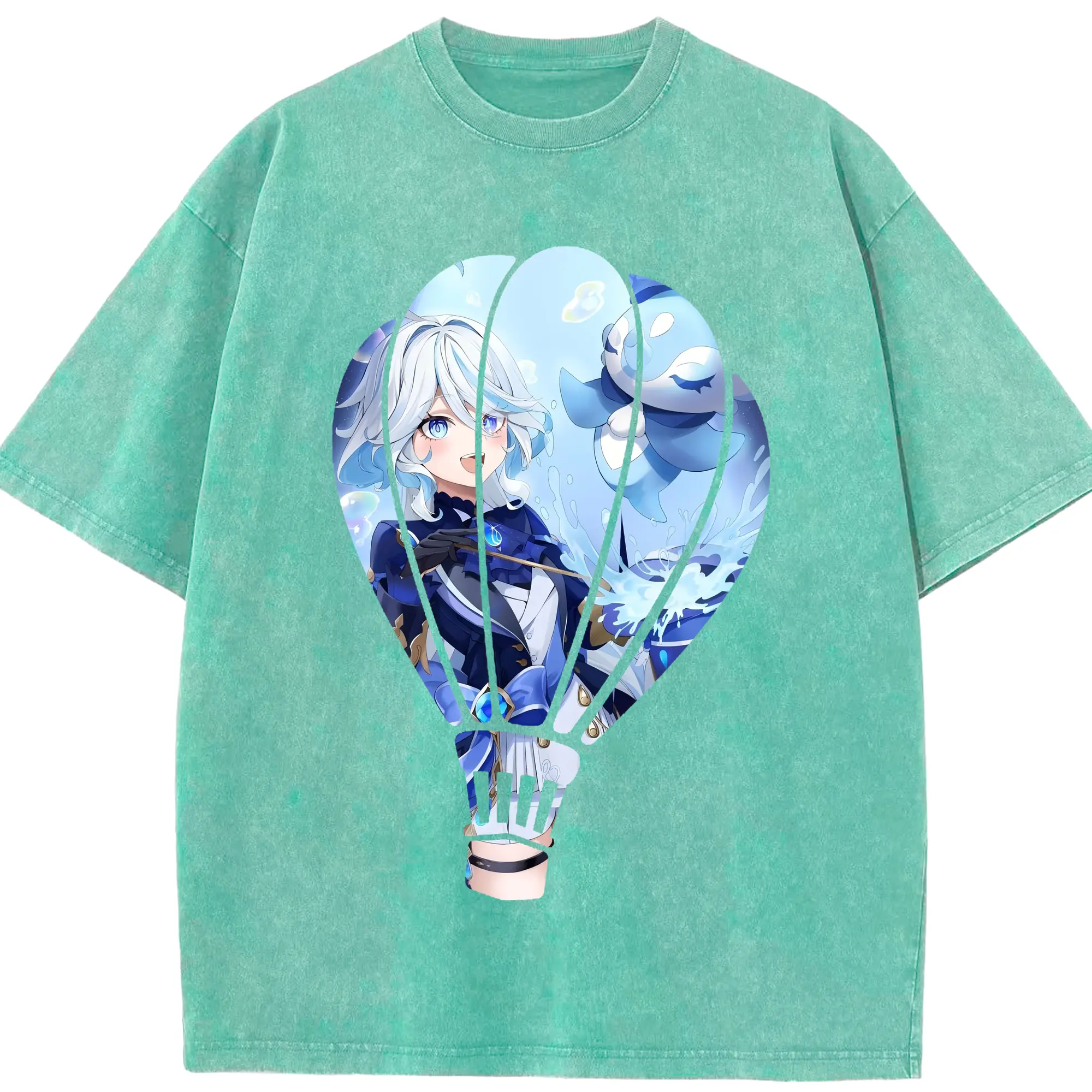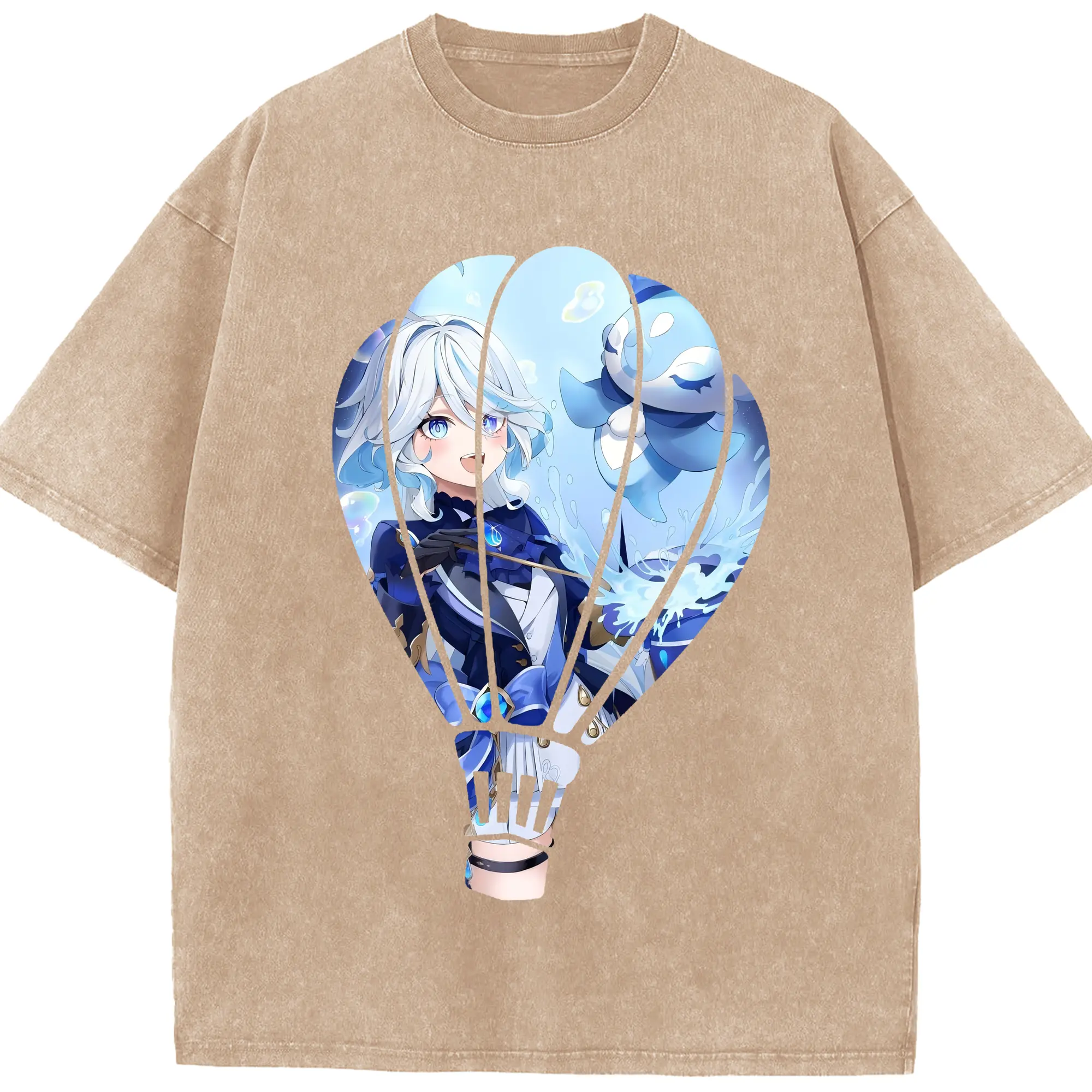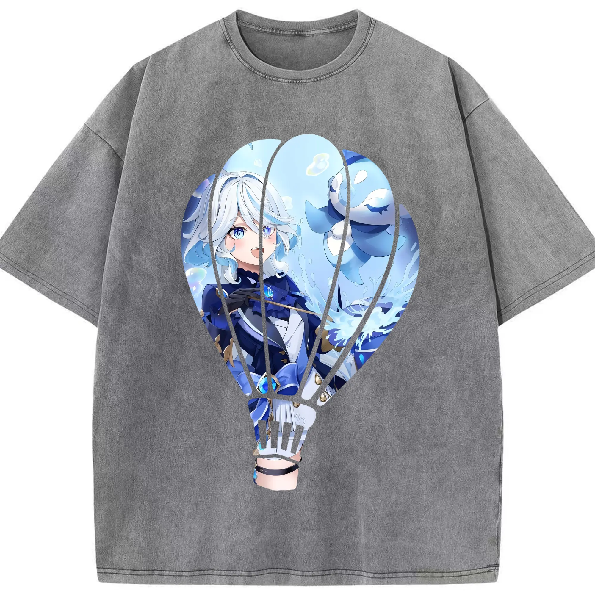 原 神 グッズ フリーナ - 綿100% ヴィンテージ風 半袖Tシャツ ・ 背面プリント ・ 柔らか肌触り ・ 通気性 快適 ・ スポーツ カジュアル 外出用