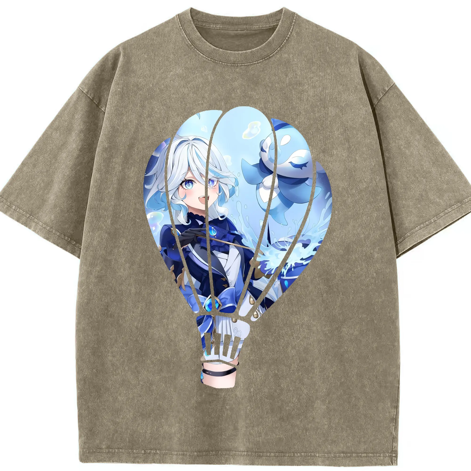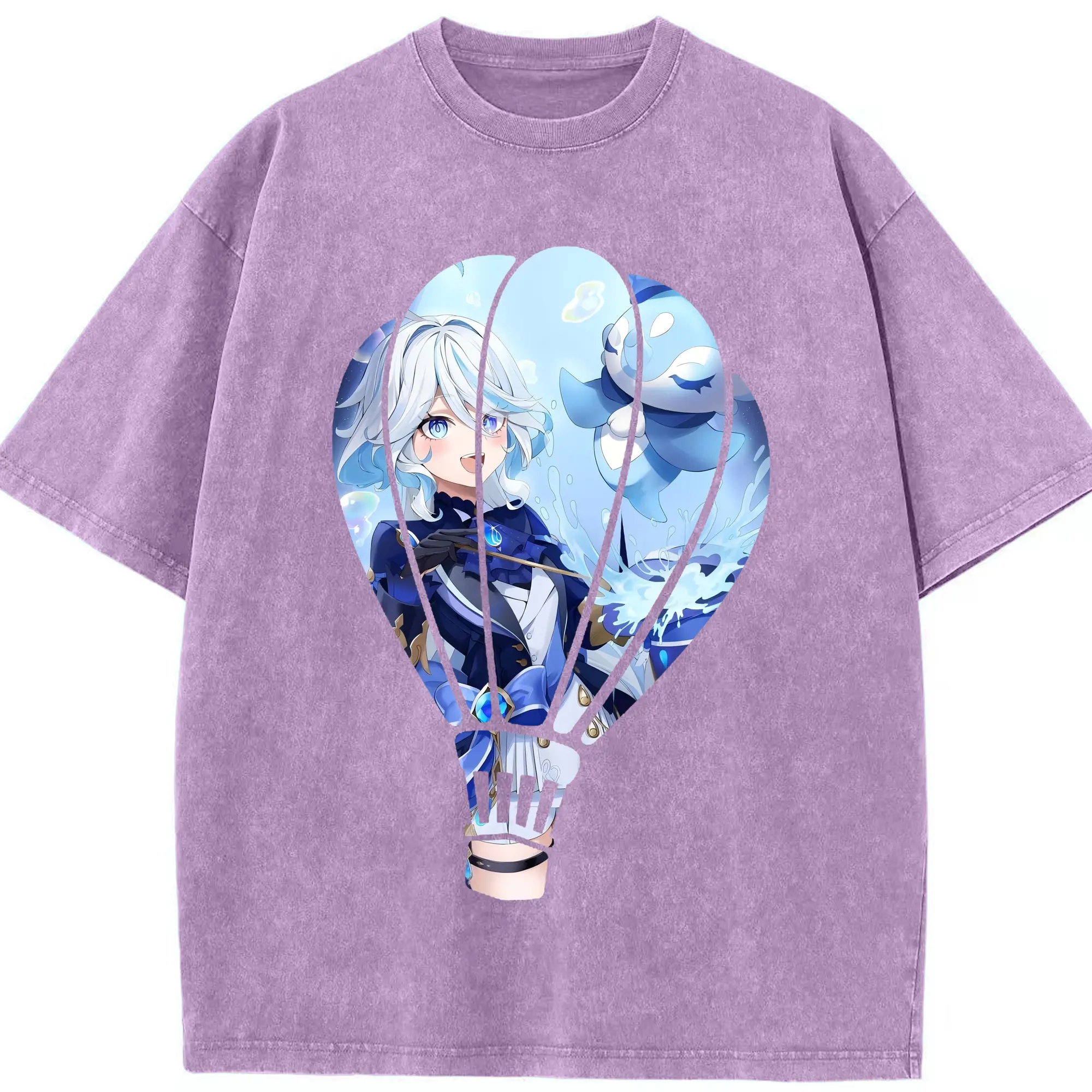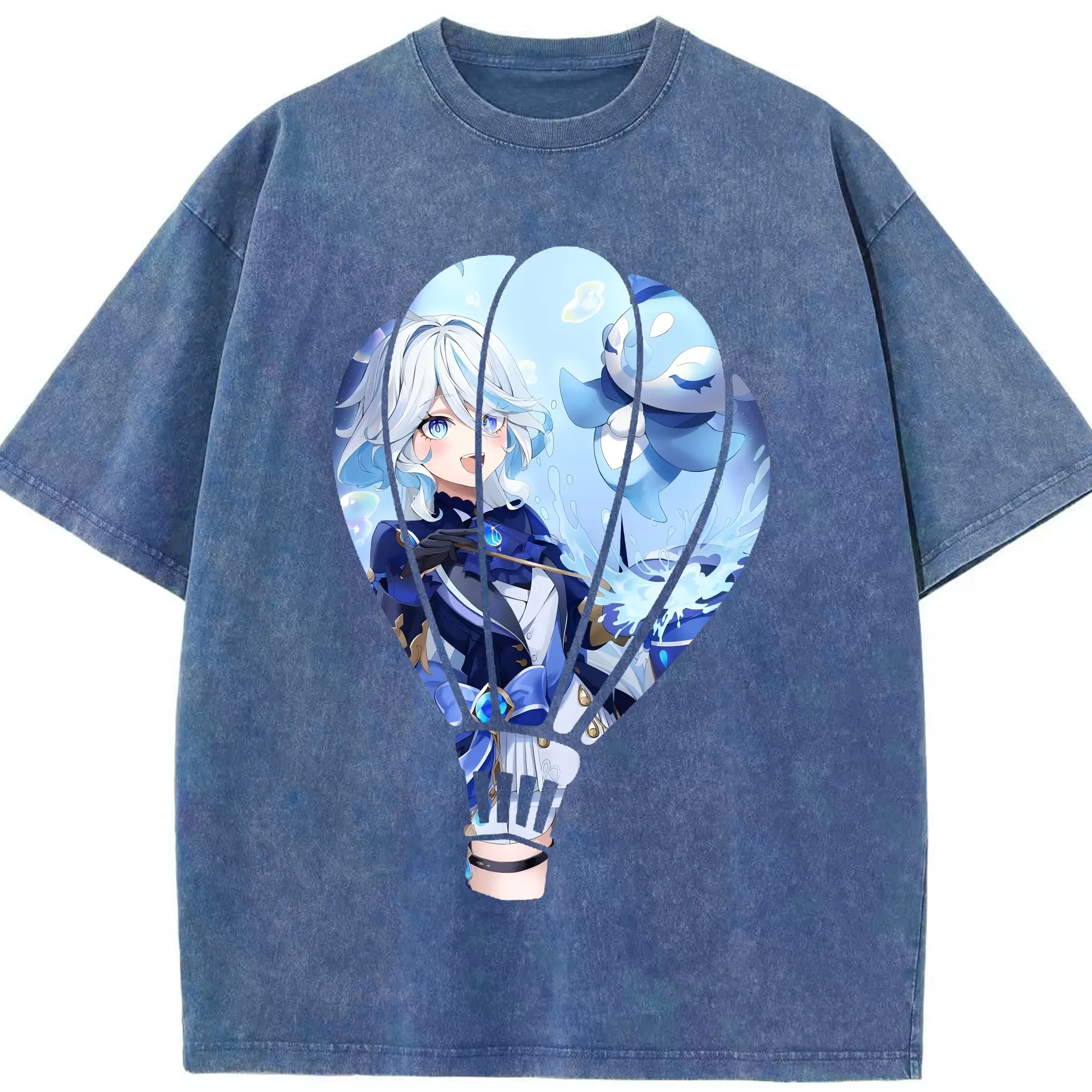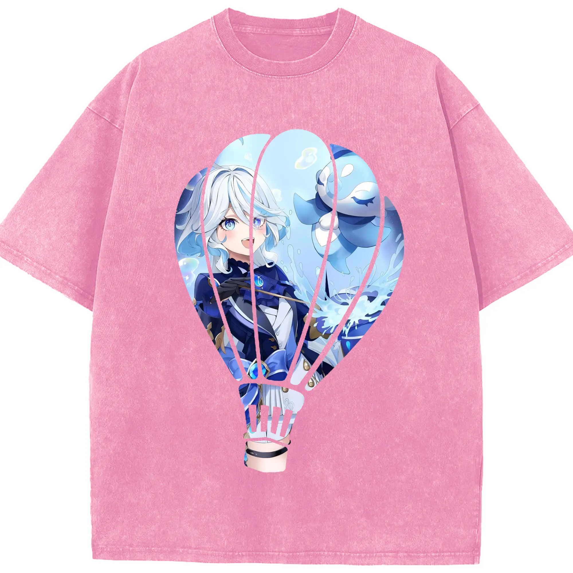 原 神 グッズ フリーナ - 綿100% ヴィンテージ風 半袖Tシャツ ・ 背面プリント ・ 柔らか肌触り ・ 通気性 快適 ・ スポーツ カジュアル 外出用