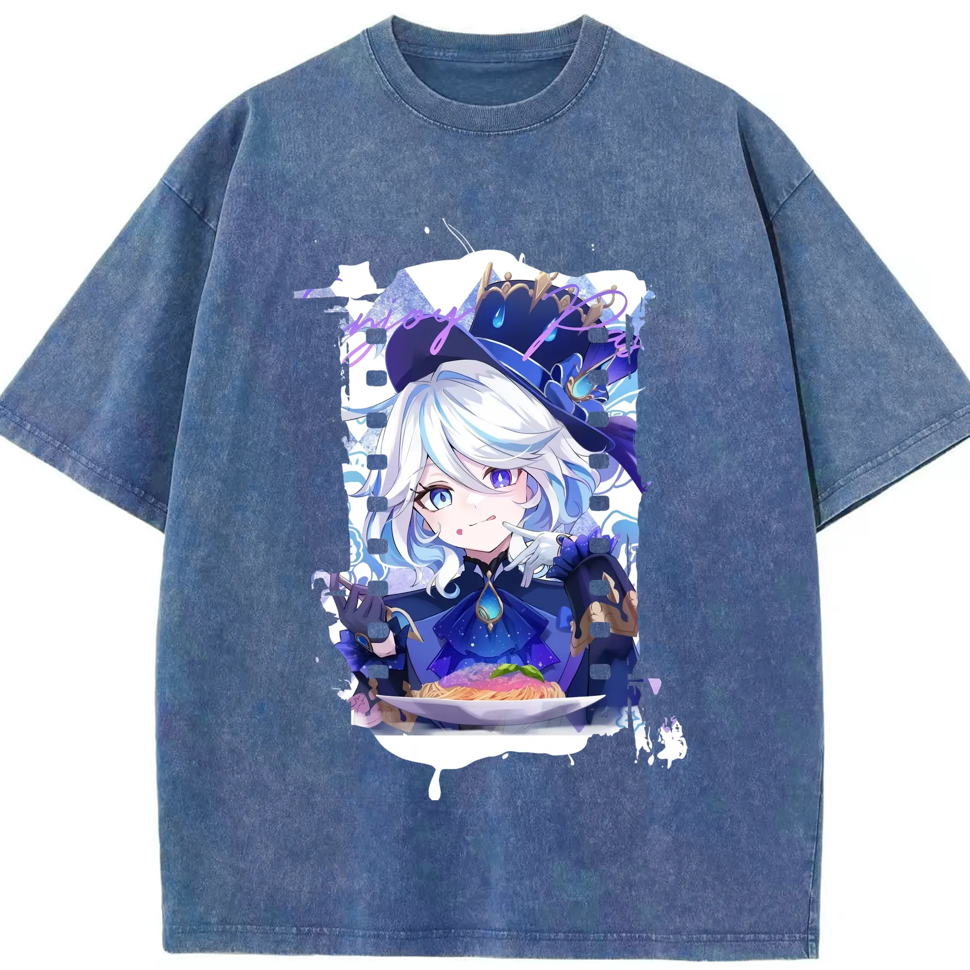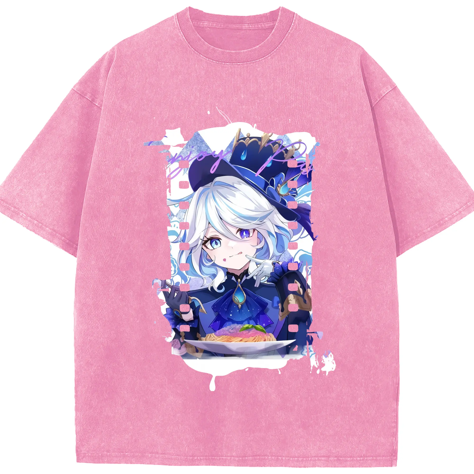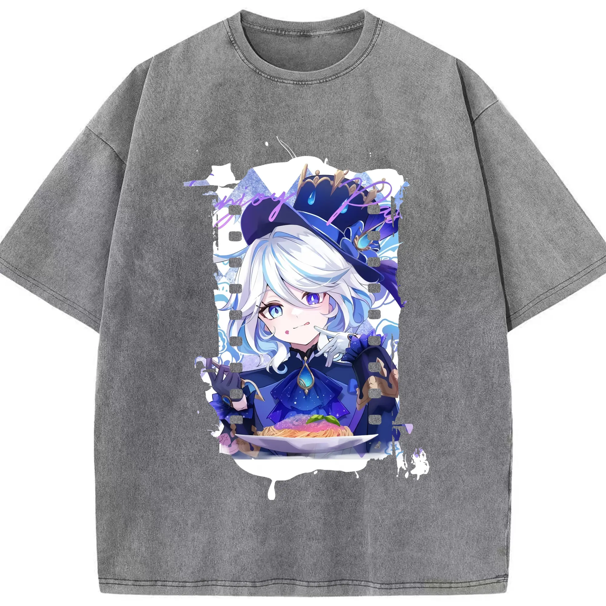 原 神 グッズ フリーナ - 綿100% ヴィンテージ風 半袖Tシャツ ・ 背面プリント ・ 柔らか肌触り ・ 通気性 快適 ・ スポーツ カジュアル 外出用