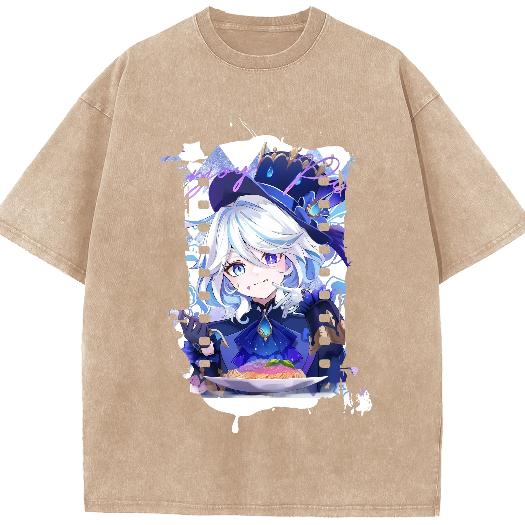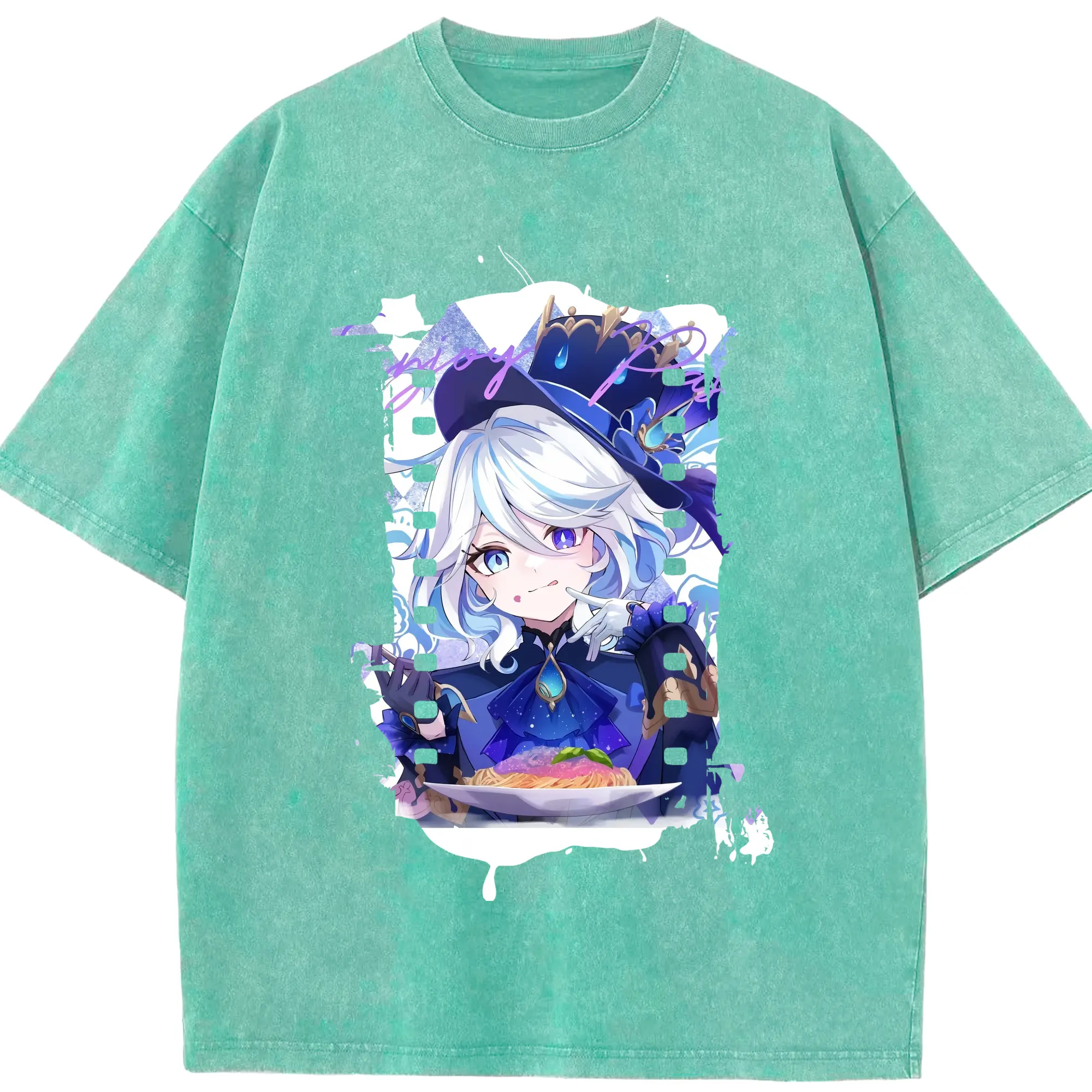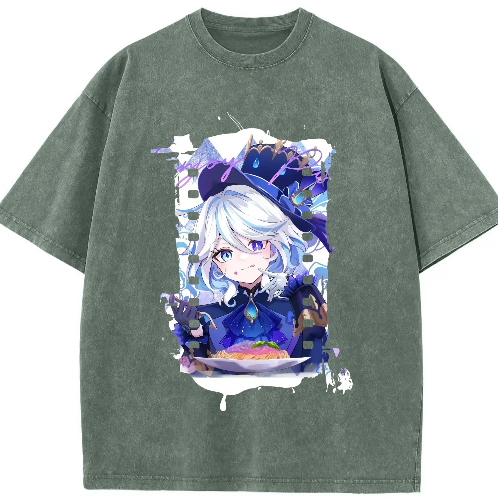 原 神 グッズ フリーナ - 綿100% ヴィンテージ風 半袖Tシャツ ・ 背面プリント ・ 柔らか肌触り ・ 通気性 快適 ・ スポーツ カジュアル 外出用