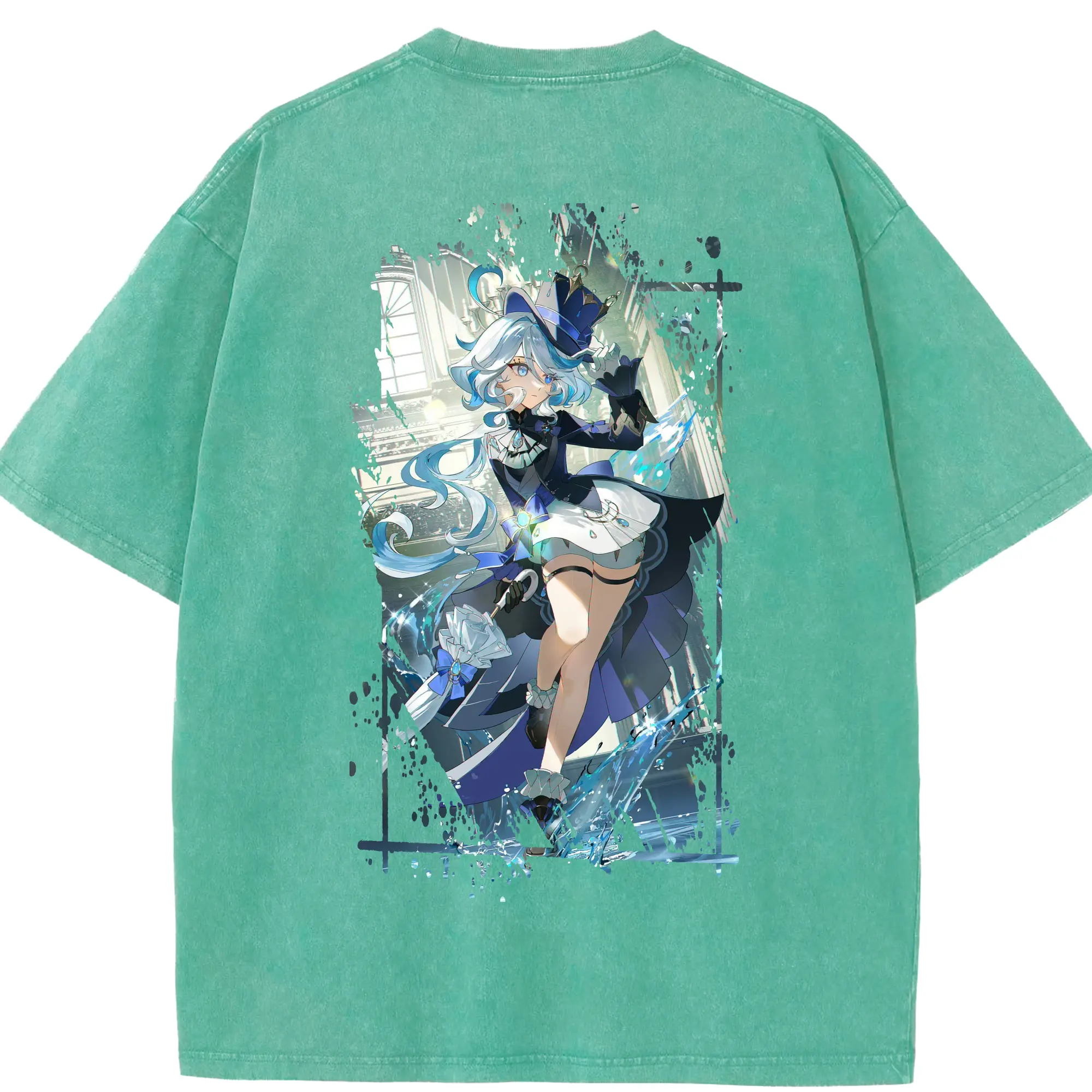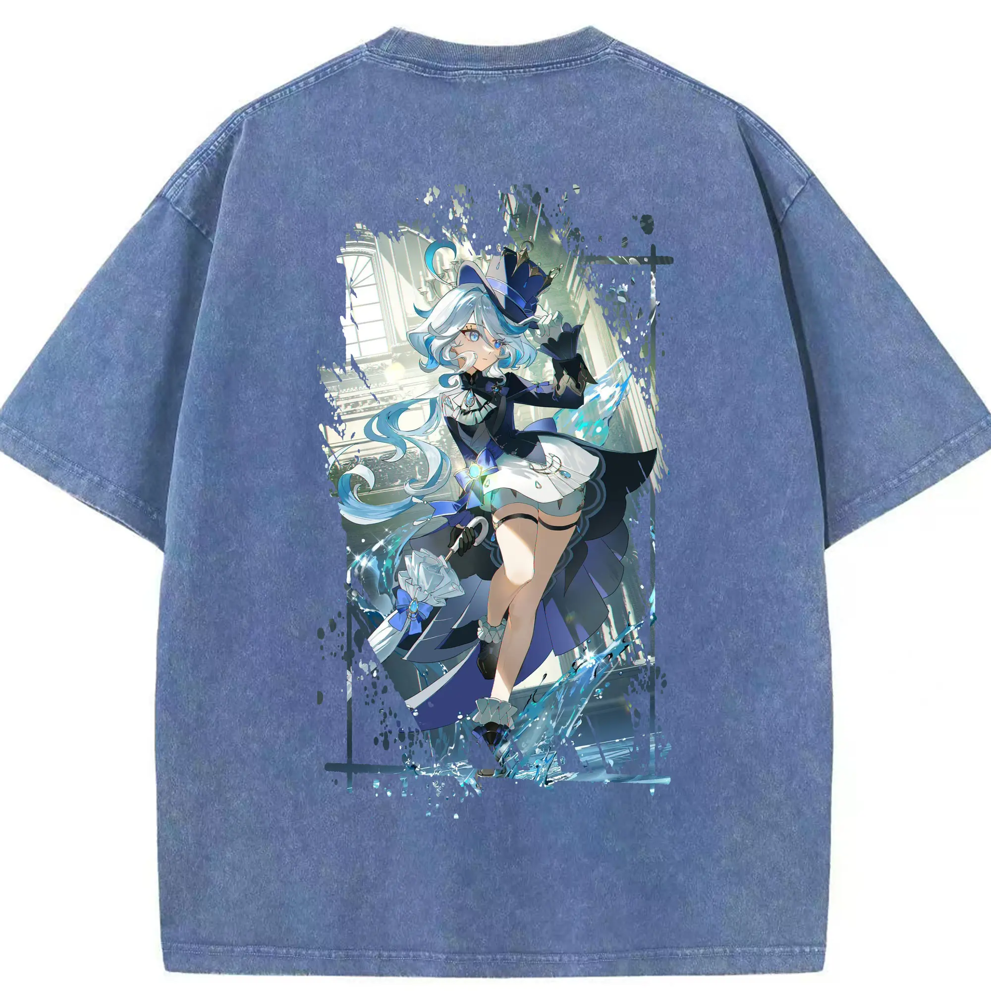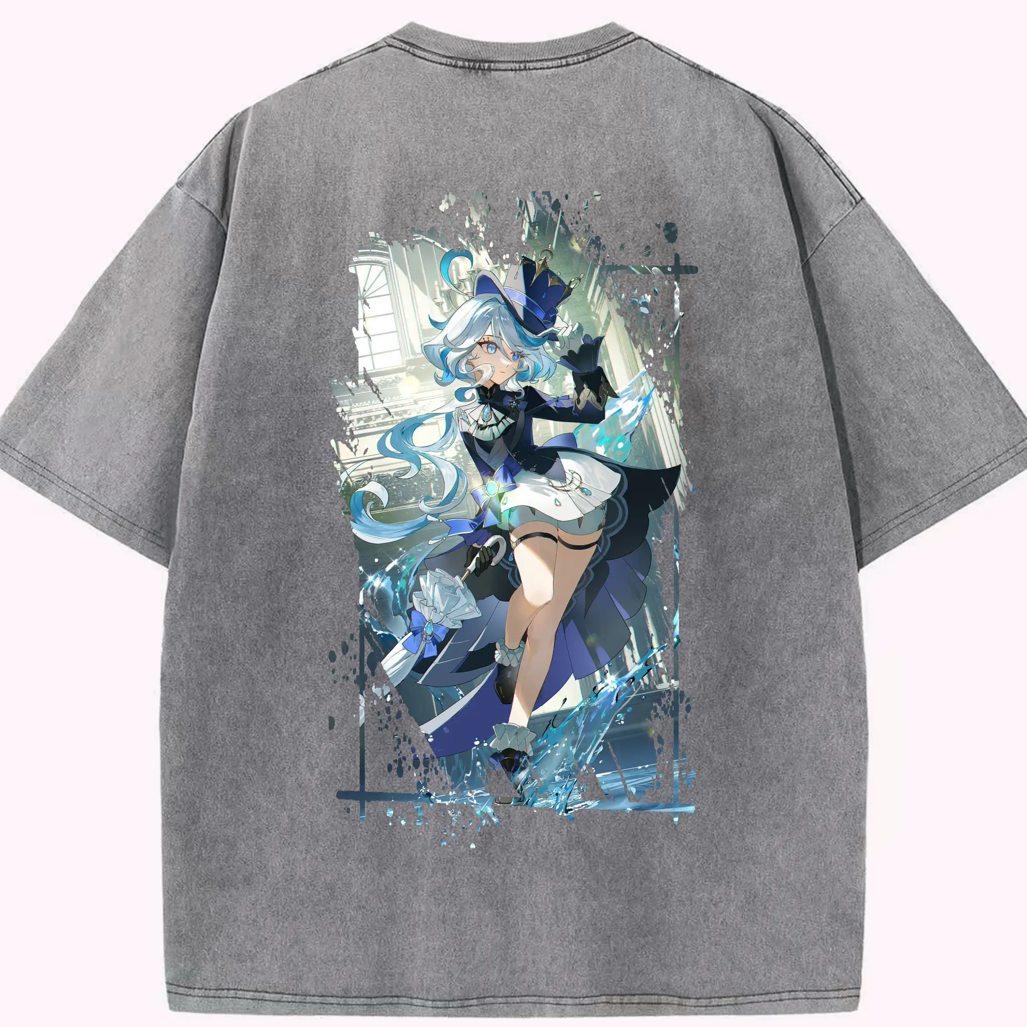 原 神 グッズ フリーナ - 綿100% ヴィンテージ風 半袖Tシャツ ・ フロントプリント ・ 柔らか肌触り ・ 通気性 快適 ・ スポーツ カジュアル 外出用