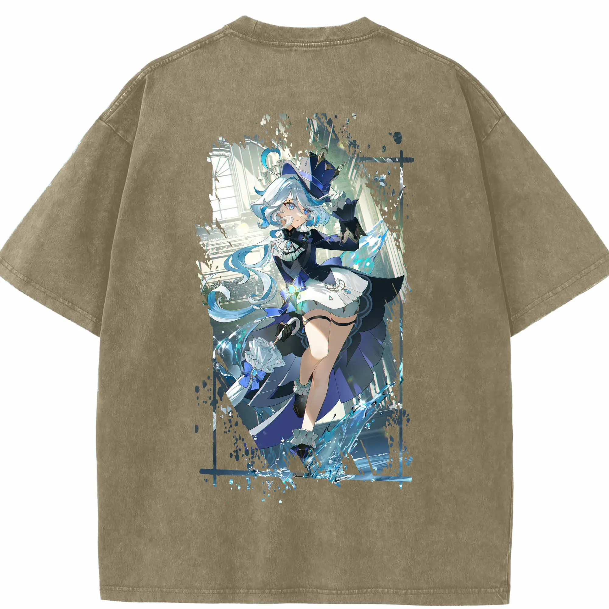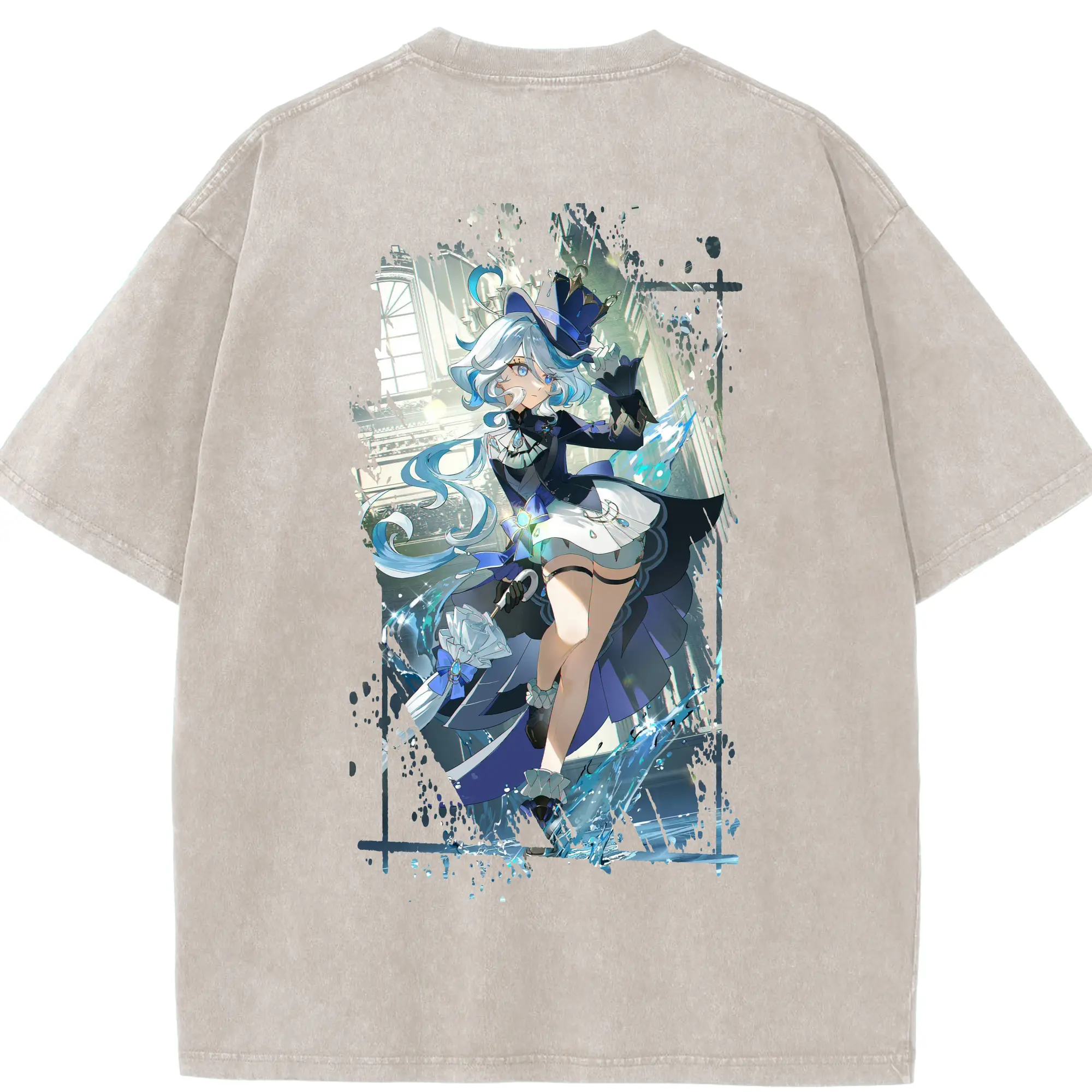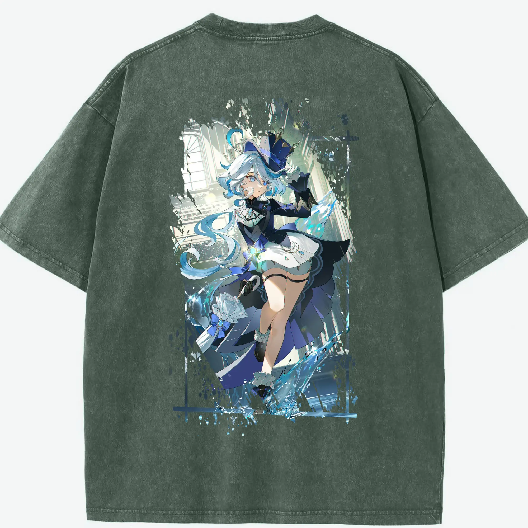 原 神 グッズ フリーナ - 綿100% ヴィンテージ風 半袖Tシャツ ・ フロントプリント ・ 柔らか肌触り ・ 通気性 快適 ・ スポーツ カジュアル 外出用