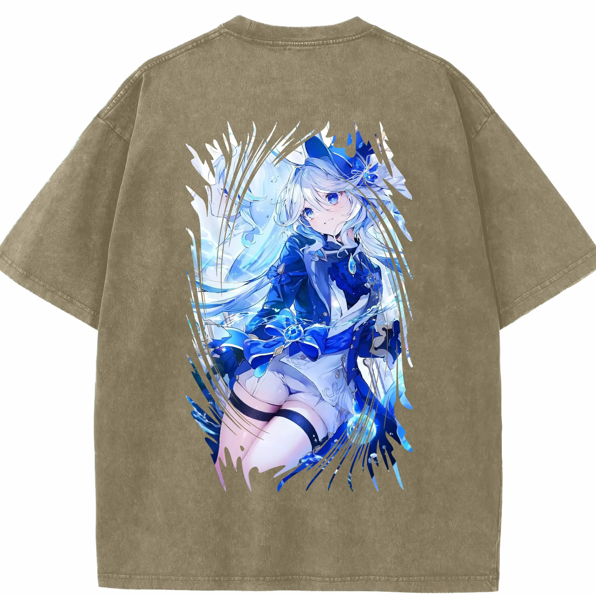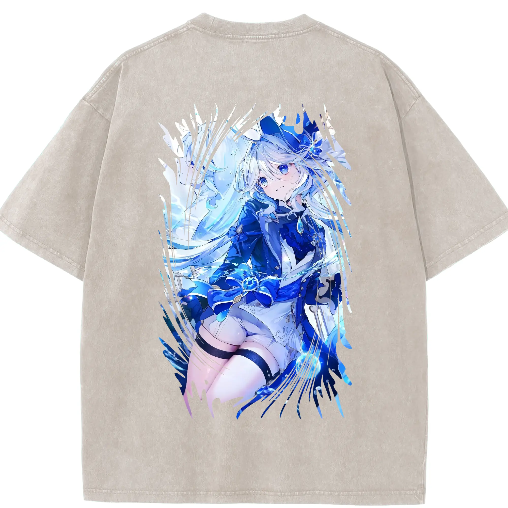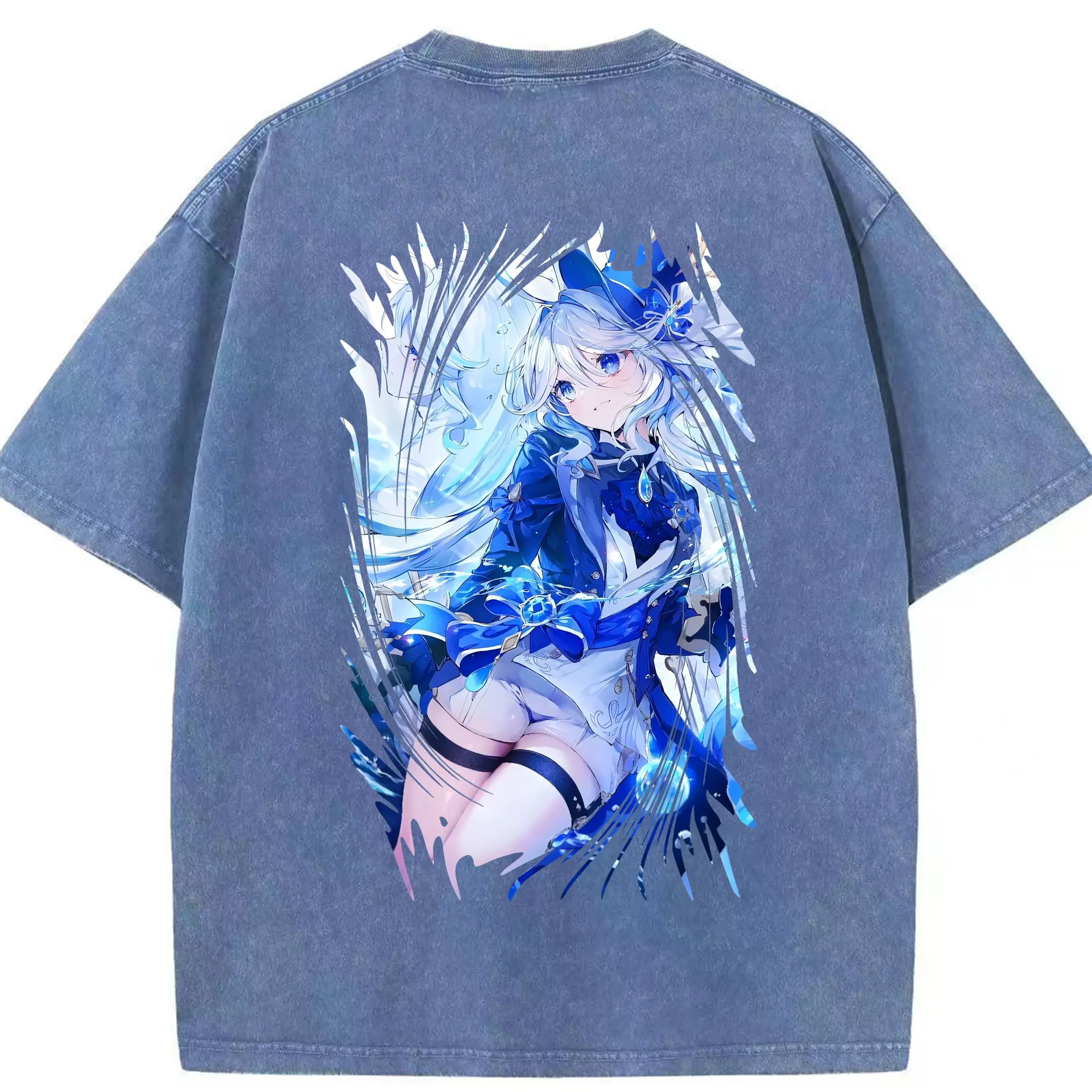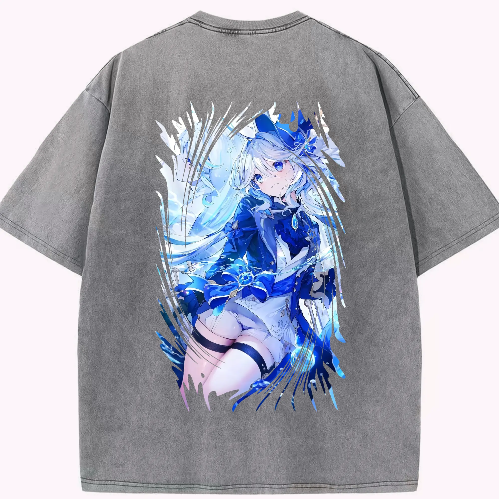 原 神 グッズ フリーナ - 綿100% ヴィンテージ風 半袖Tシャツ ・ フロントプリント ・ 柔らか肌触り ・ 通気性 快適 ・ スポーツ カジュアル 外出用
