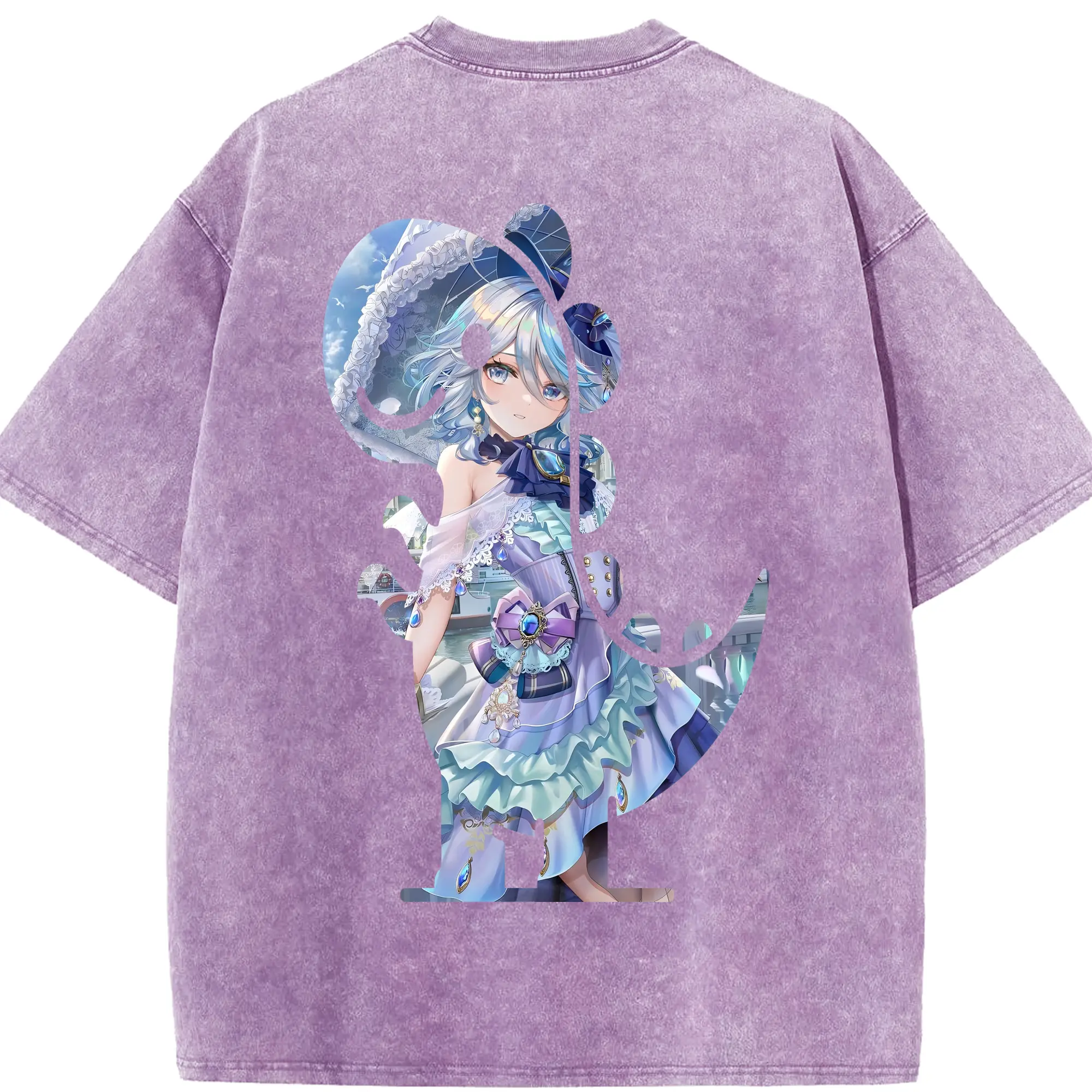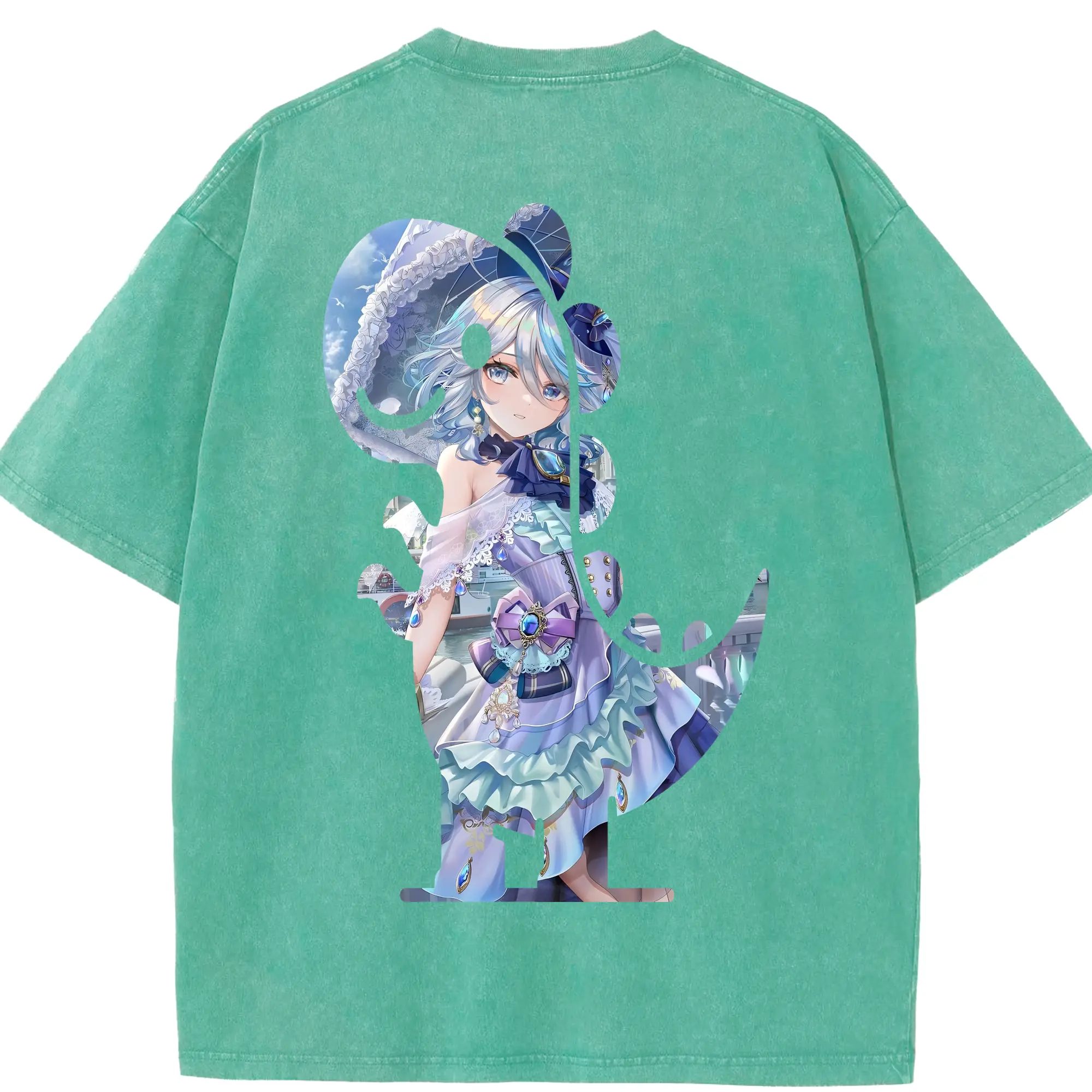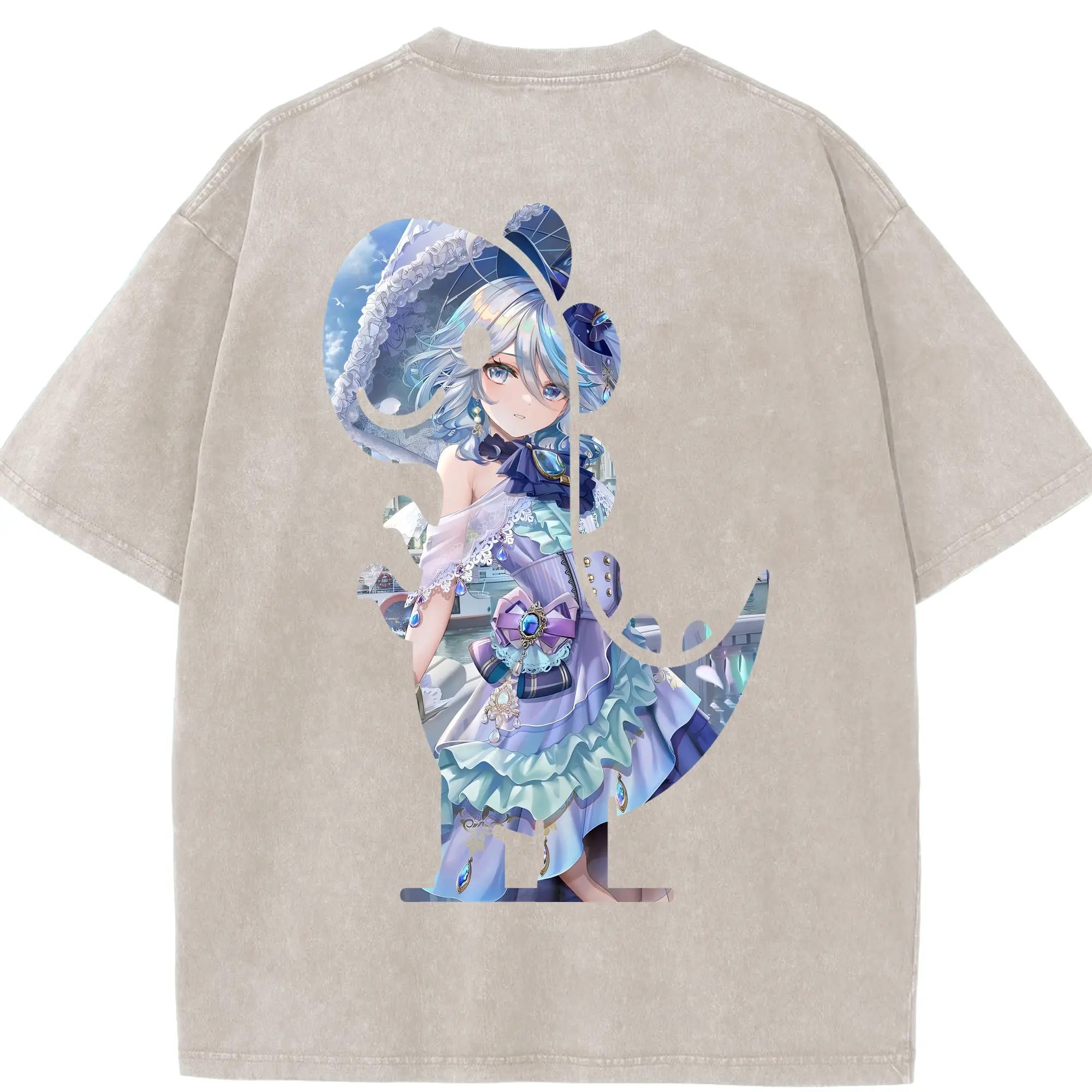 原 神 グッズ フリーナ - 綿100% ヴィンテージ風 半袖Tシャツ ・ フロントプリント ・ 柔らか肌触り ・ 通気性 快適 ・ スポーツ カジュアル 外出用