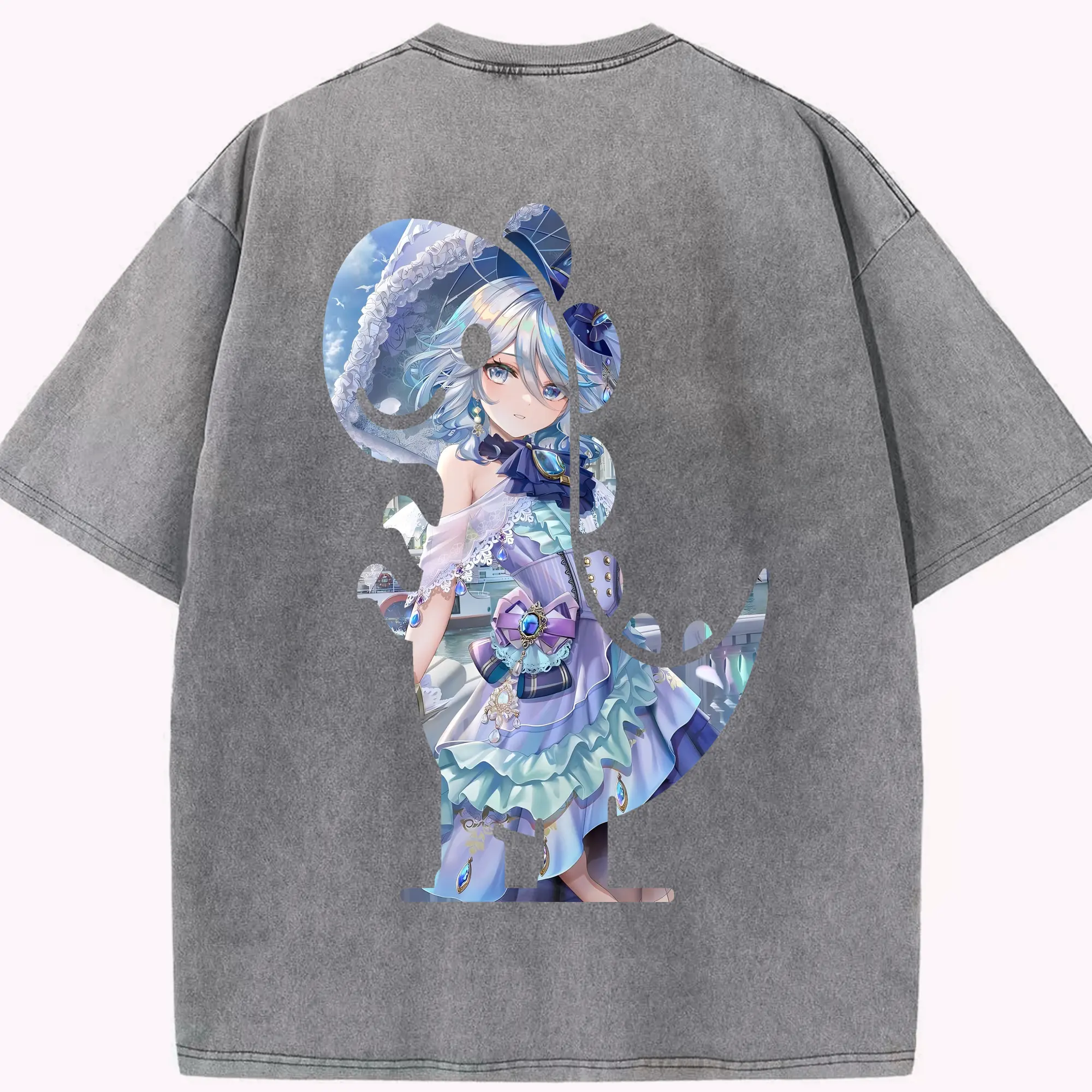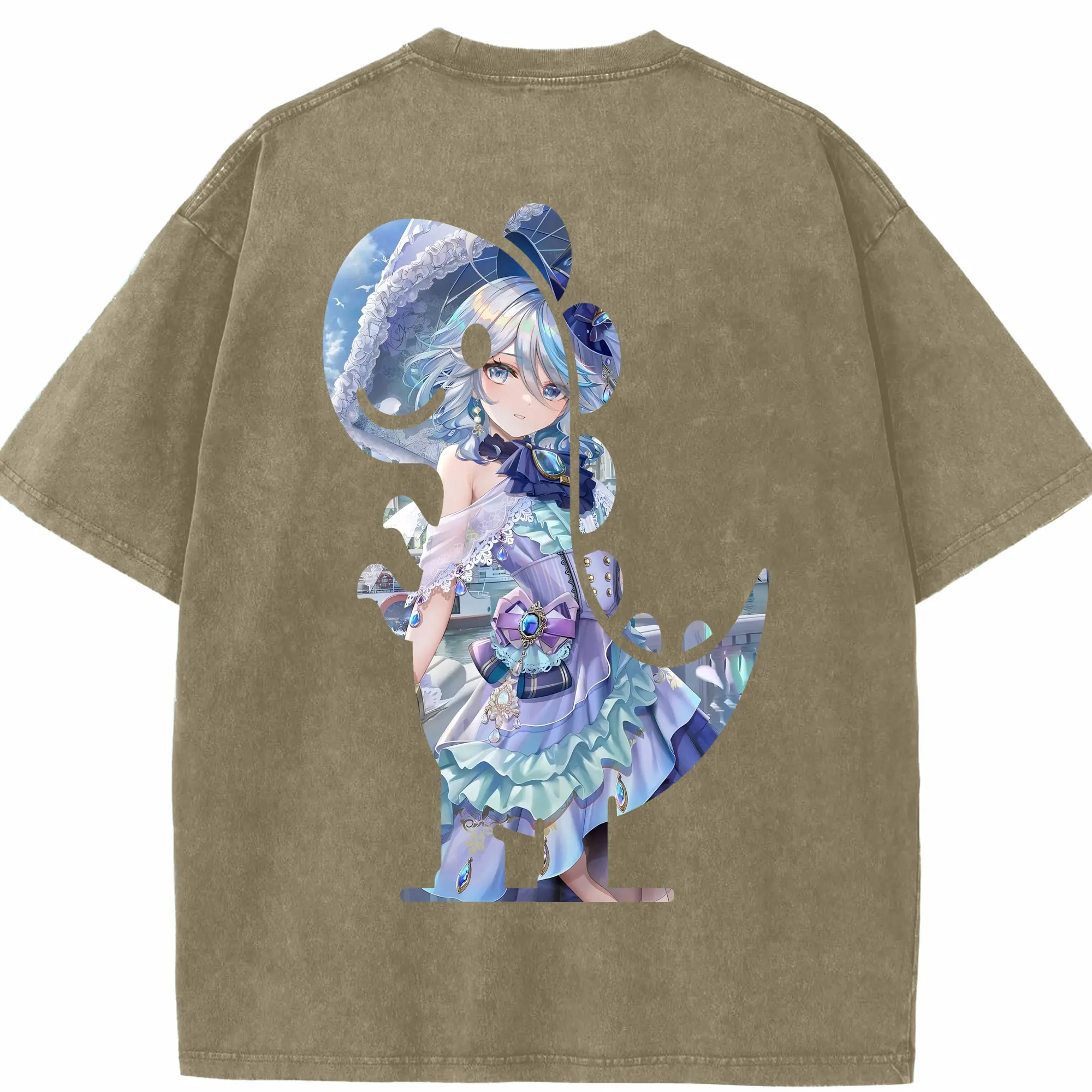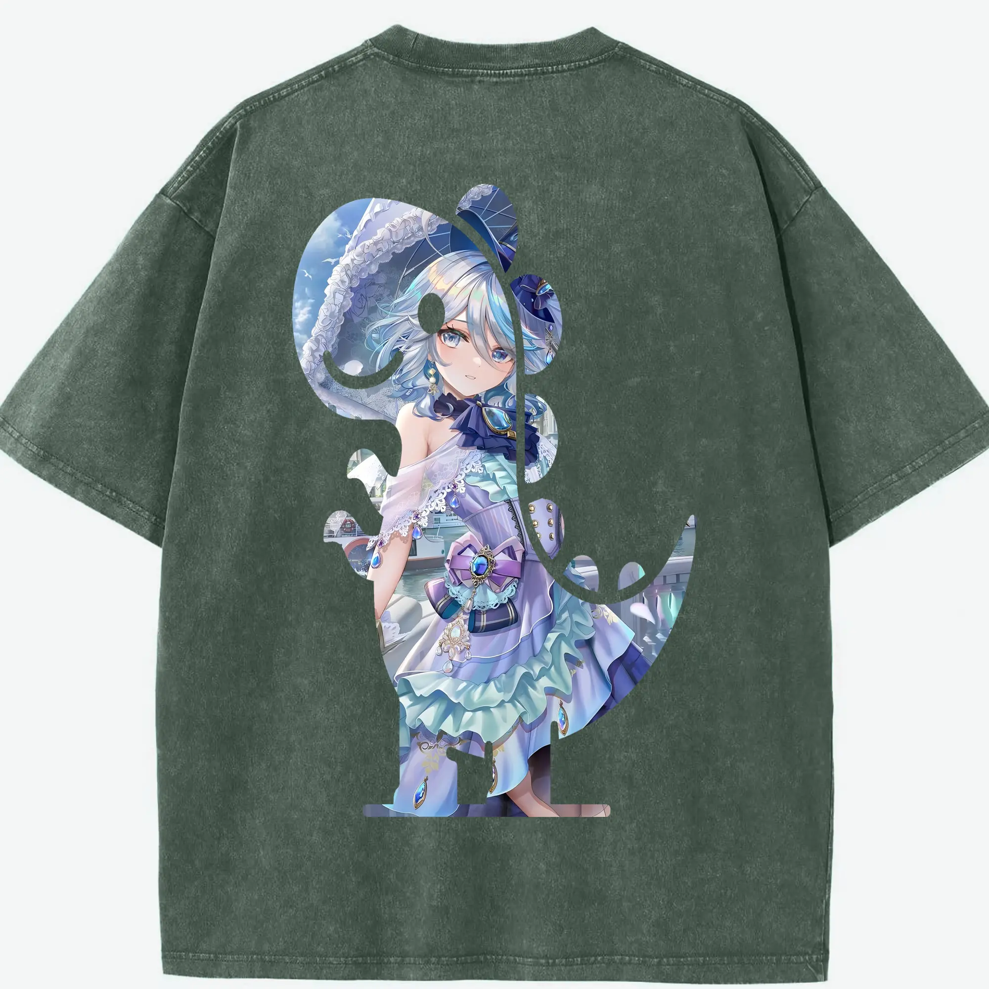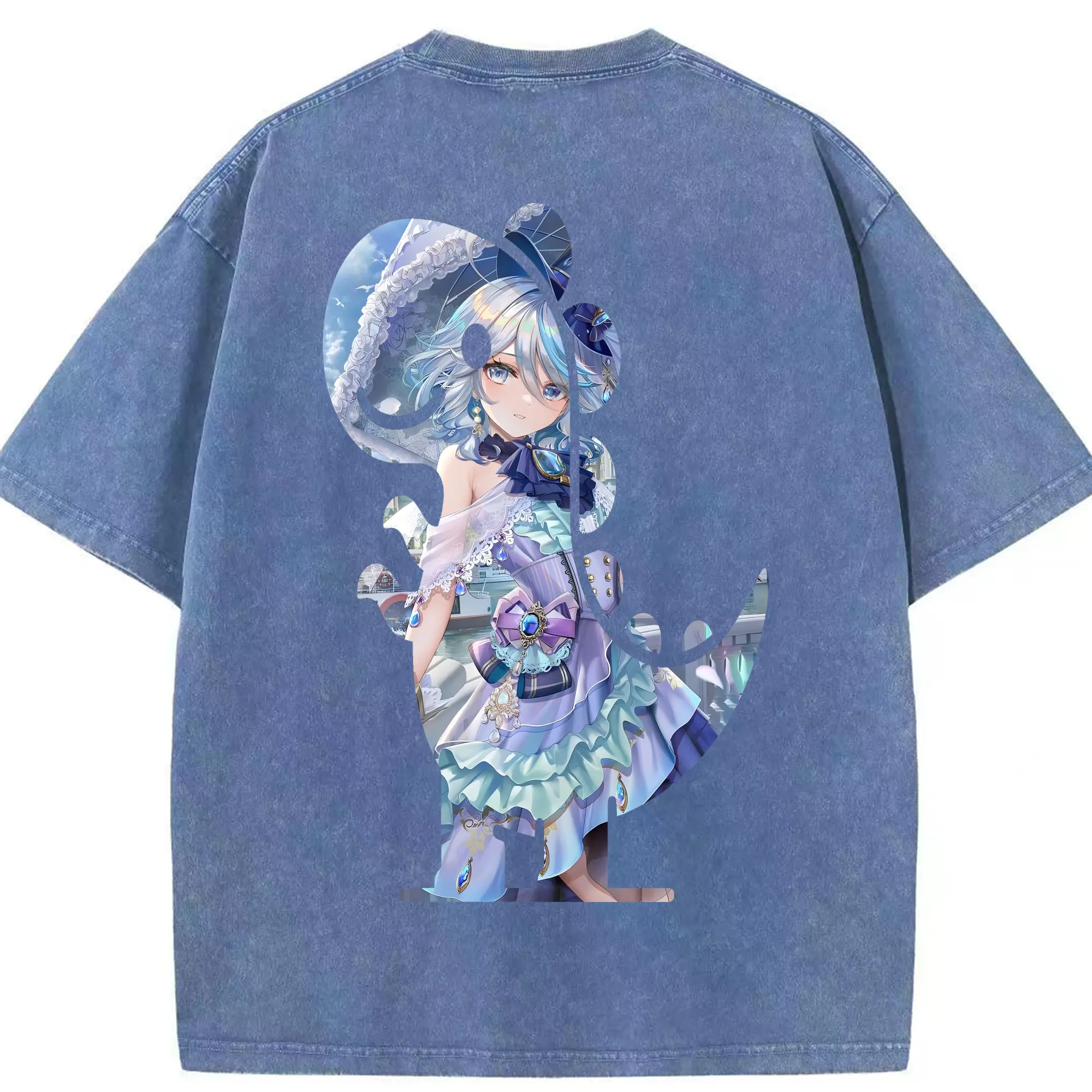 原 神 グッズ フリーナ - 綿100% ヴィンテージ風 半袖Tシャツ ・ フロントプリント ・ 柔らか肌触り ・ 通気性 快適 ・ スポーツ カジュアル 外出用