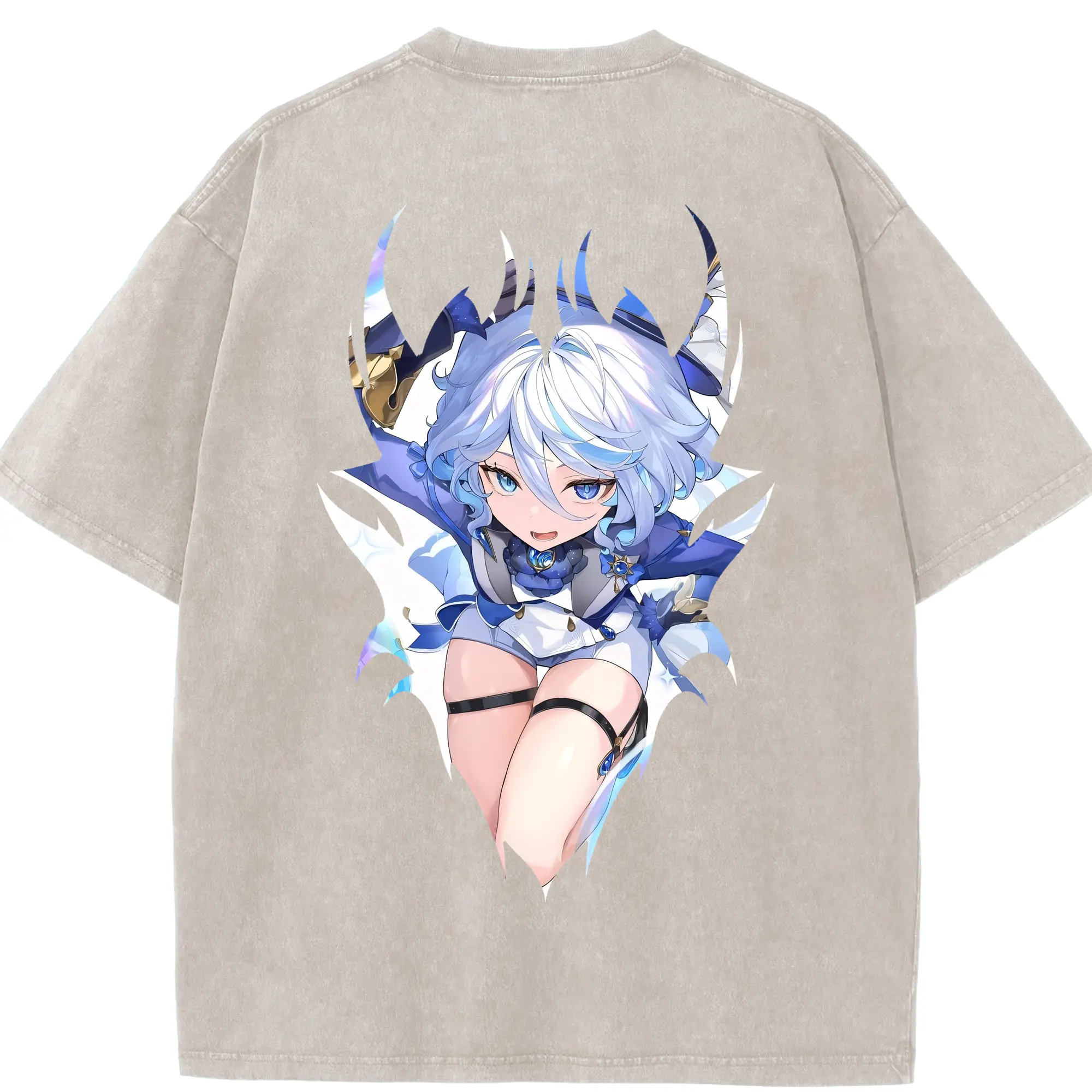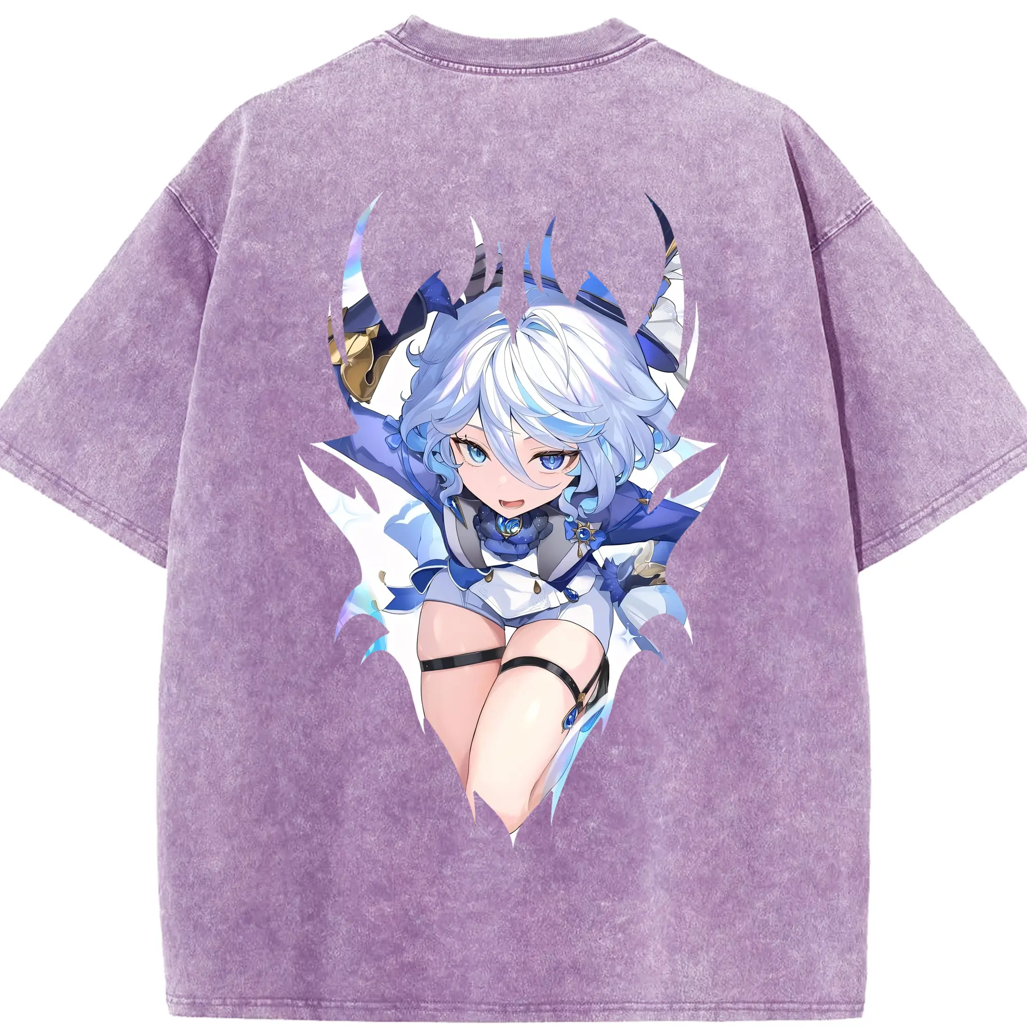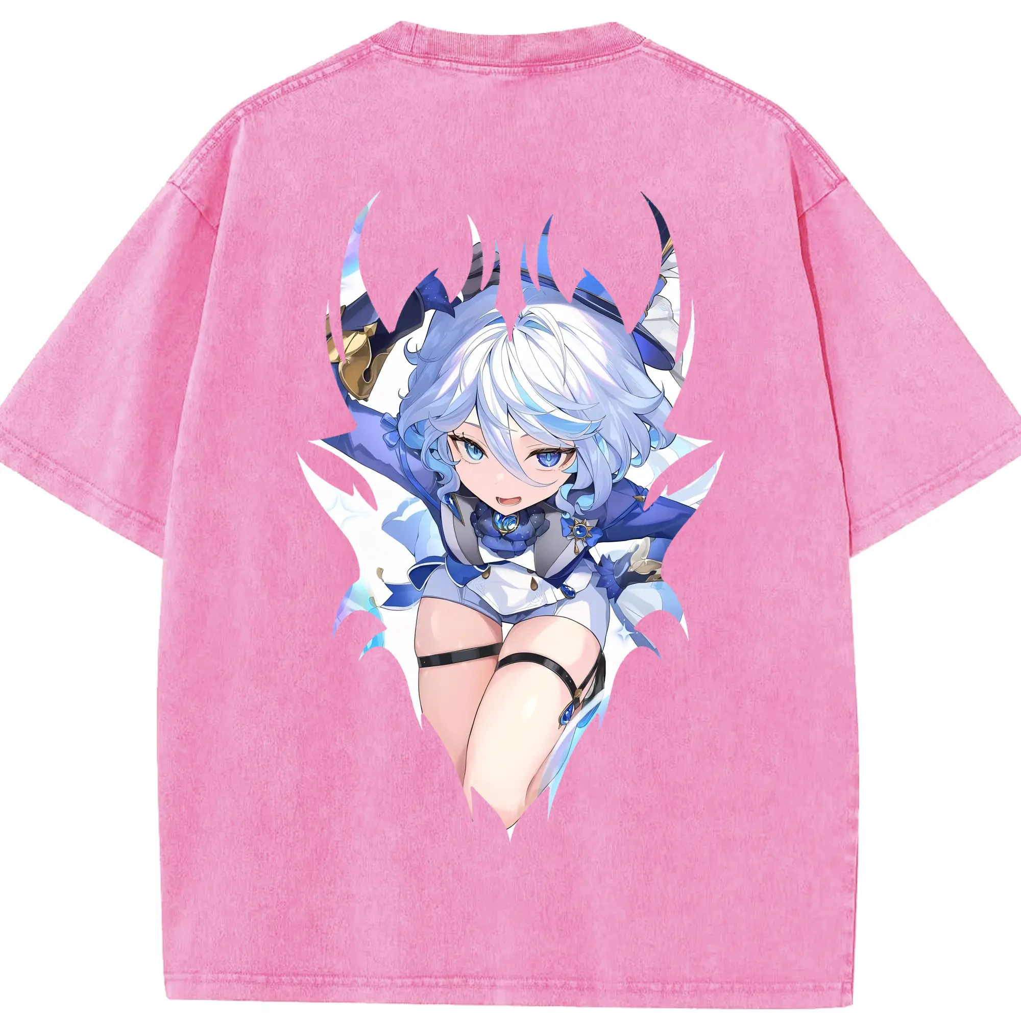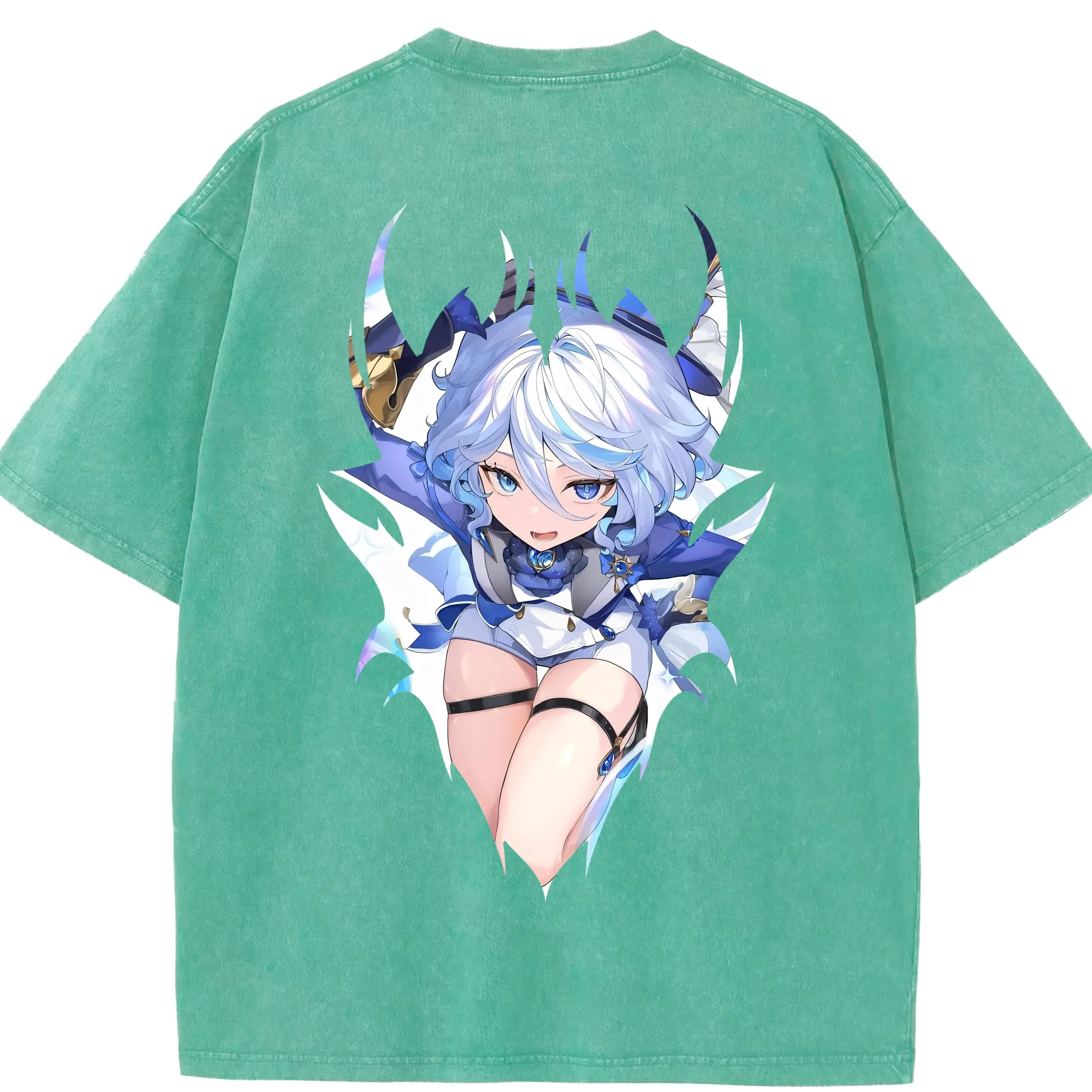 原 神 グッズ フリーナ - 綿100% ヴィンテージ風 半袖Tシャツ ・ フロントプリント ・ 柔らか肌触り ・ 通気性 快適 ・ スポーツ カジュアル 外出用