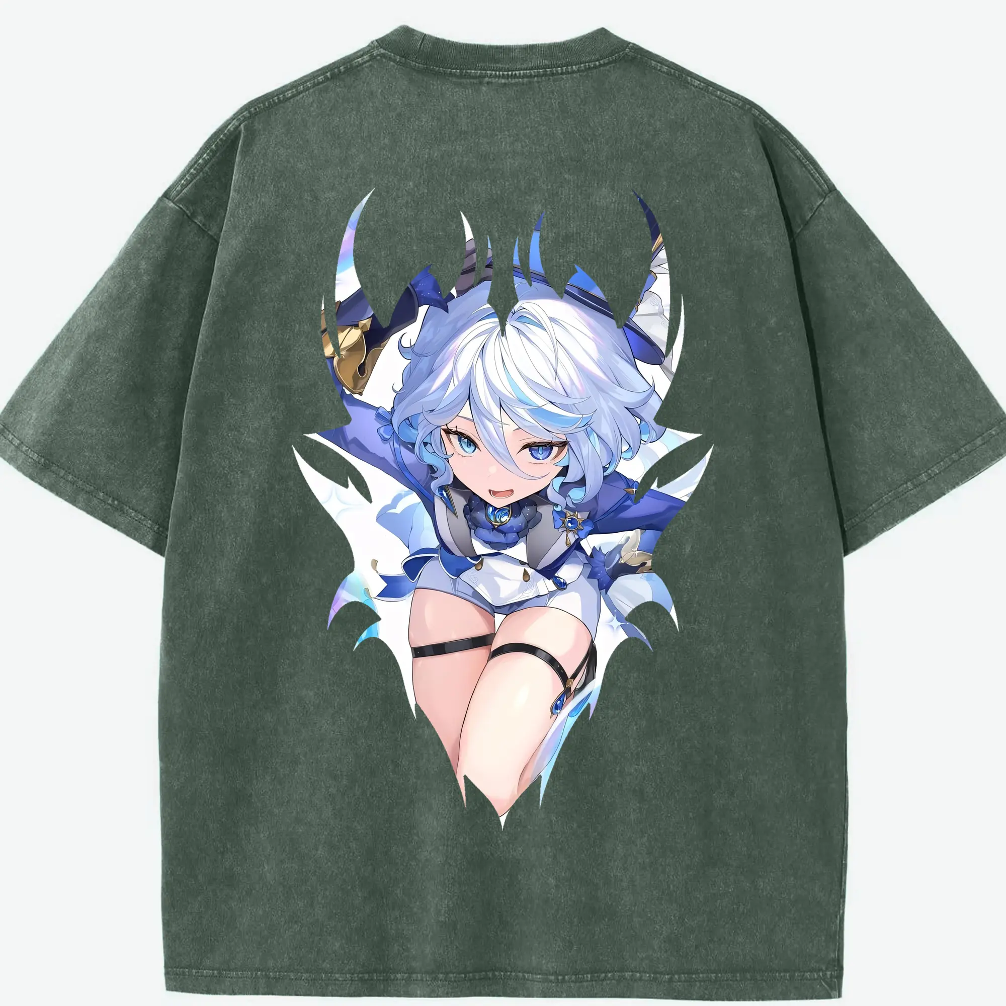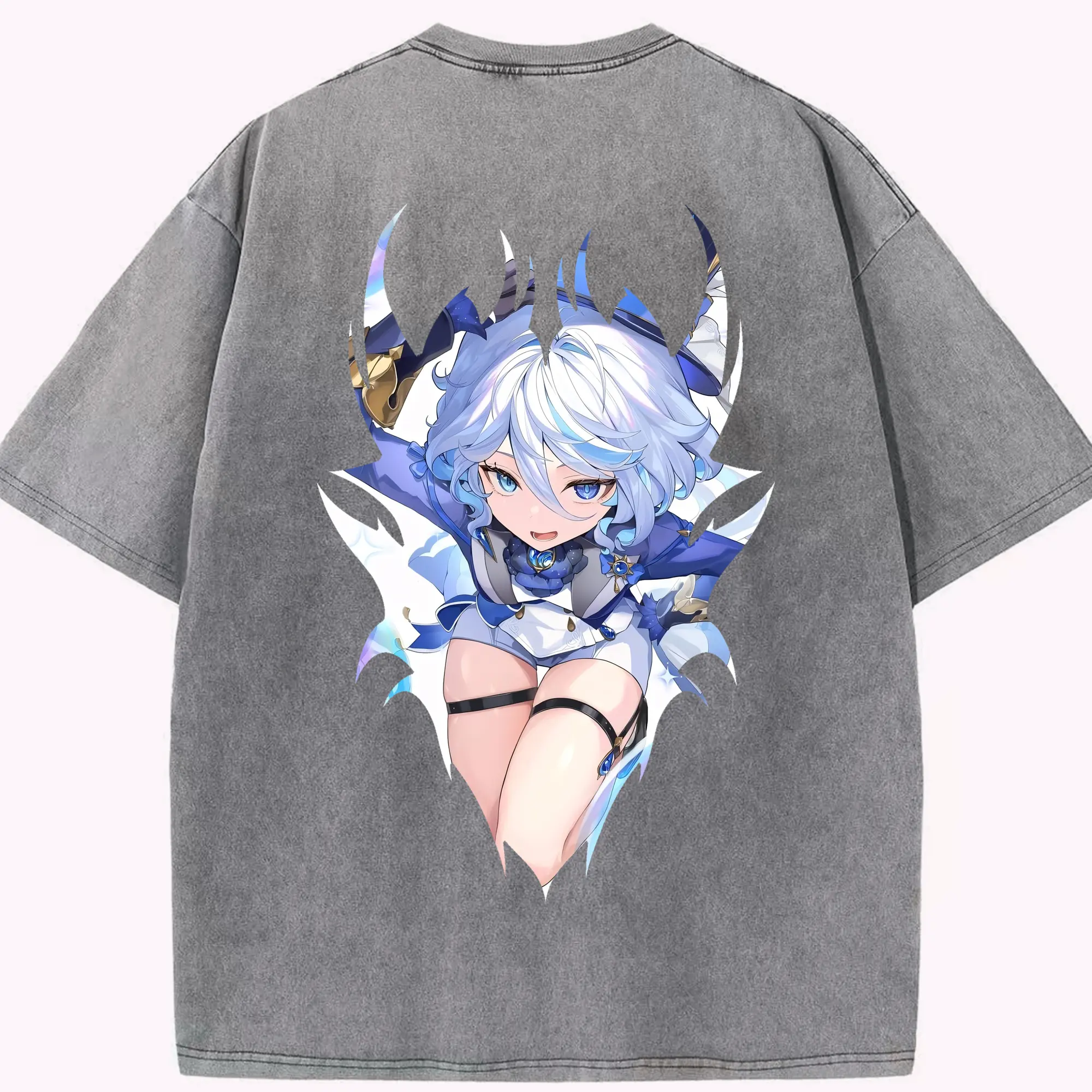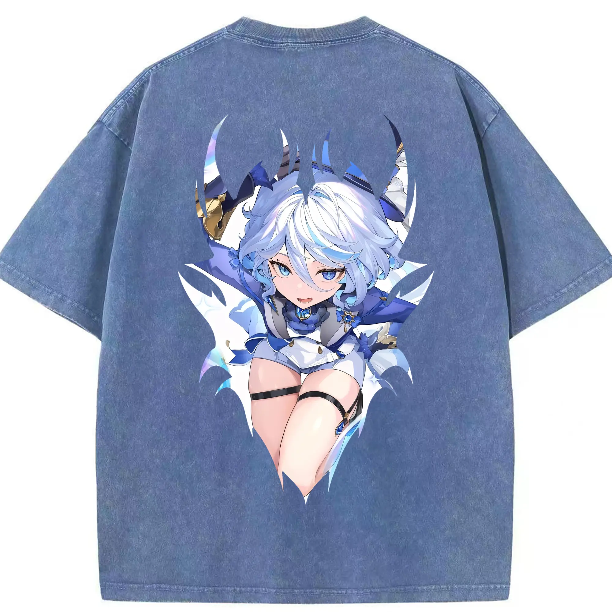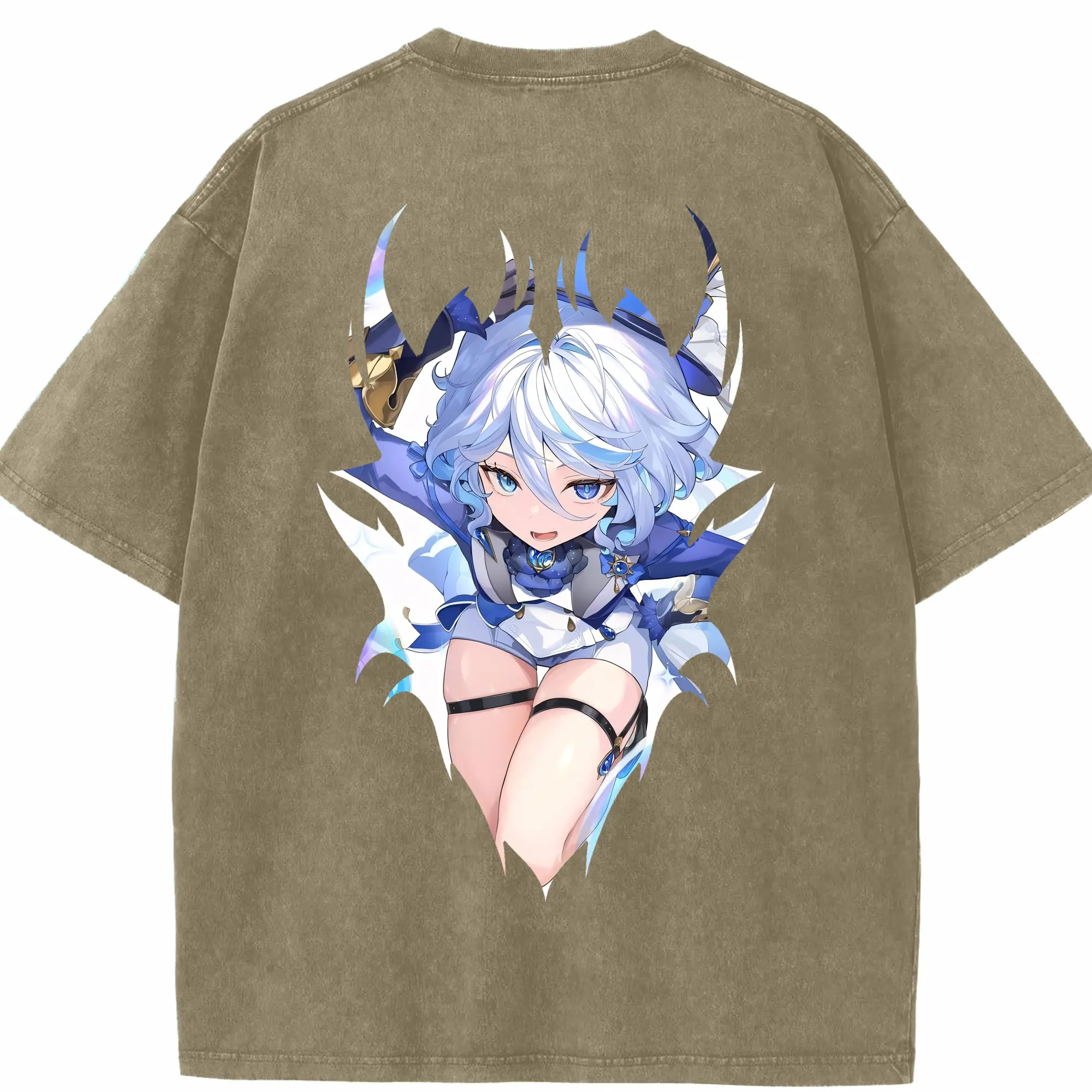 原 神 グッズ フリーナ - 綿100% ヴィンテージ風 半袖Tシャツ ・ フロントプリント ・ 柔らか肌触り ・ 通気性 快適 ・ スポーツ カジュアル 外出用