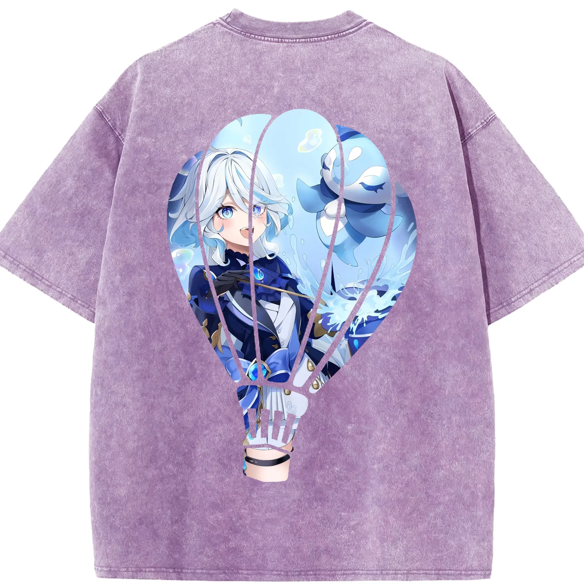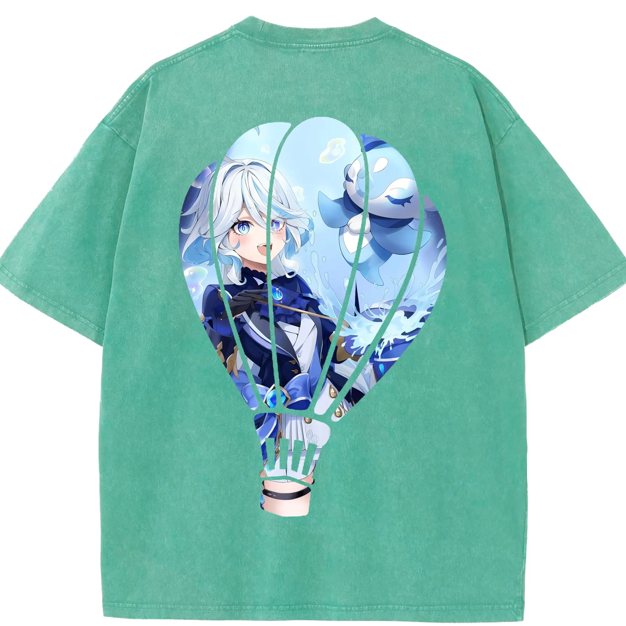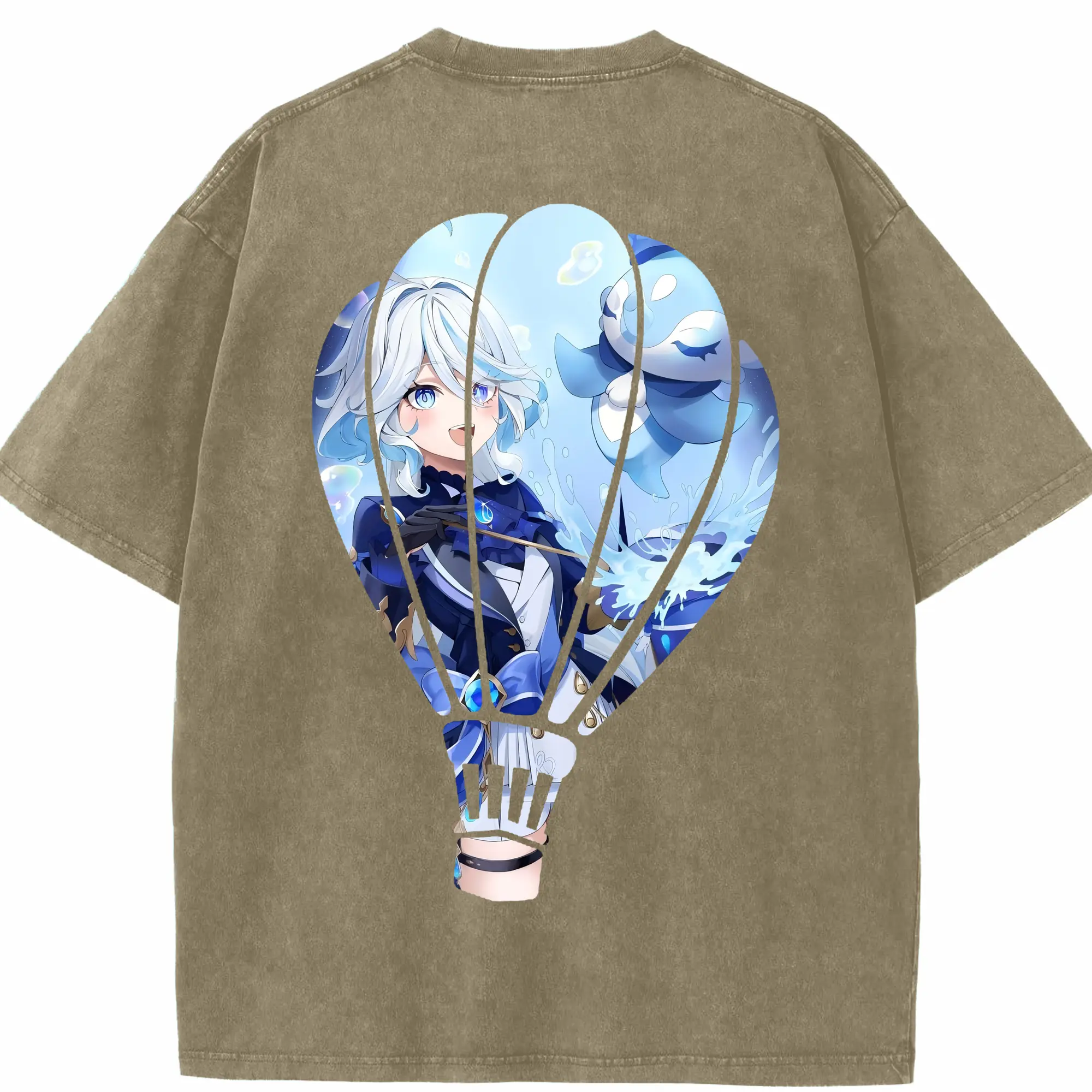 原 神 グッズ フリーナ - 綿100% ヴィンテージ風 半袖Tシャツ ・ フロントプリント ・ 柔らか肌触り ・ 通気性 快適 ・ スポーツ カジュアル 外出用