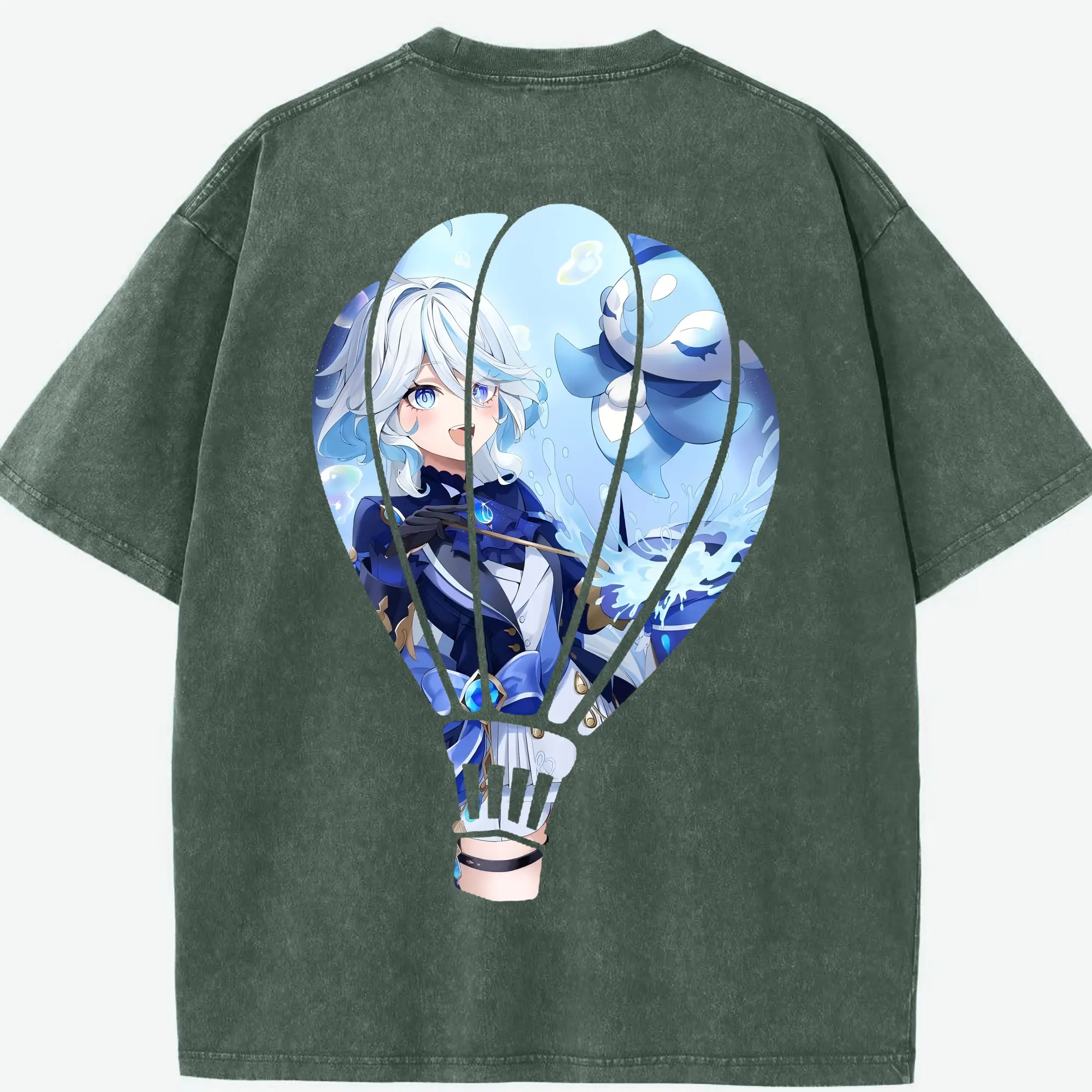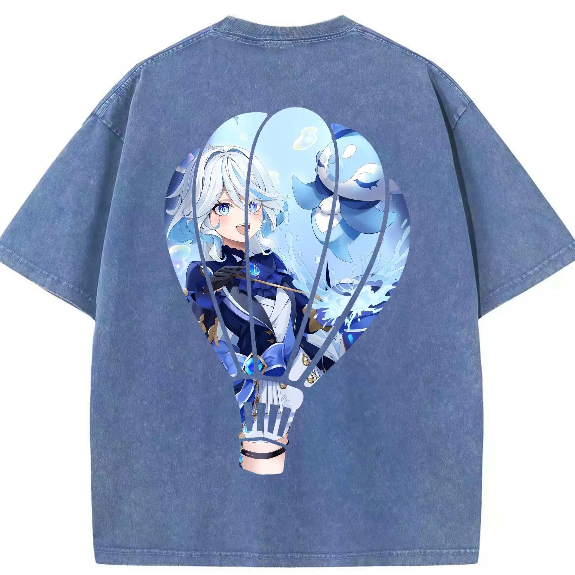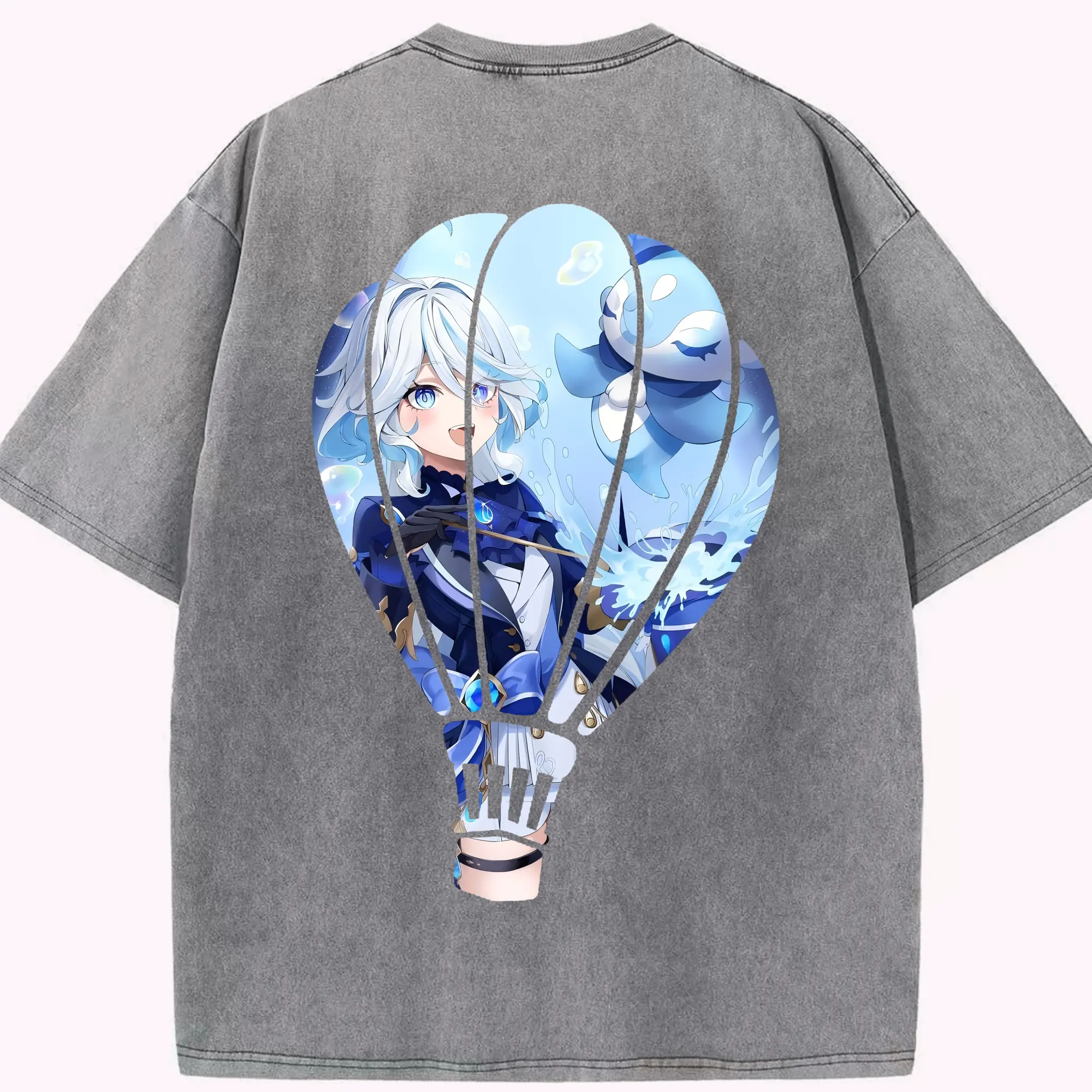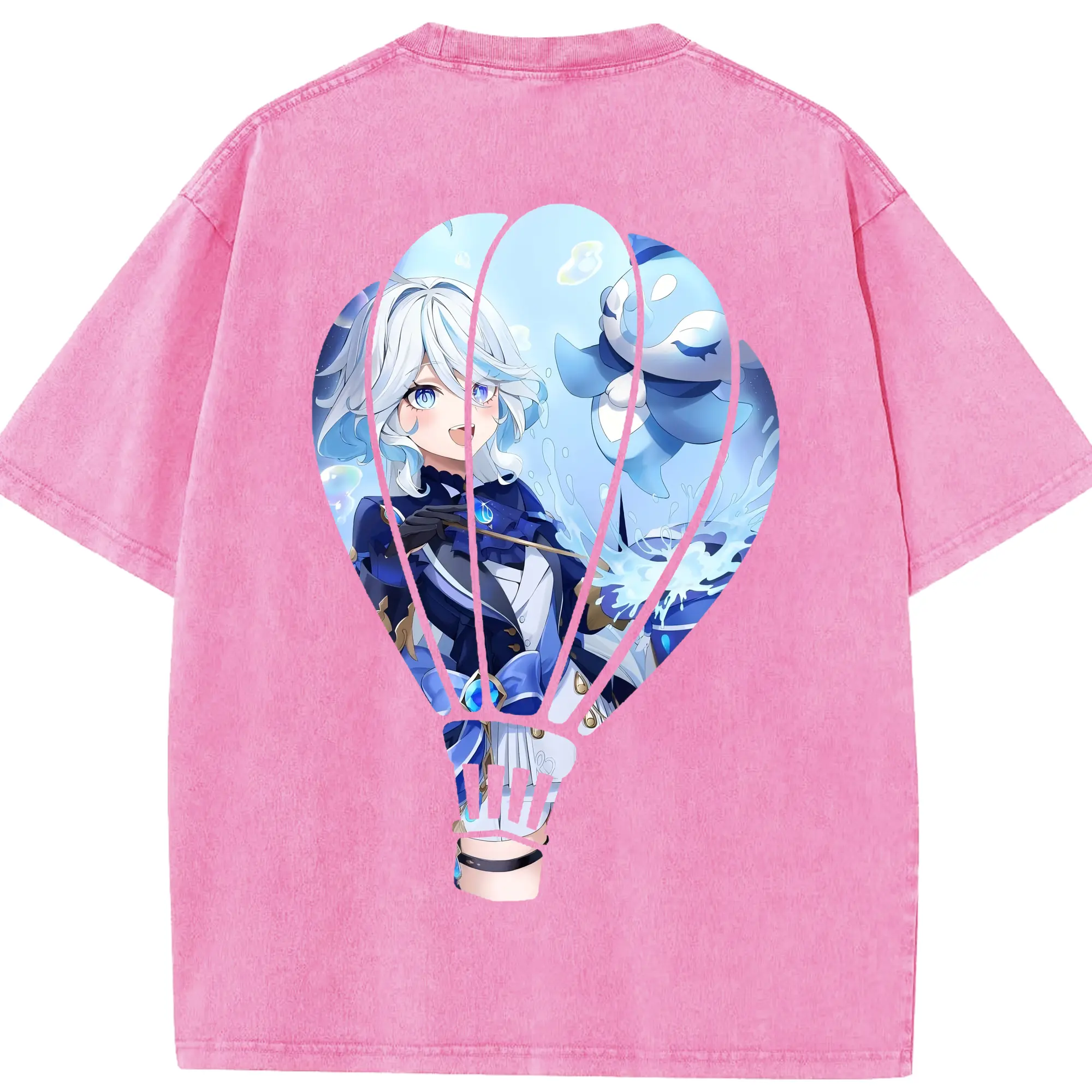 原 神 グッズ フリーナ - 綿100% ヴィンテージ風 半袖Tシャツ ・ フロントプリント ・ 柔らか肌触り ・ 通気性 快適 ・ スポーツ カジュアル 外出用