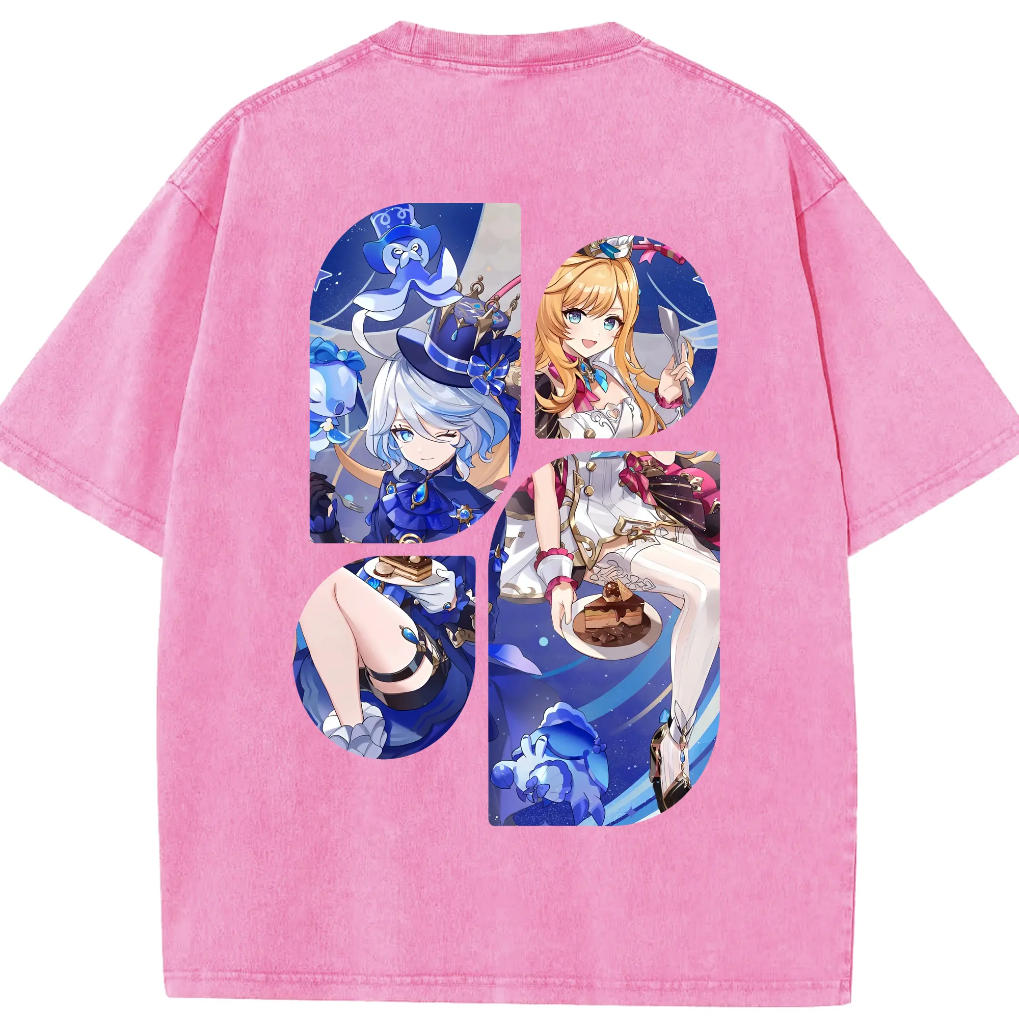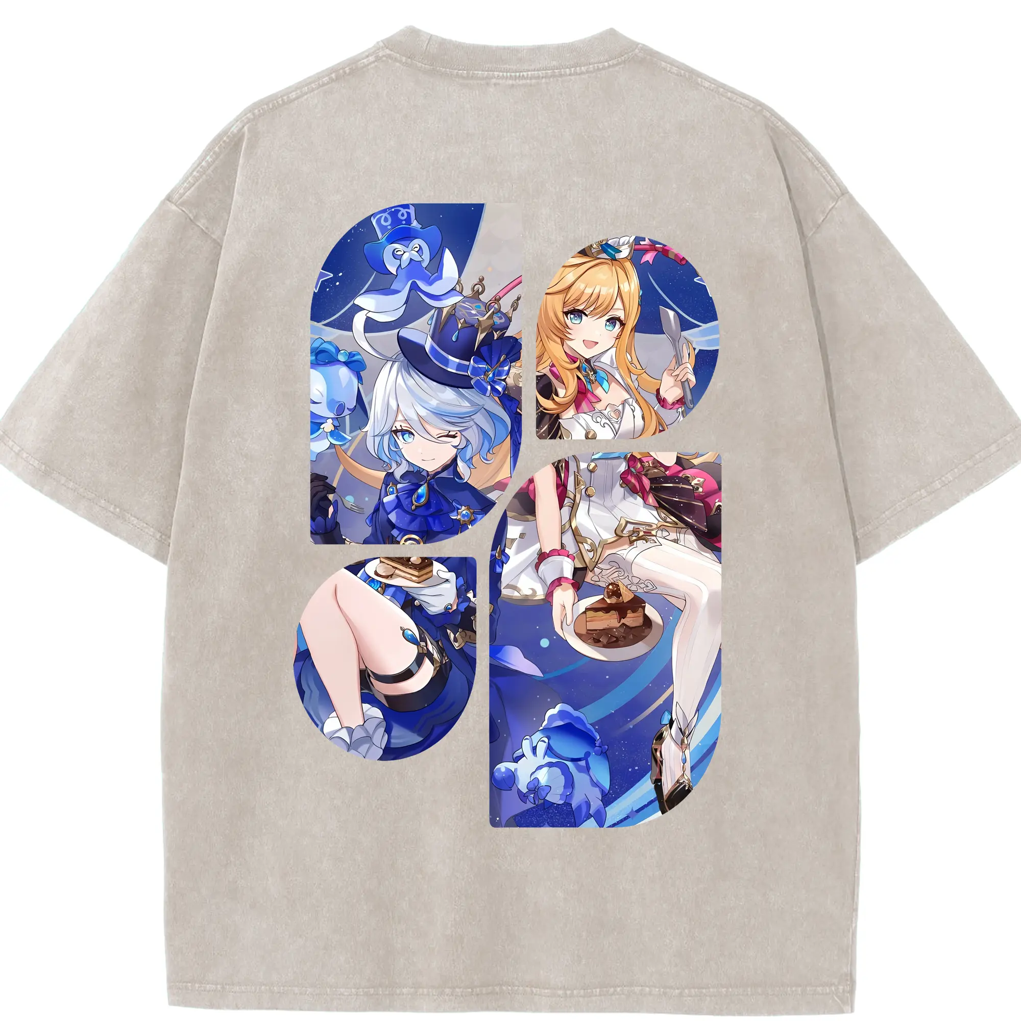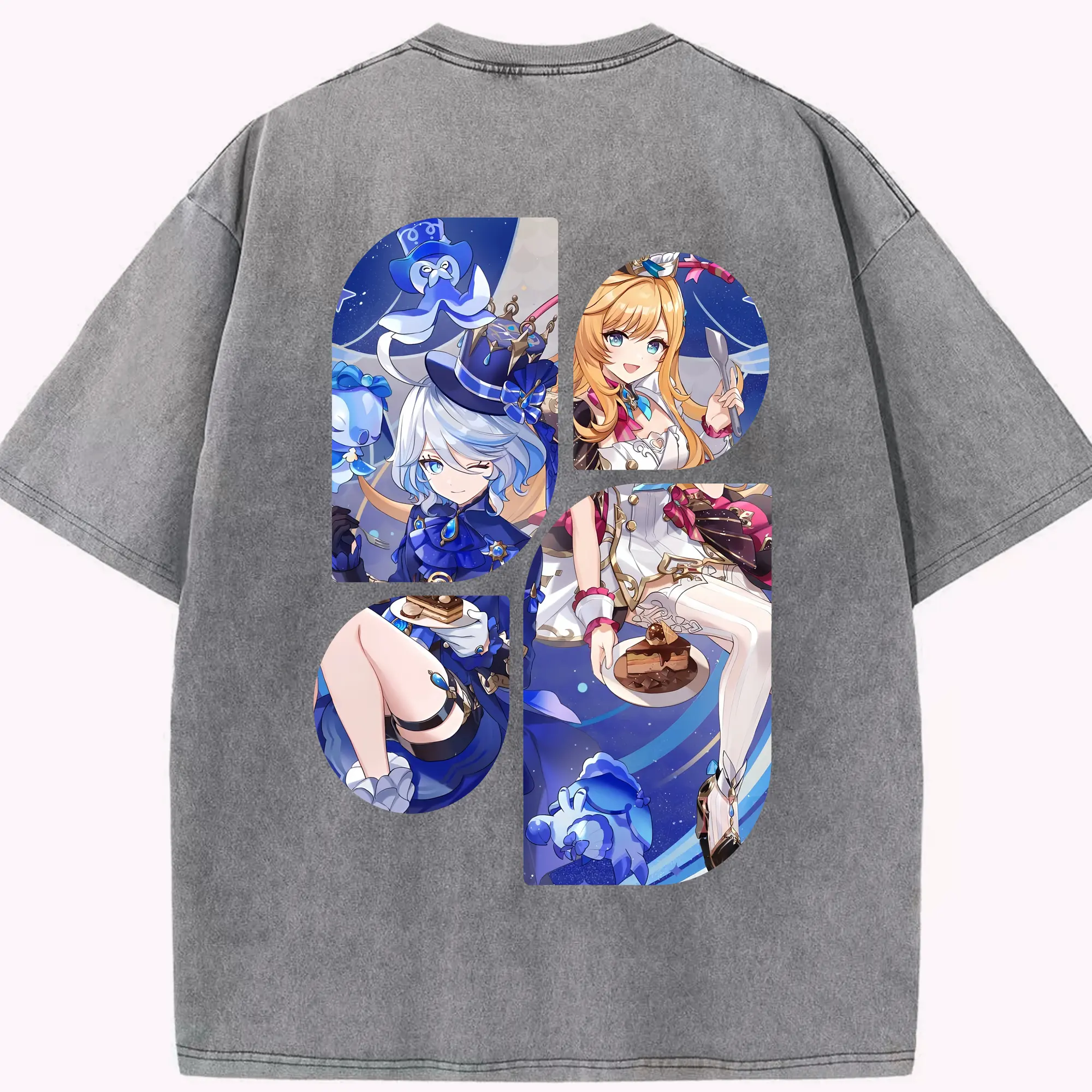 原 神 グッズ フリーナ - 綿100% ヴィンテージ風 半袖Tシャツ ・ 背面プリント ・ 柔らか肌触り ・ 通気性 快適 ・ スポーツ カジュアル 外出用