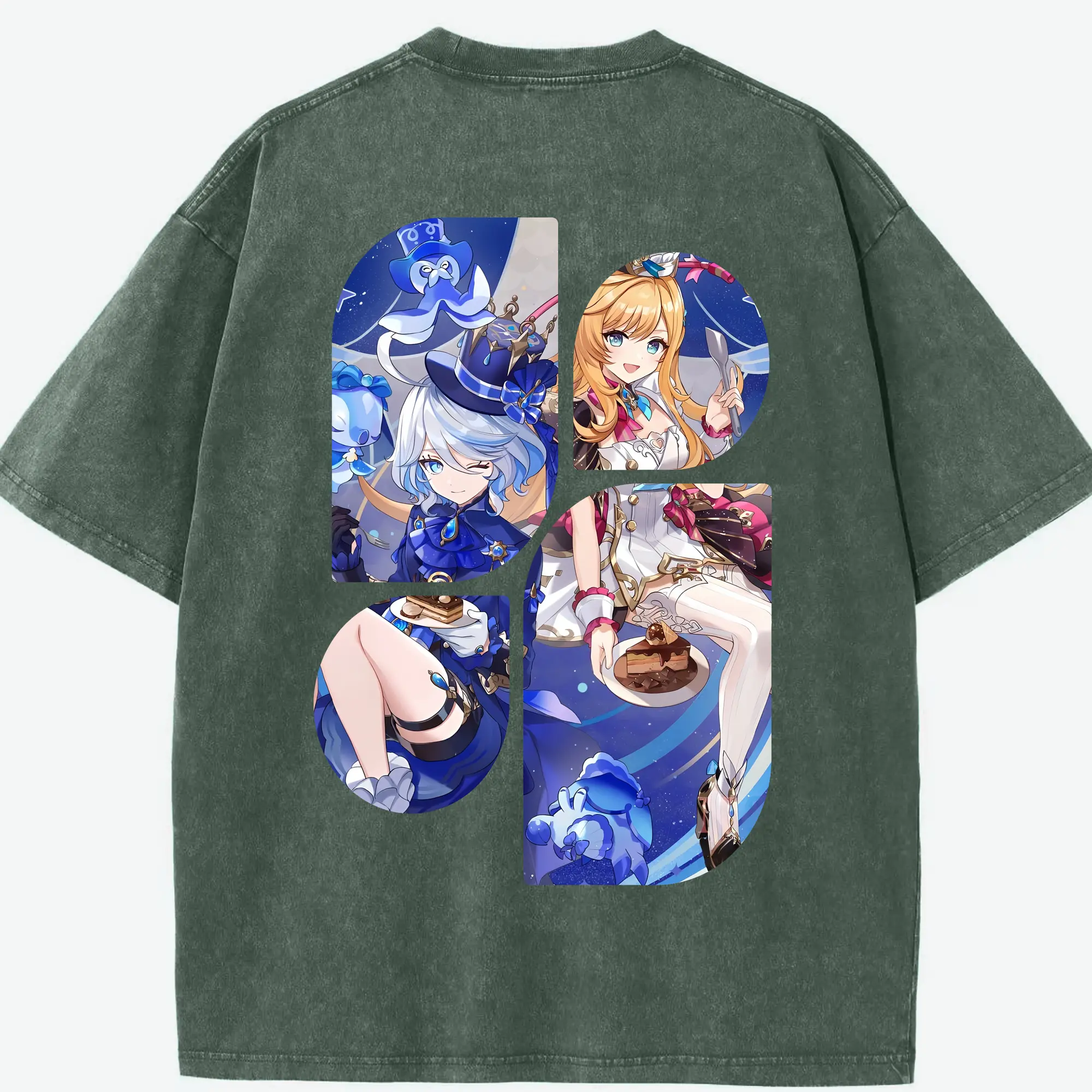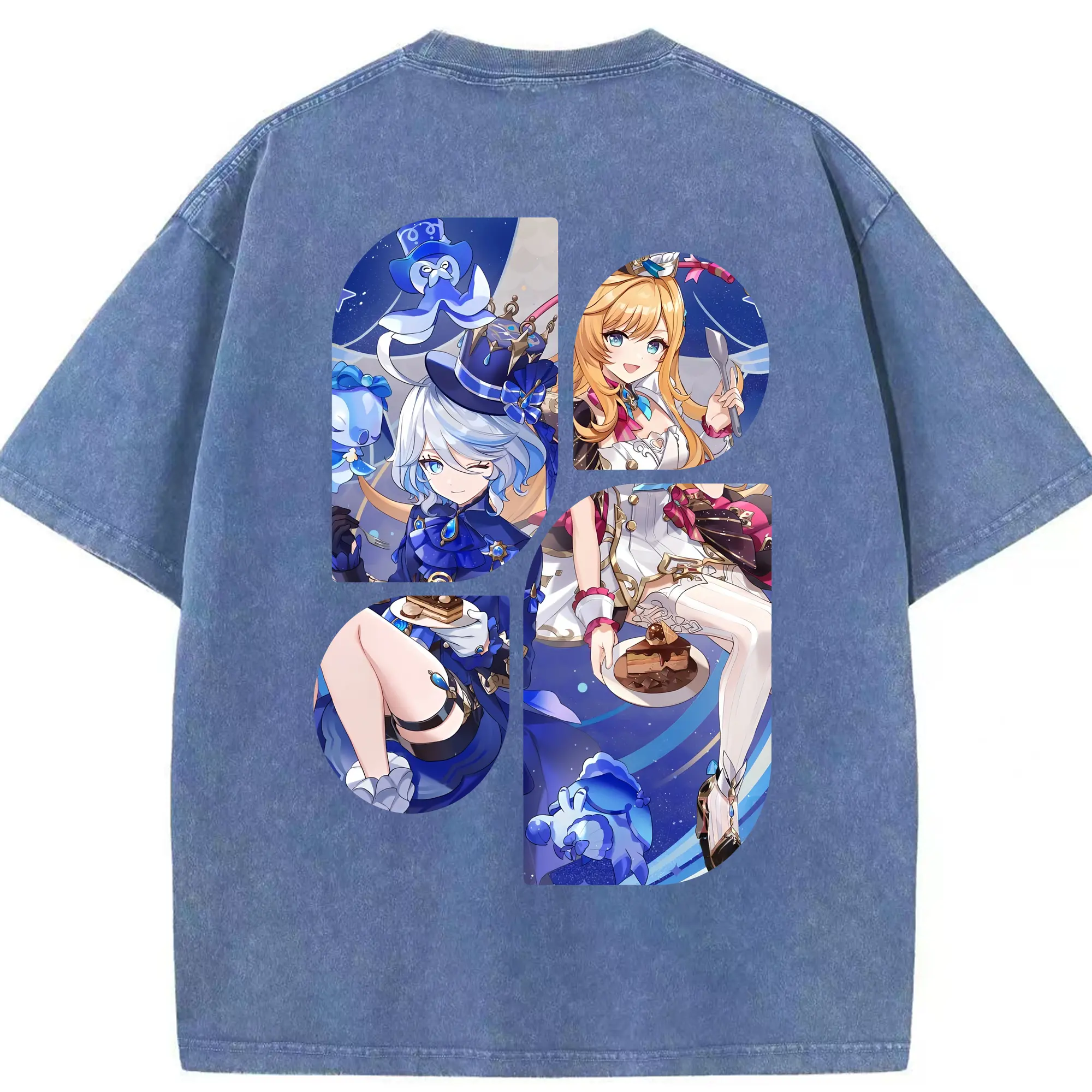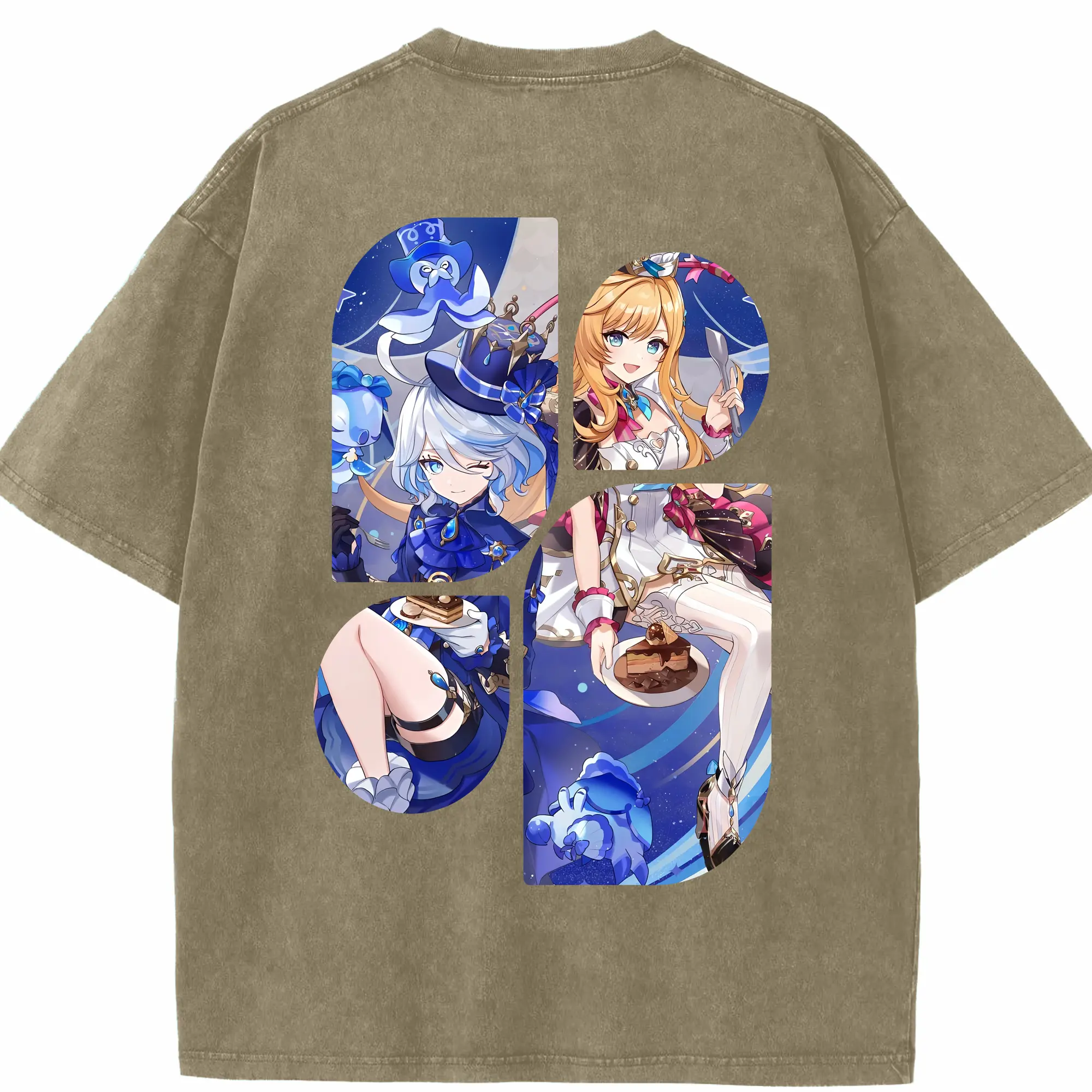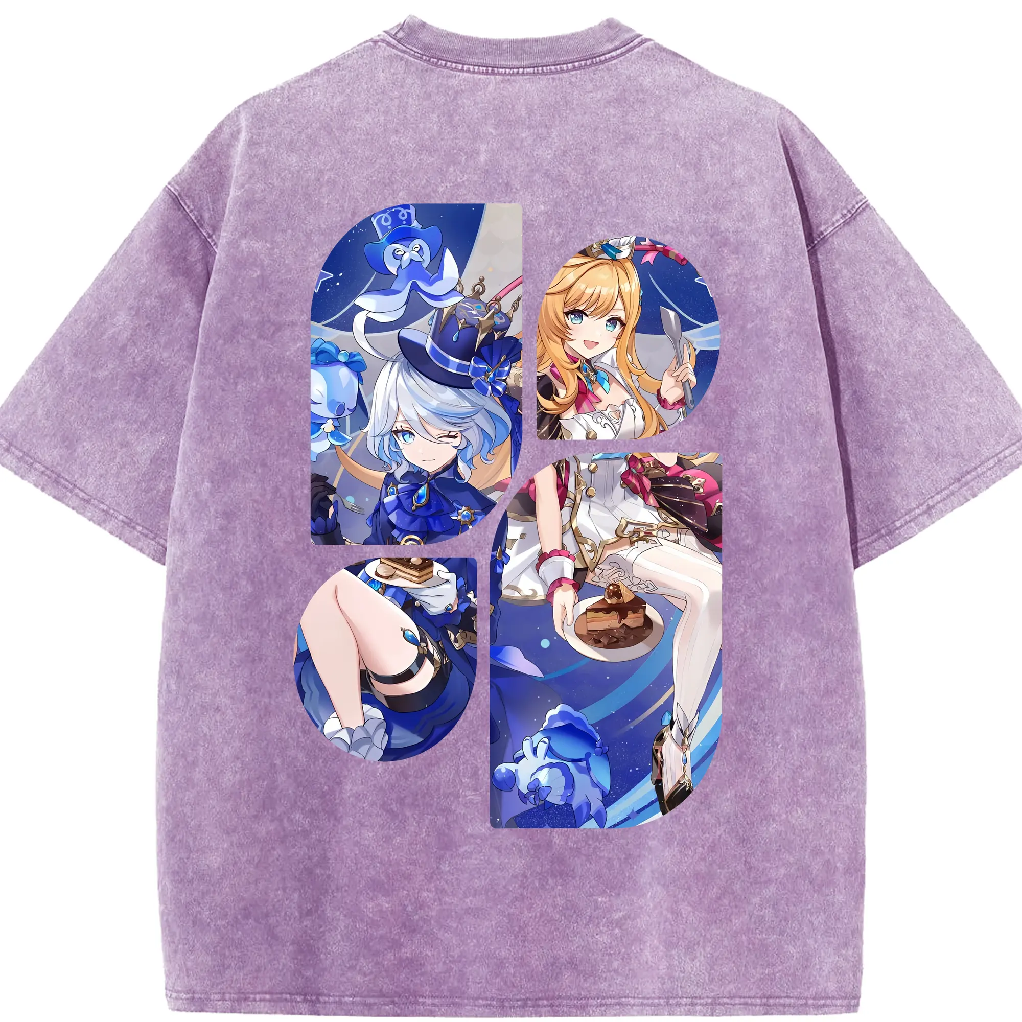 原 神 グッズ フリーナ - 綿100% ヴィンテージ風 半袖Tシャツ ・ 背面プリント ・ 柔らか肌触り ・ 通気性 快適 ・ スポーツ カジュアル 外出用