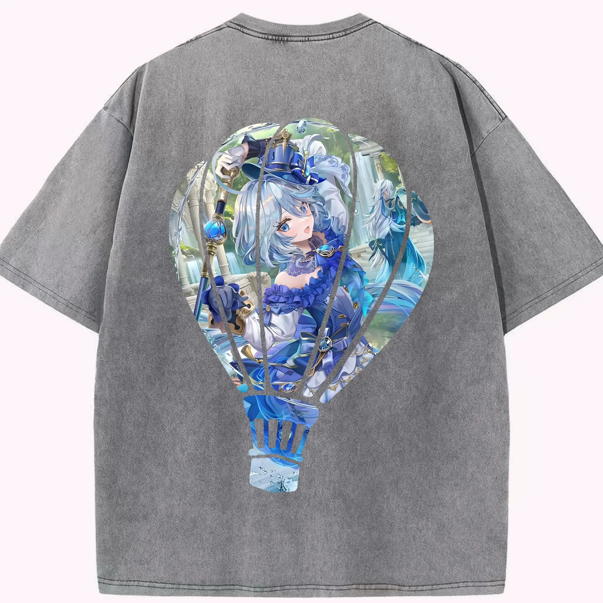 原 神 グッズ フリーナ - 綿100% ヴィンテージ風 半袖Tシャツ ・ フロントプリント ・ 柔らか肌触り ・ 通気性 快適 ・ スポーツ カジュアル 外出用