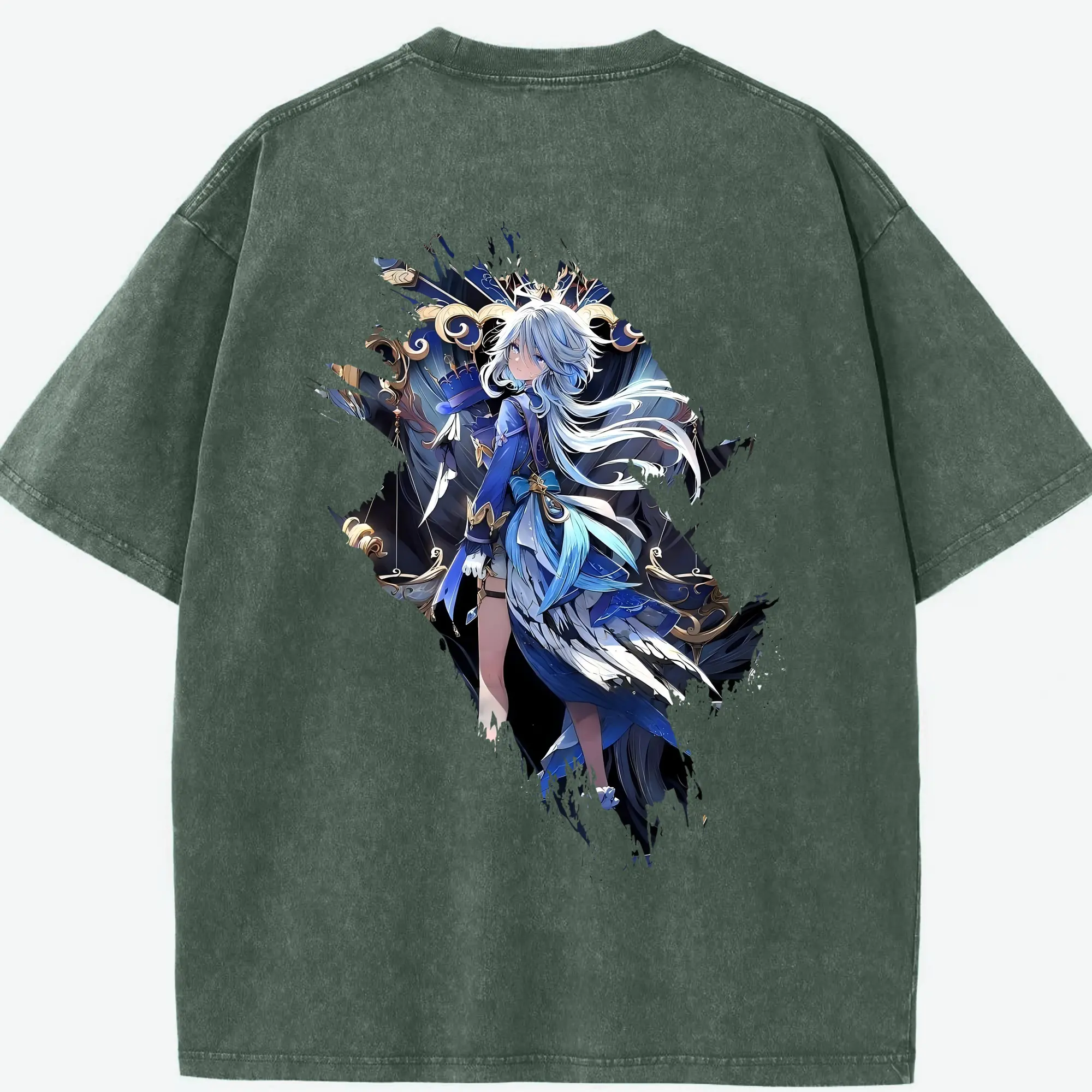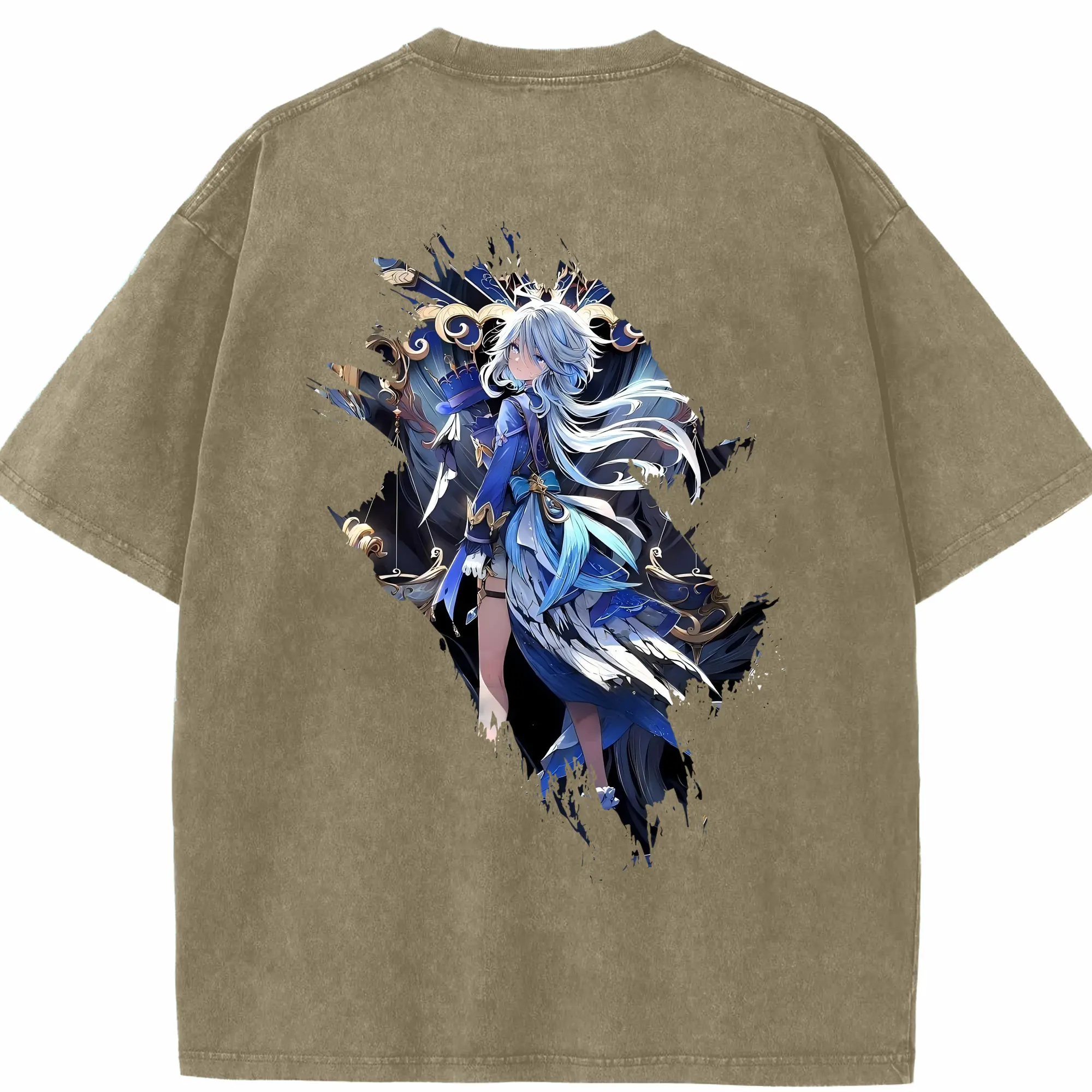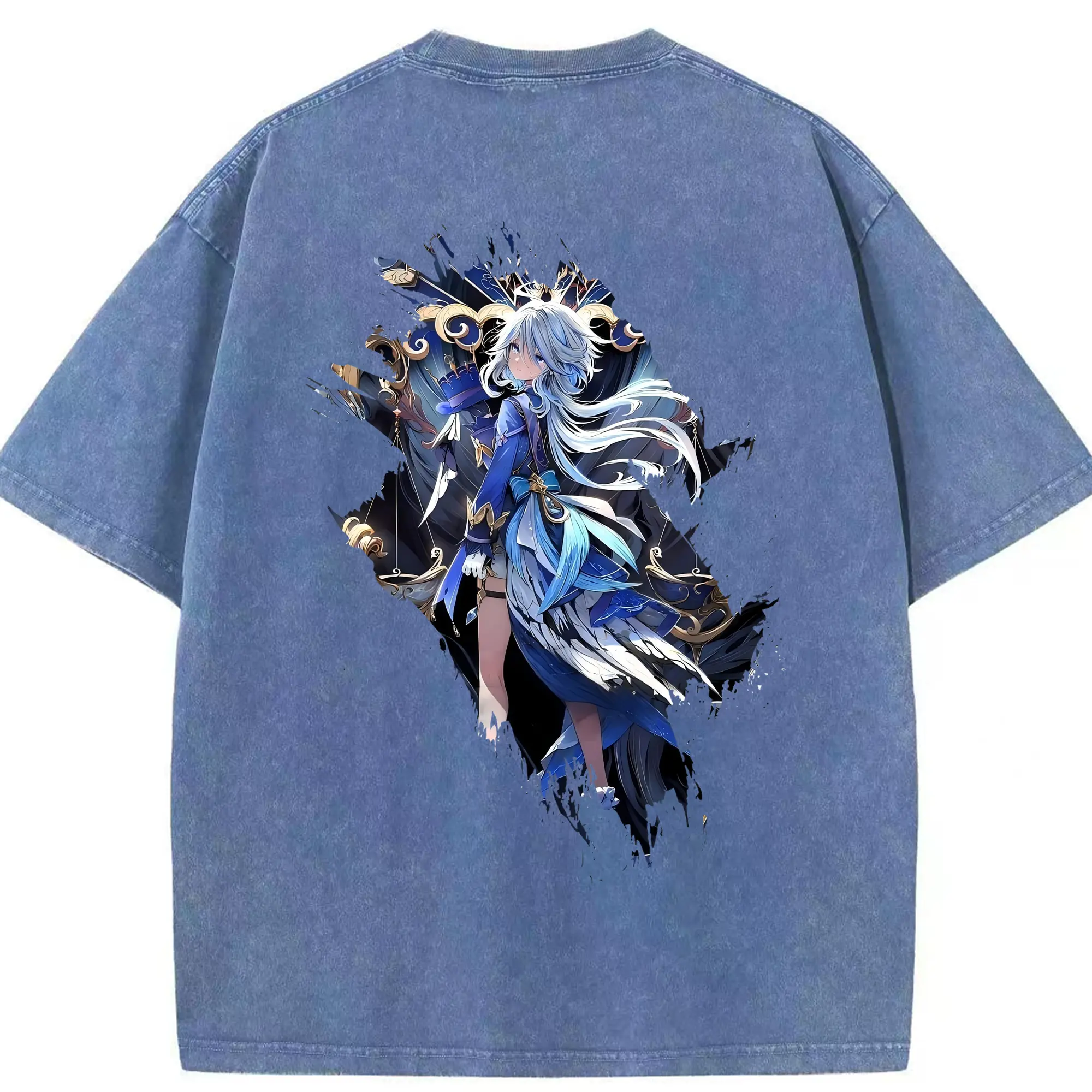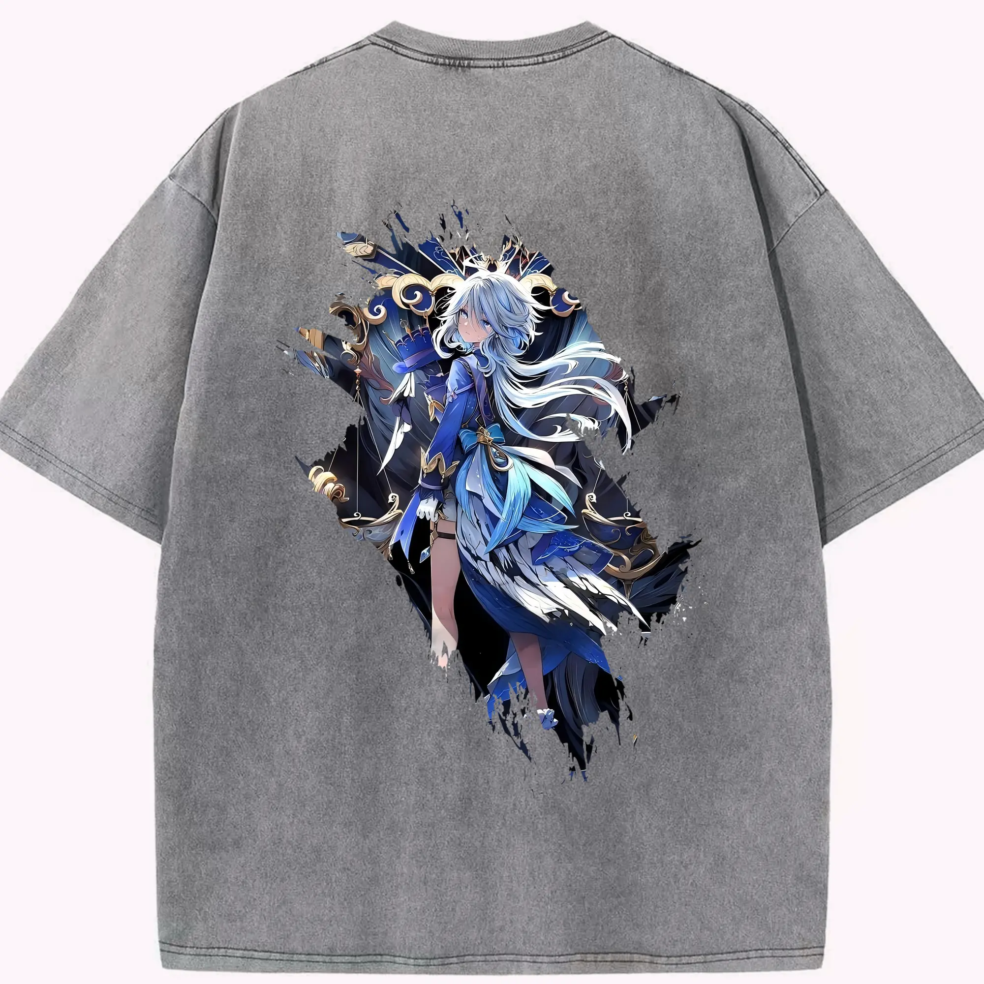 原 神 グッズ フリーナ - 綿100% ヴィンテージ風 半袖Tシャツ ・ フロントプリント ・ 柔らか肌触り ・ 通気性 快適 ・ スポーツ カジュアル 外出用