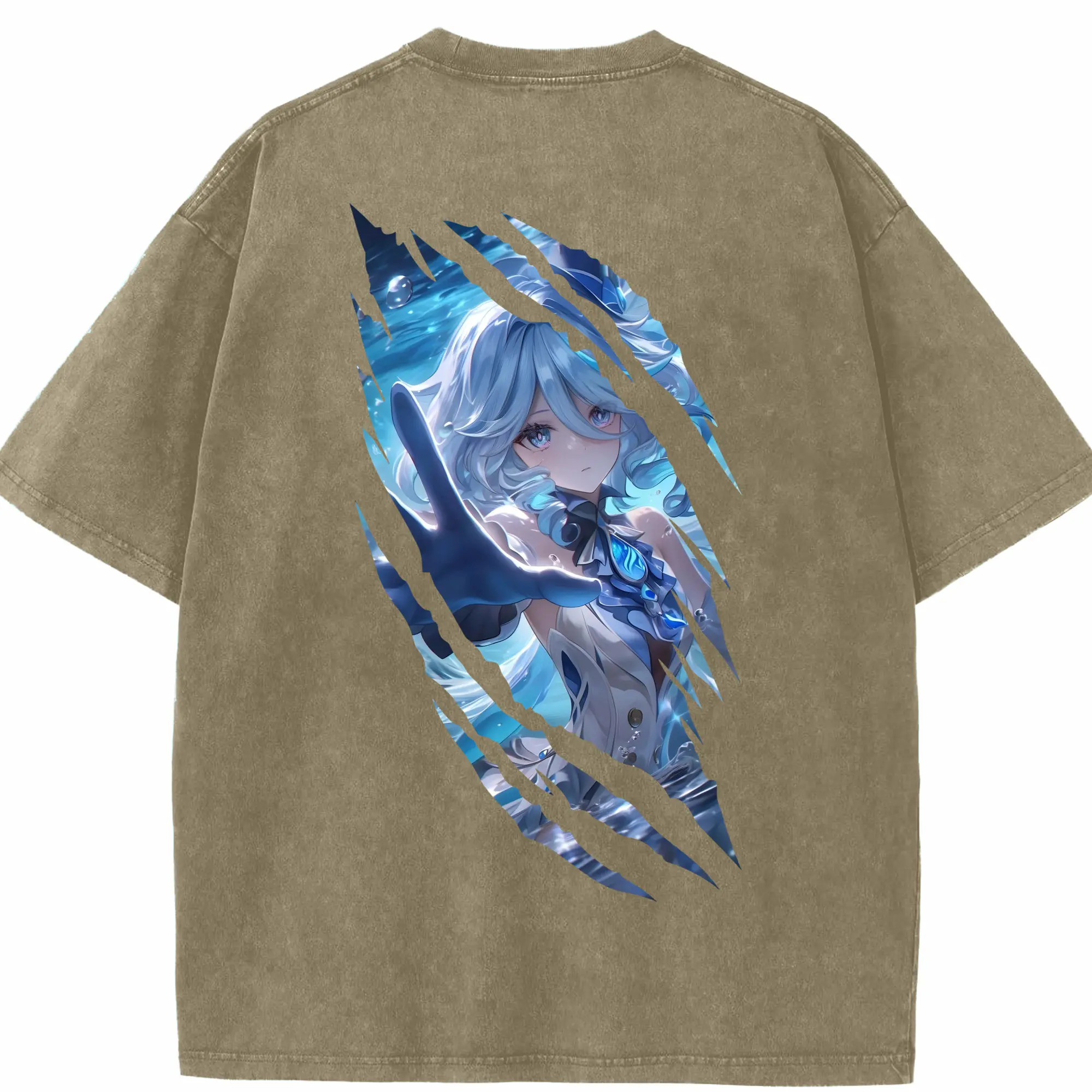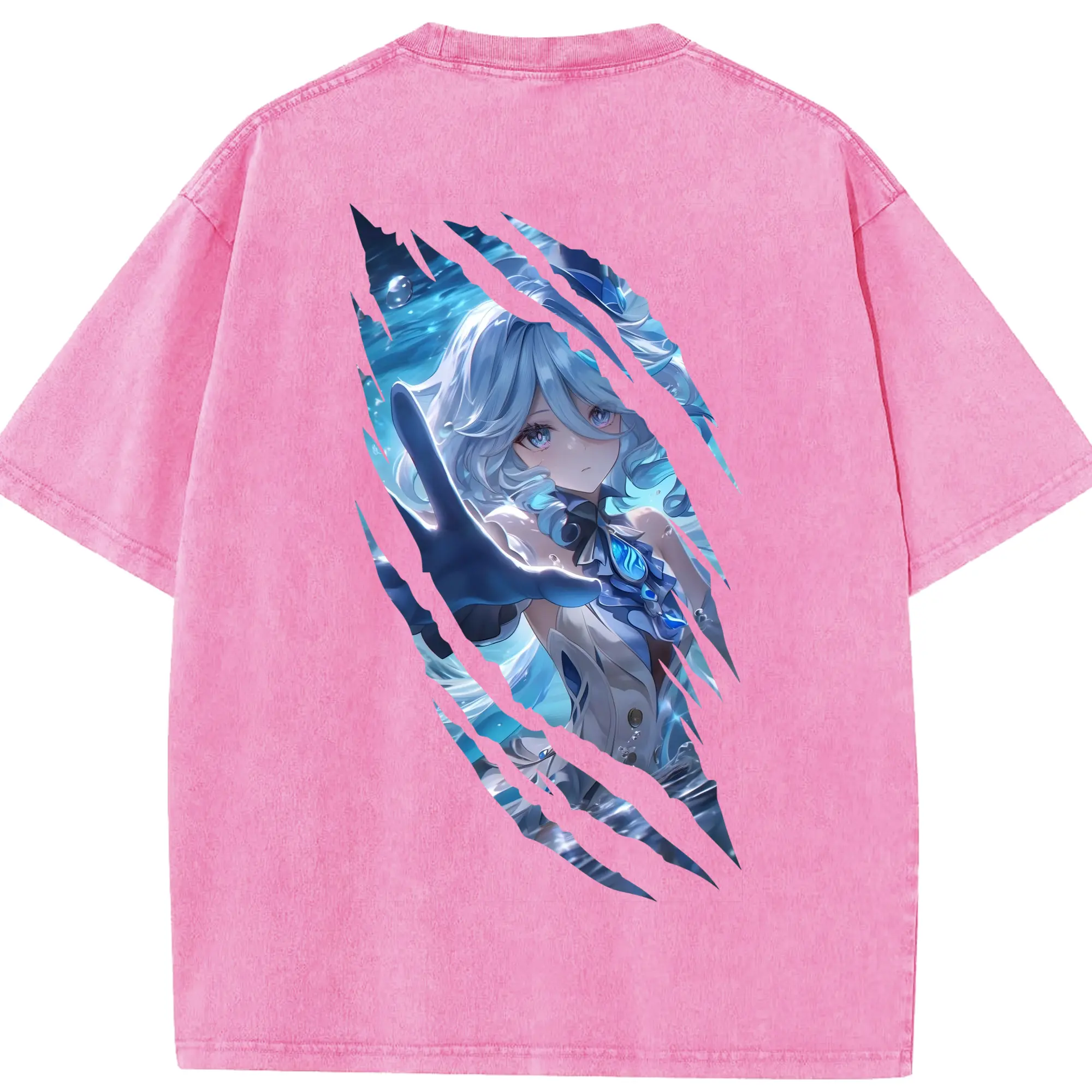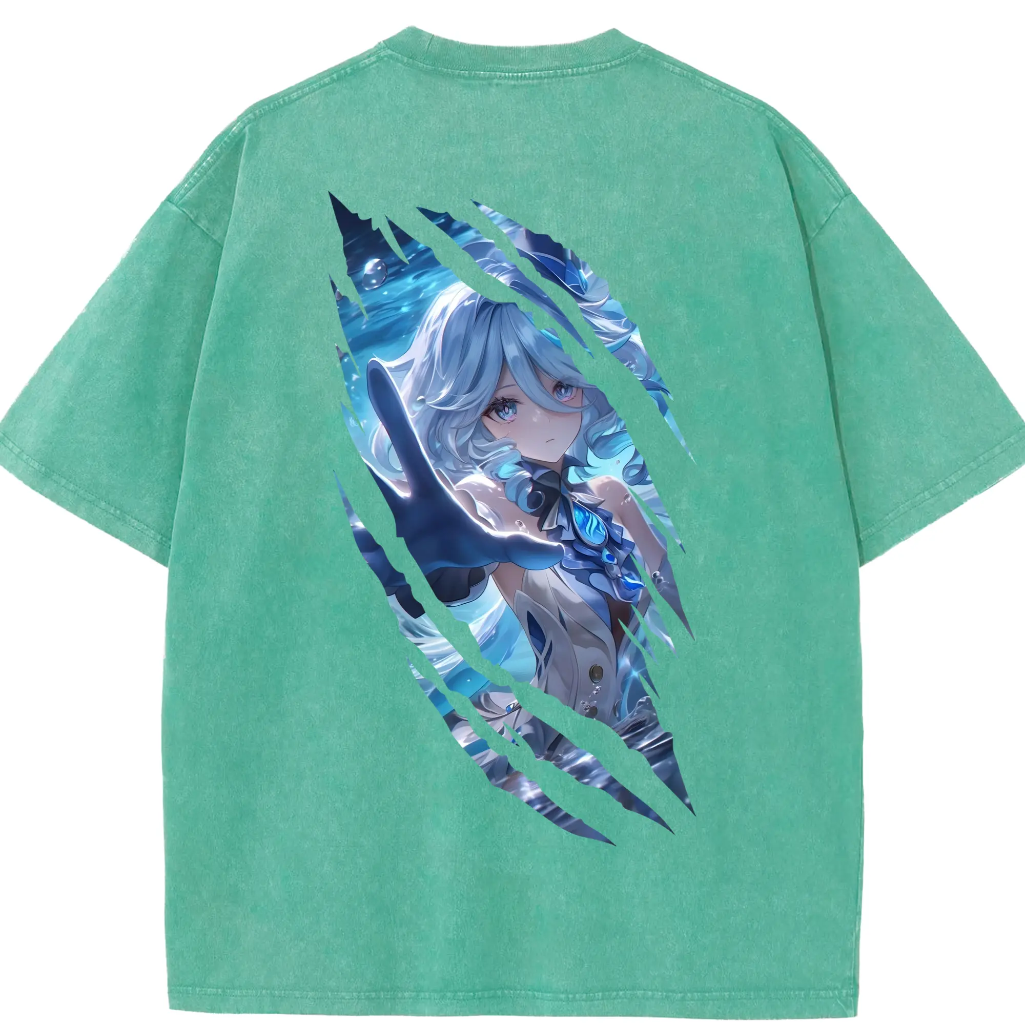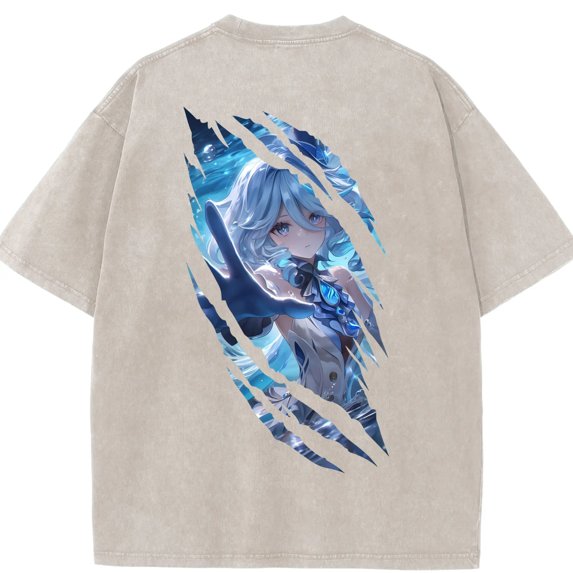 原 神 グッズ フリーナ - 綿100% ヴィンテージ風 半袖Tシャツ ・ フロントプリント ・ 柔らか肌触り ・ 通気性 快適 ・ スポーツ カジュアル 外出用