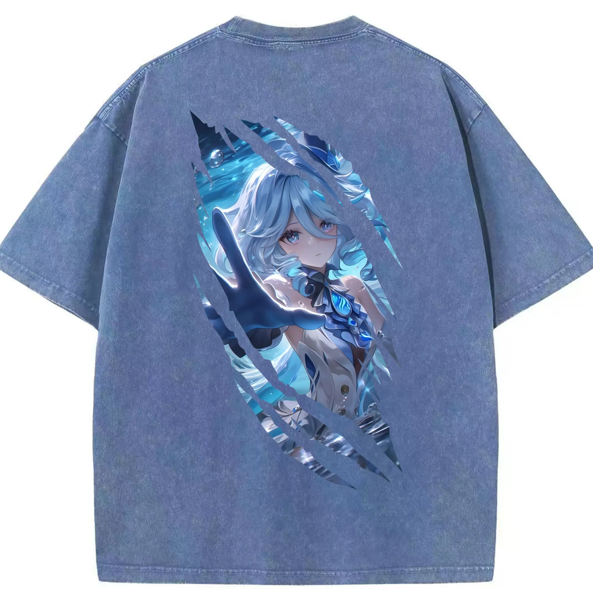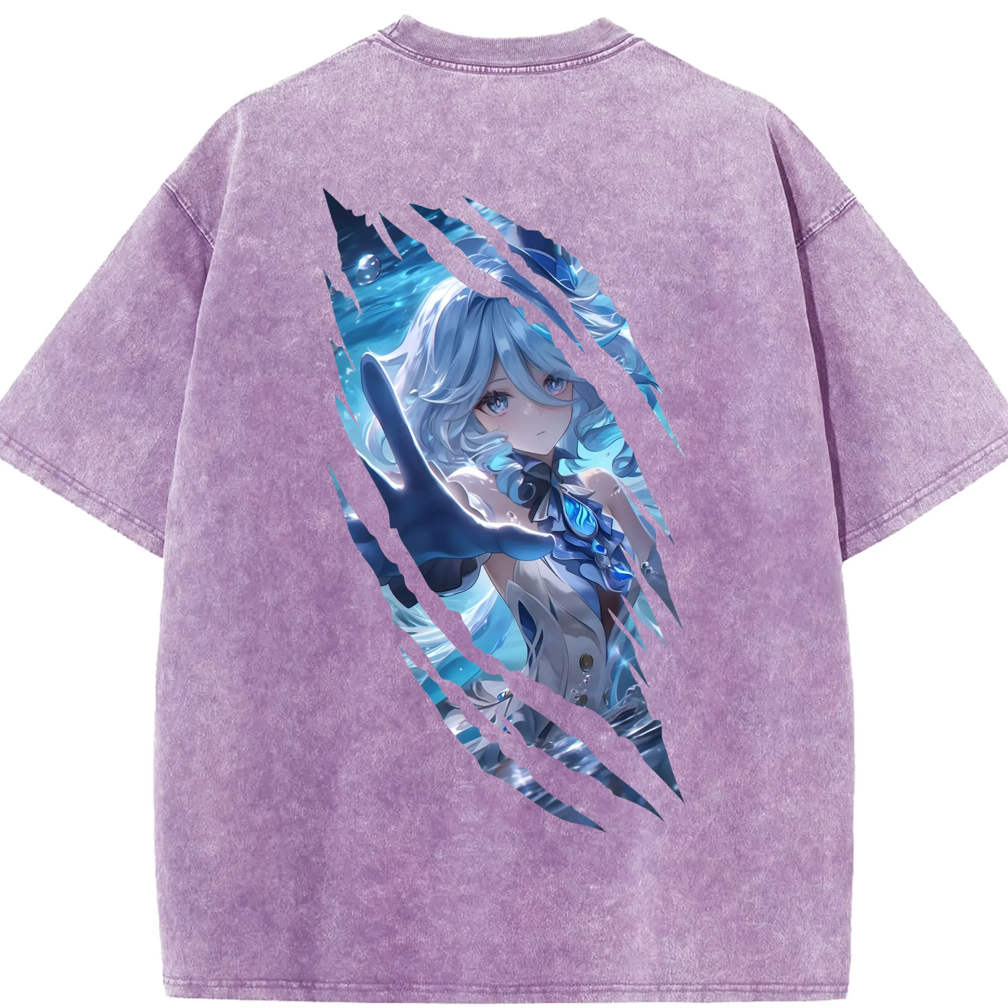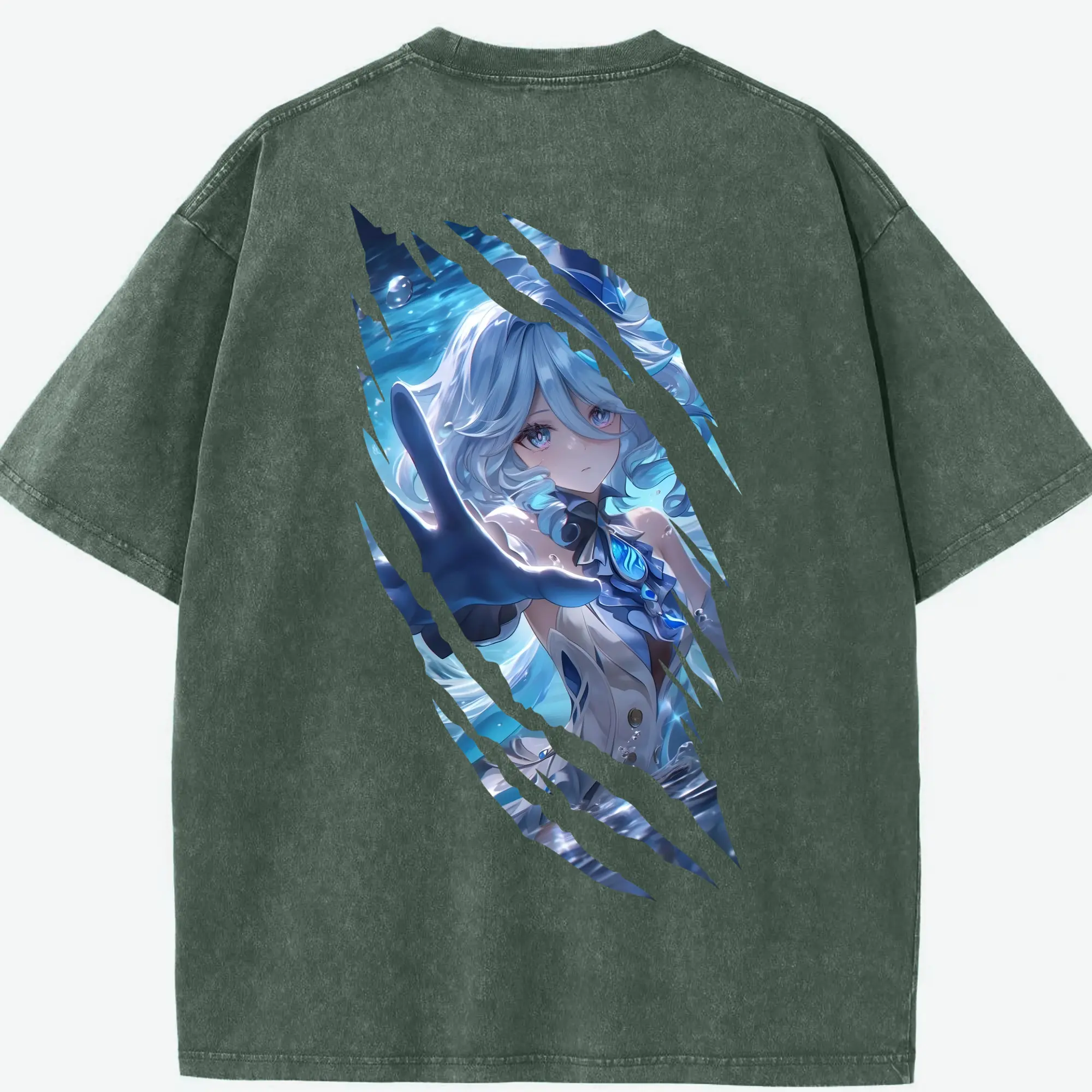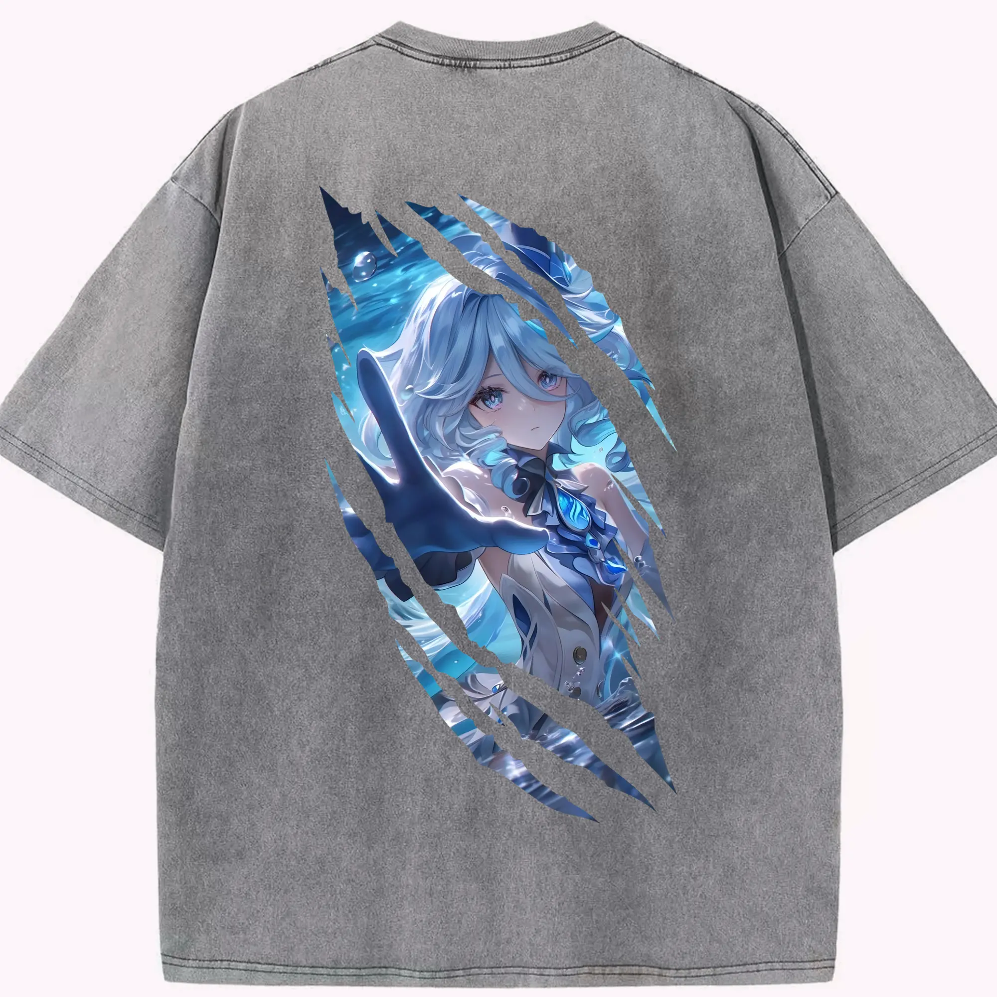 原 神 グッズ フリーナ - 綿100% ヴィンテージ風 半袖Tシャツ ・ フロントプリント ・ 柔らか肌触り ・ 通気性 快適 ・ スポーツ カジュアル 外出用