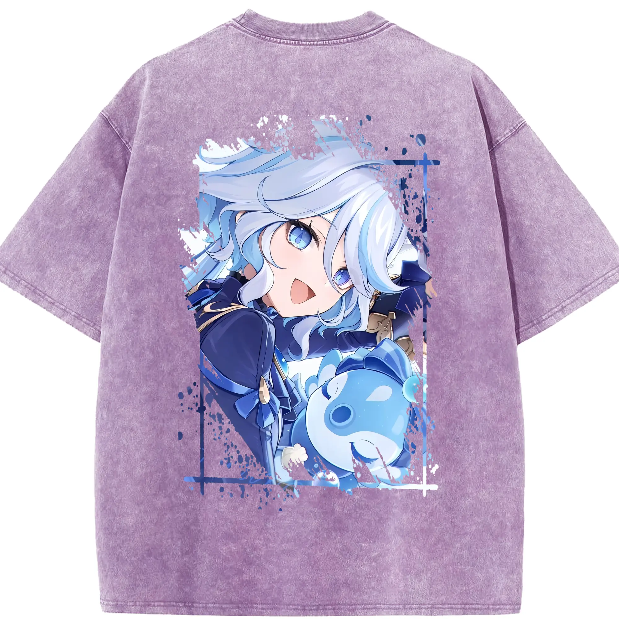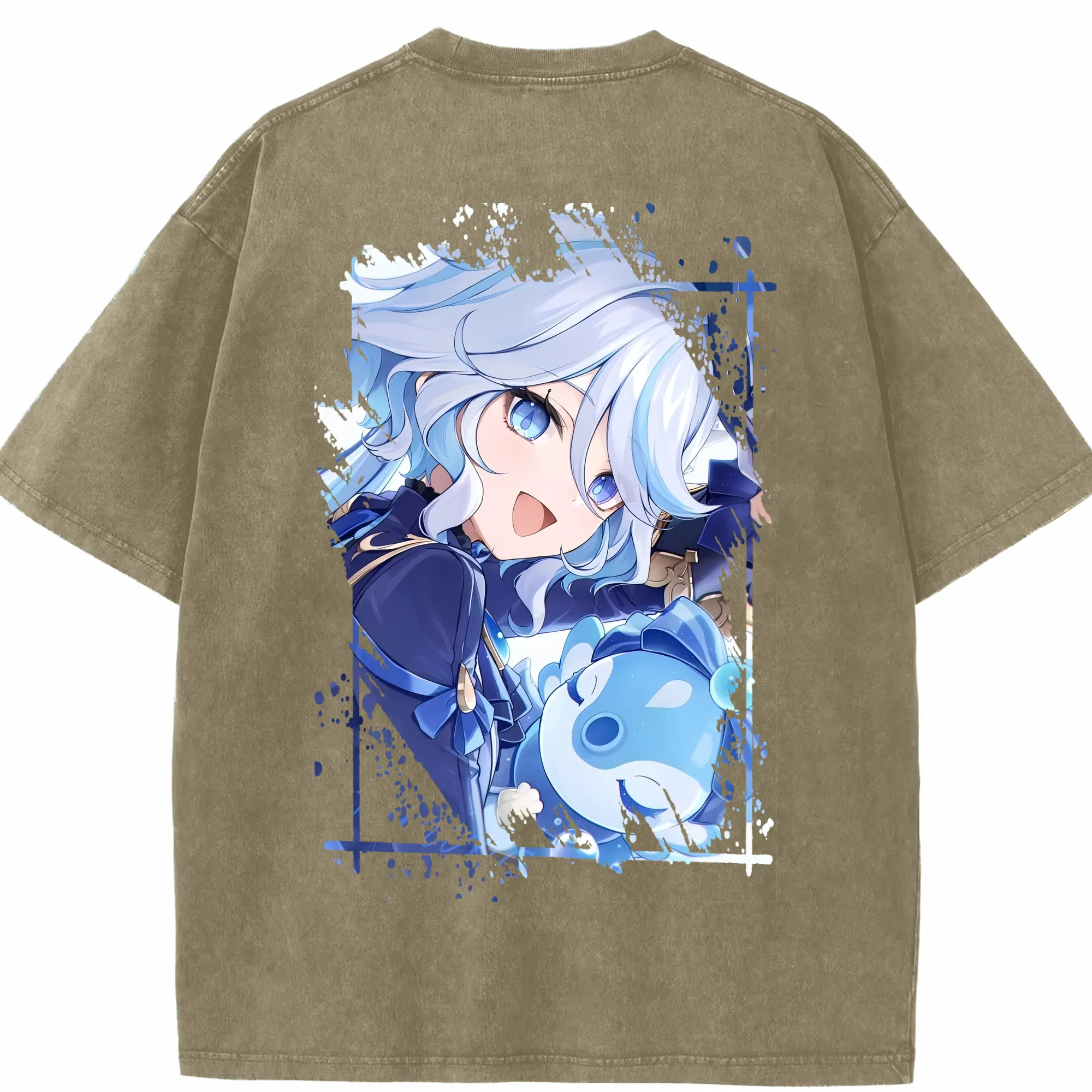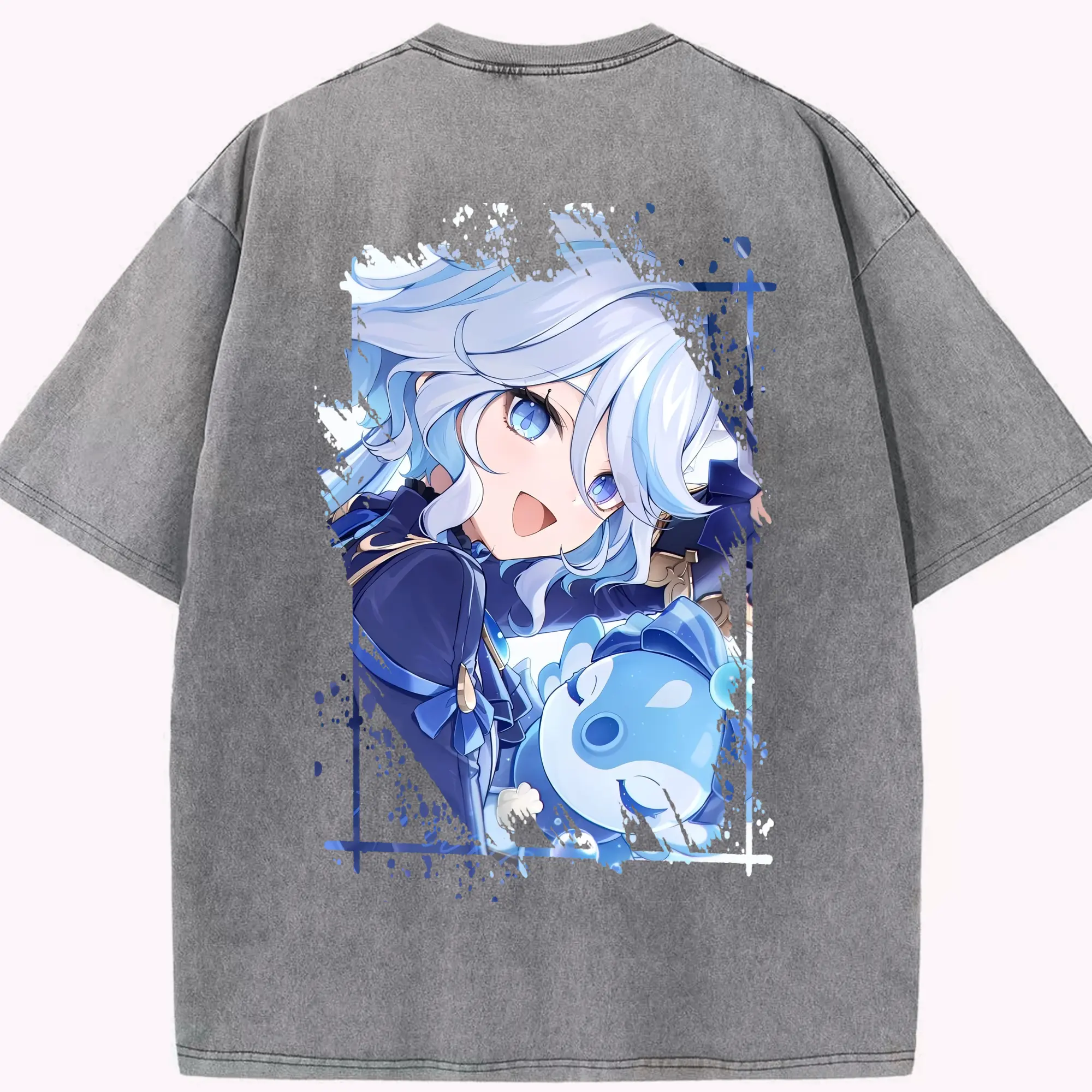原 神 グッズ フリーナ - 綿100% ヴィンテージ風 半袖Tシャツ ・ フロントプリント ・ 柔らか肌触り ・ 通気性 快適 ・ スポーツ カジュアル 外出用