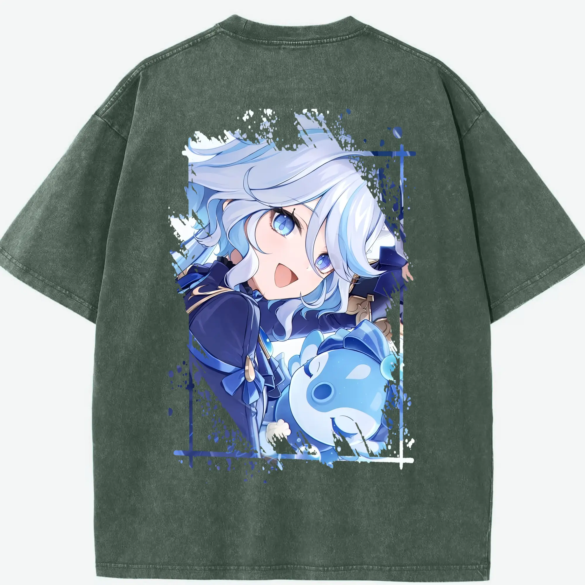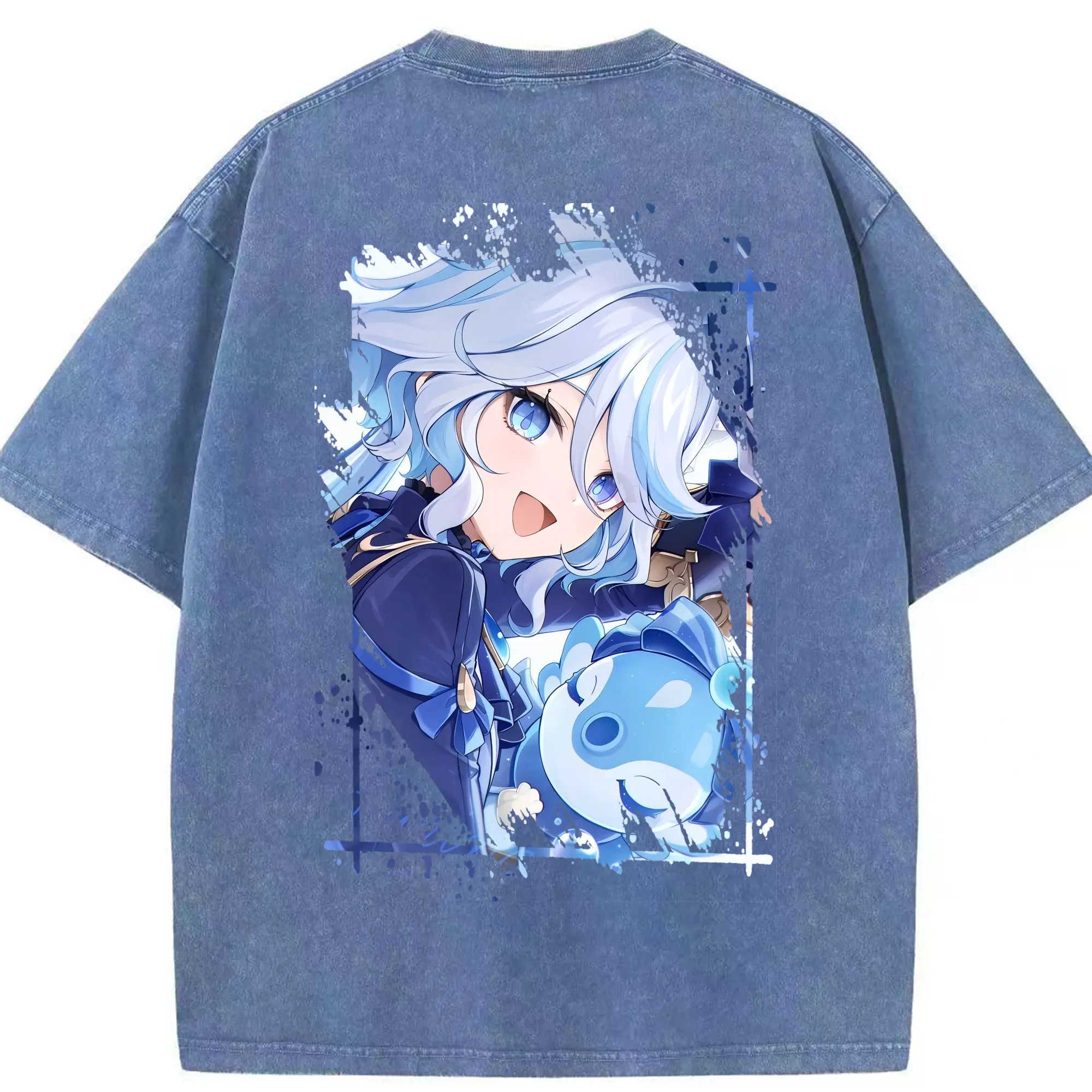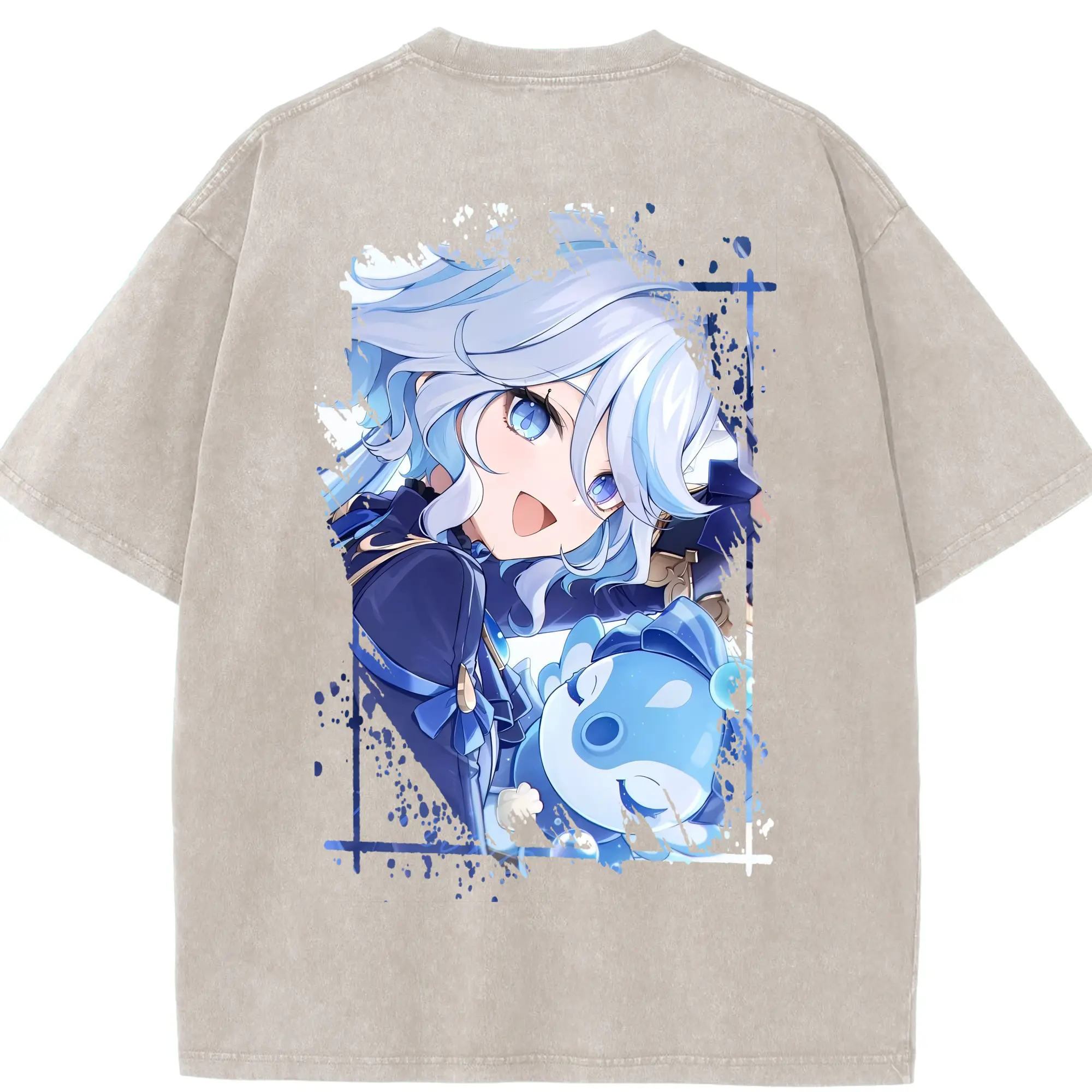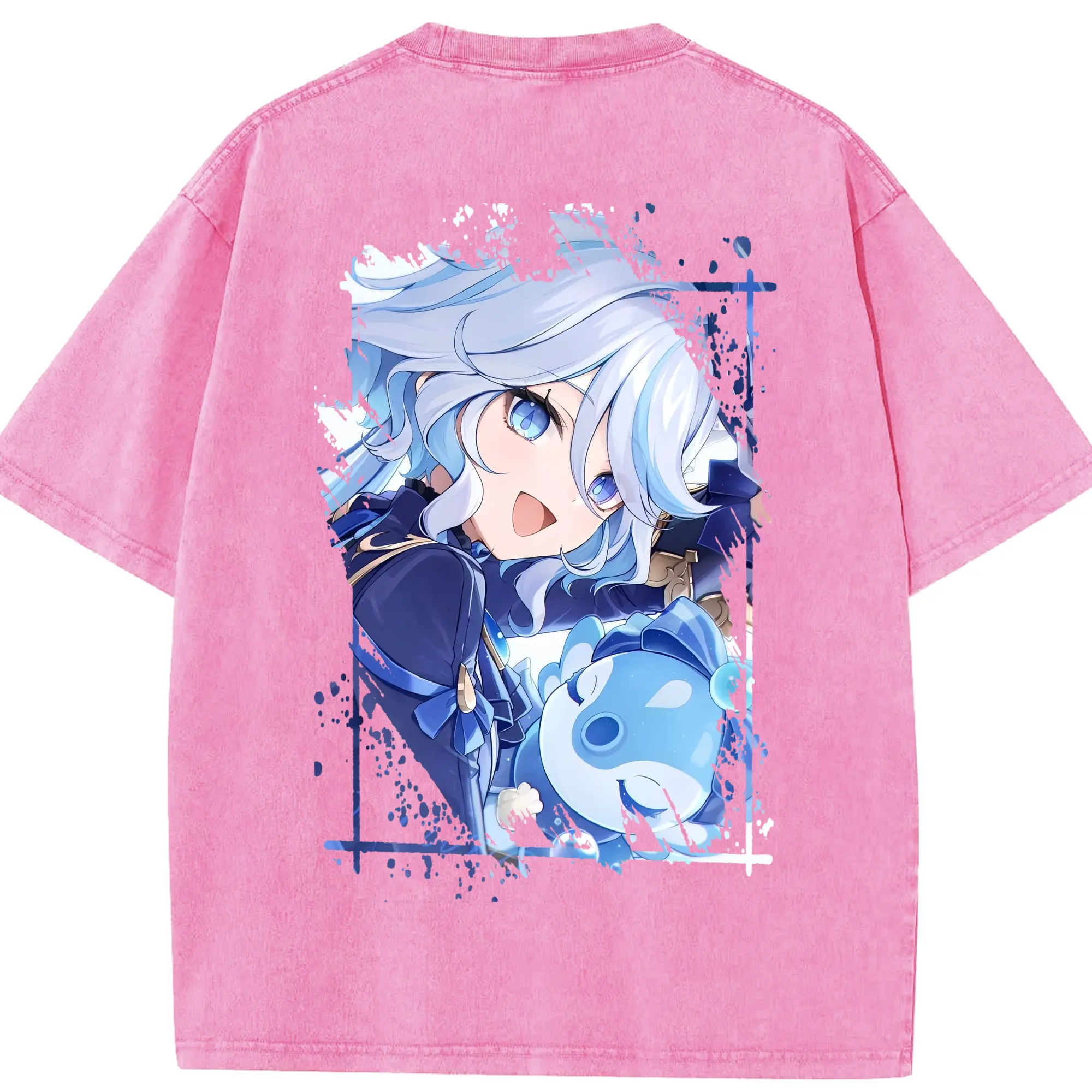原 神 グッズ フリーナ - 綿100% ヴィンテージ風 半袖Tシャツ ・ フロントプリント ・ 柔らか肌触り ・ 通気性 快適 ・ スポーツ カジュアル 外出用