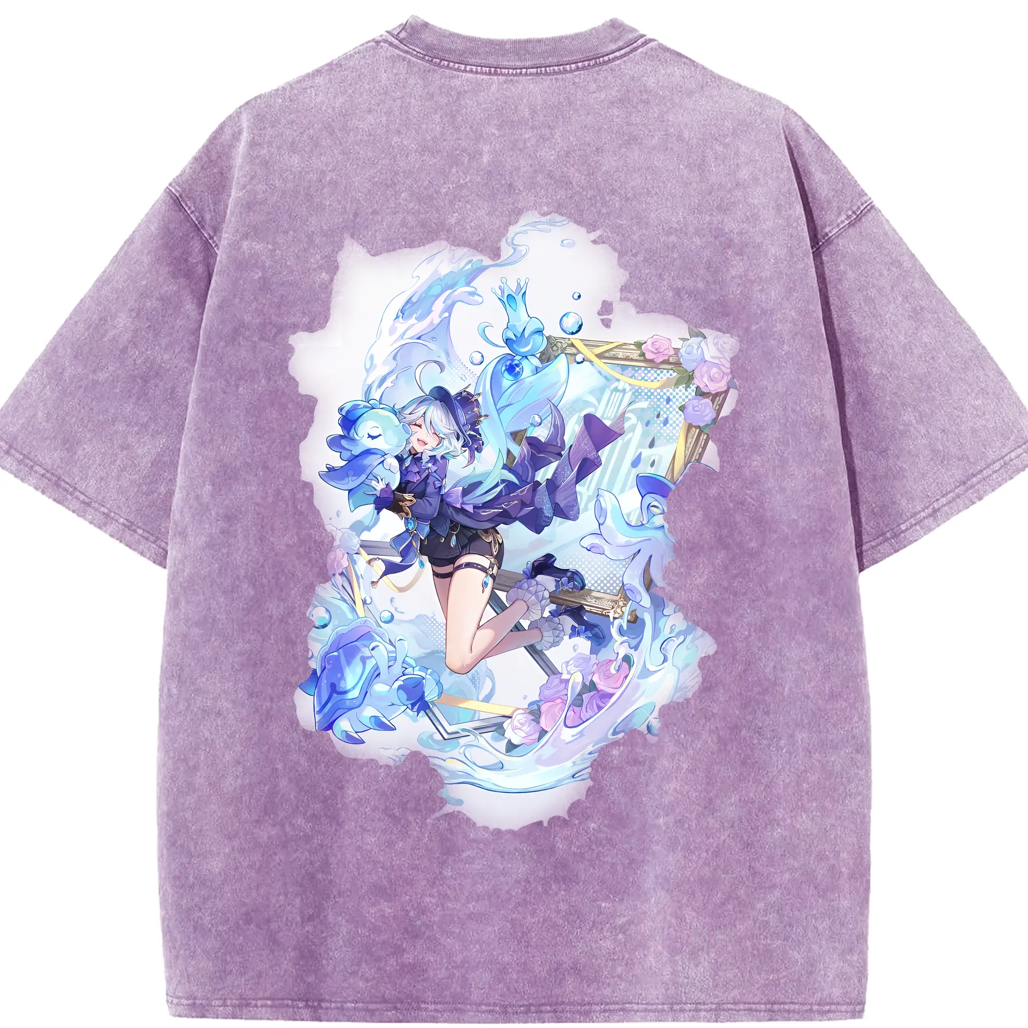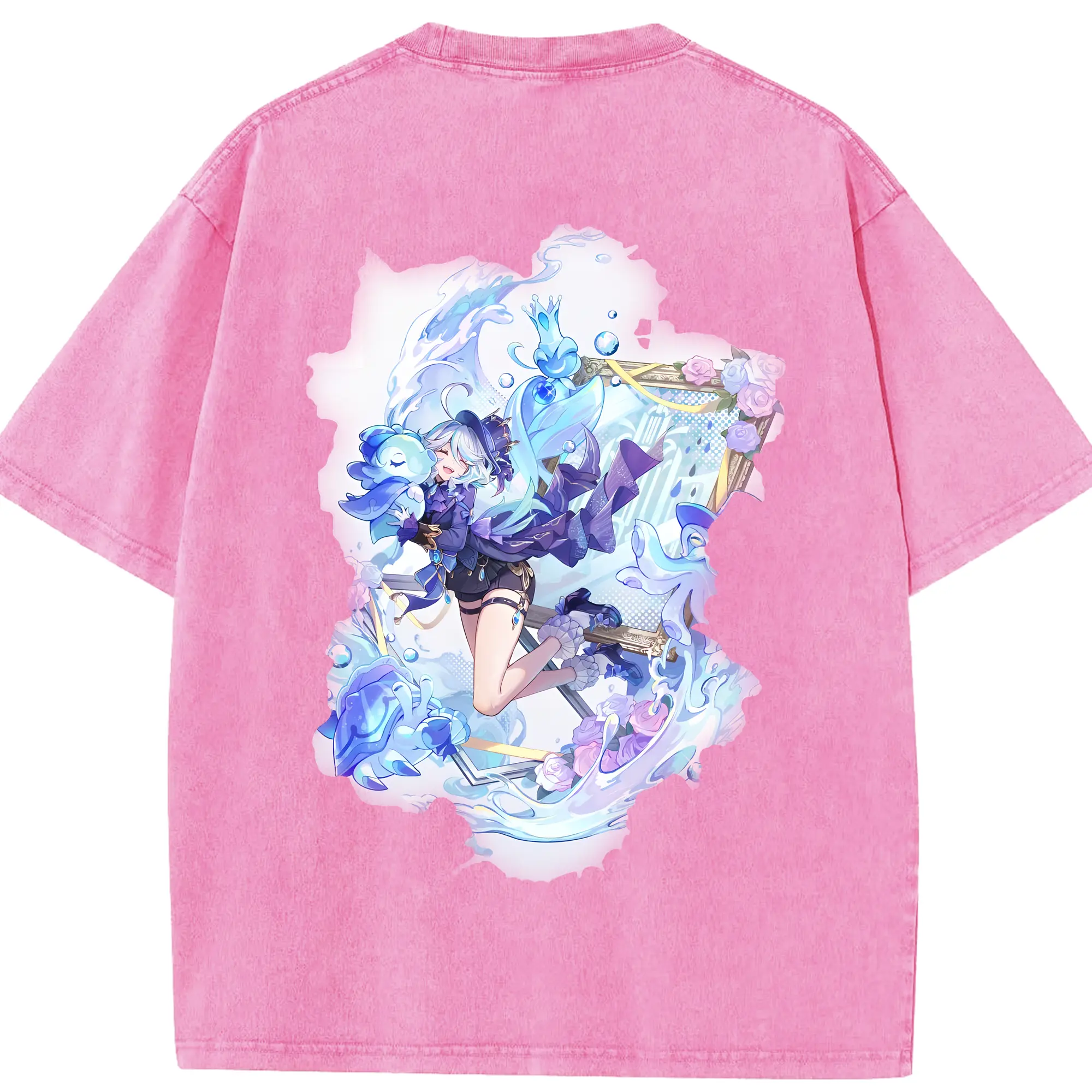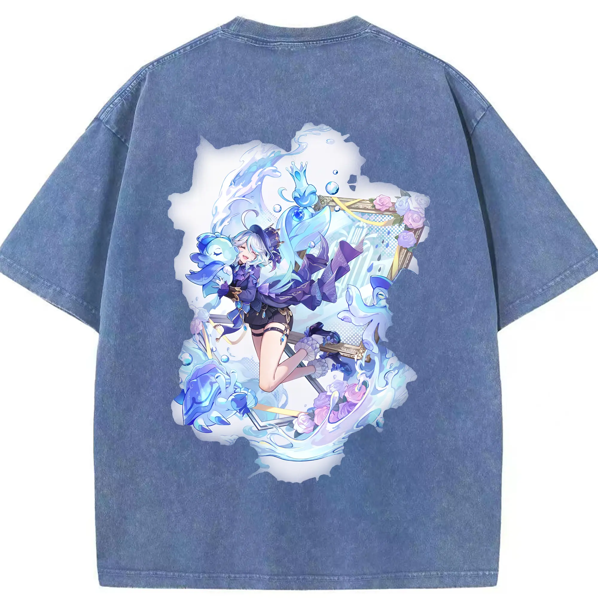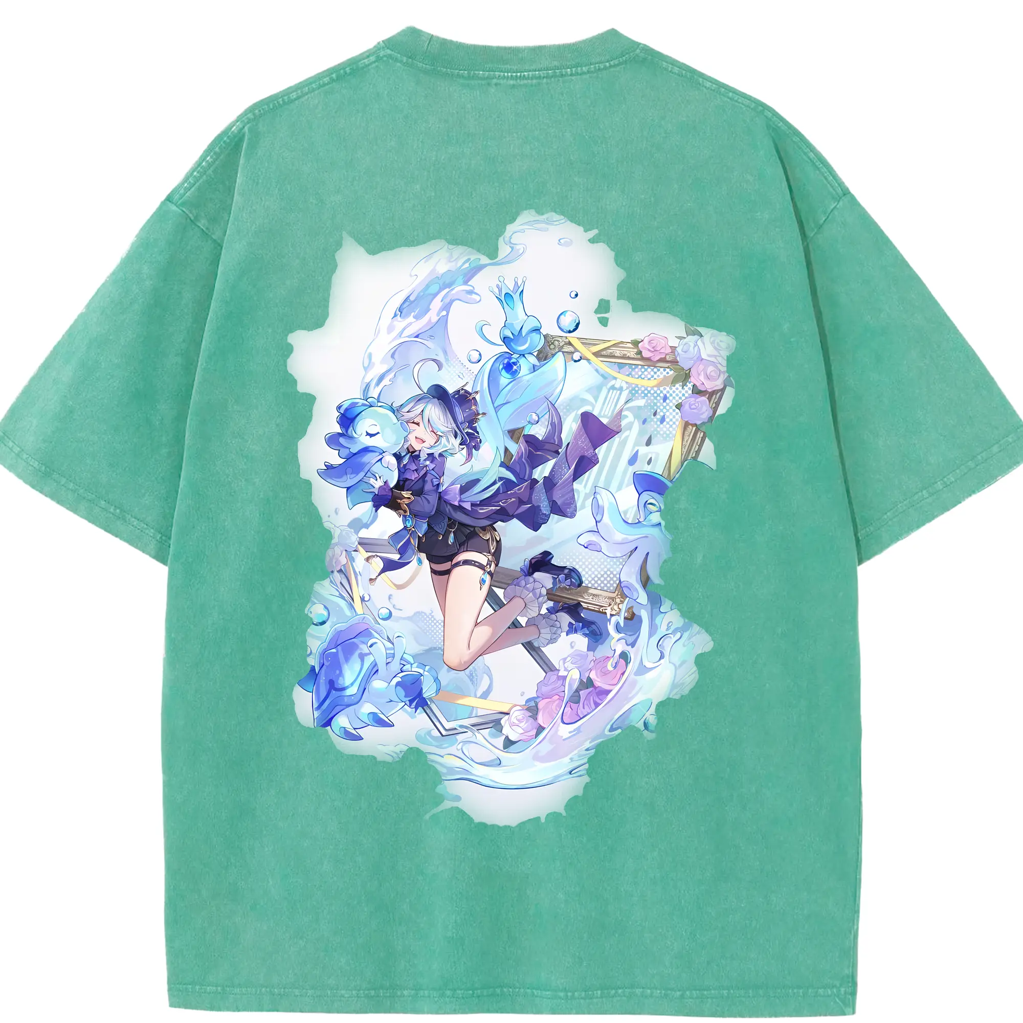 原 神 グッズ フリーナ - 綿100% ヴィンテージ風 半袖Tシャツ ・ フロントプリント ・ 柔らか肌触り ・ 通気性 快適 ・ スポーツ カジュアル 外出用