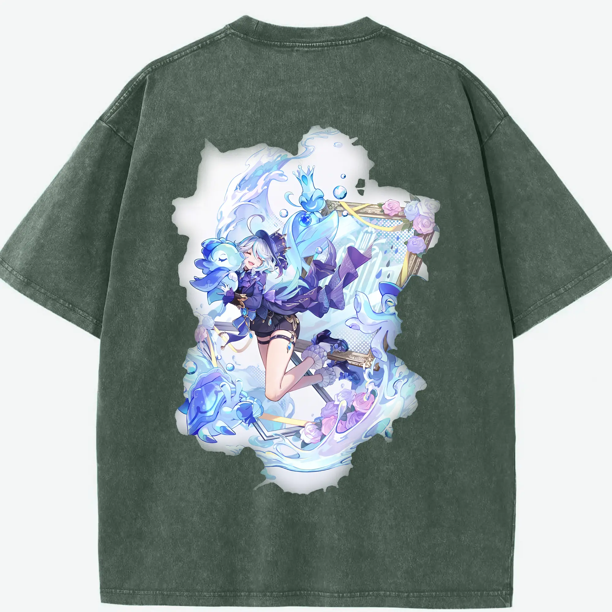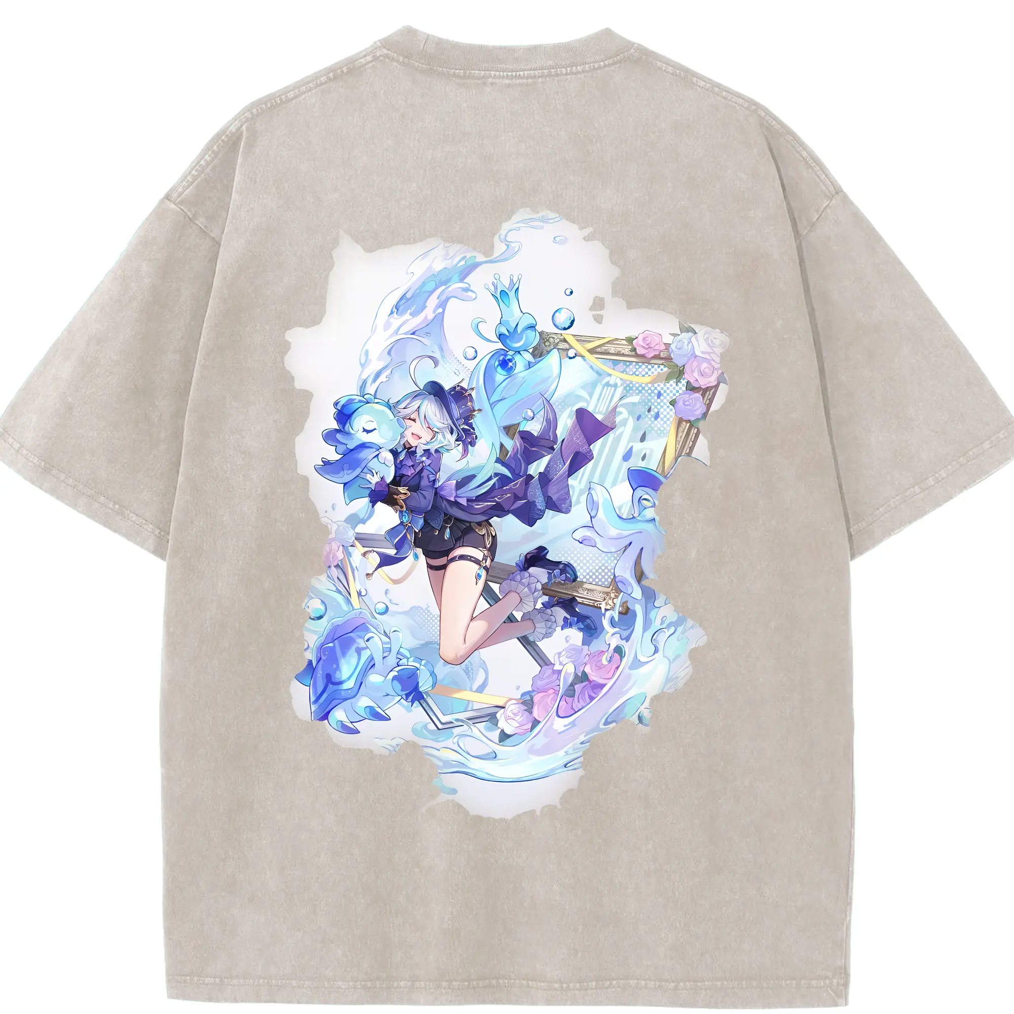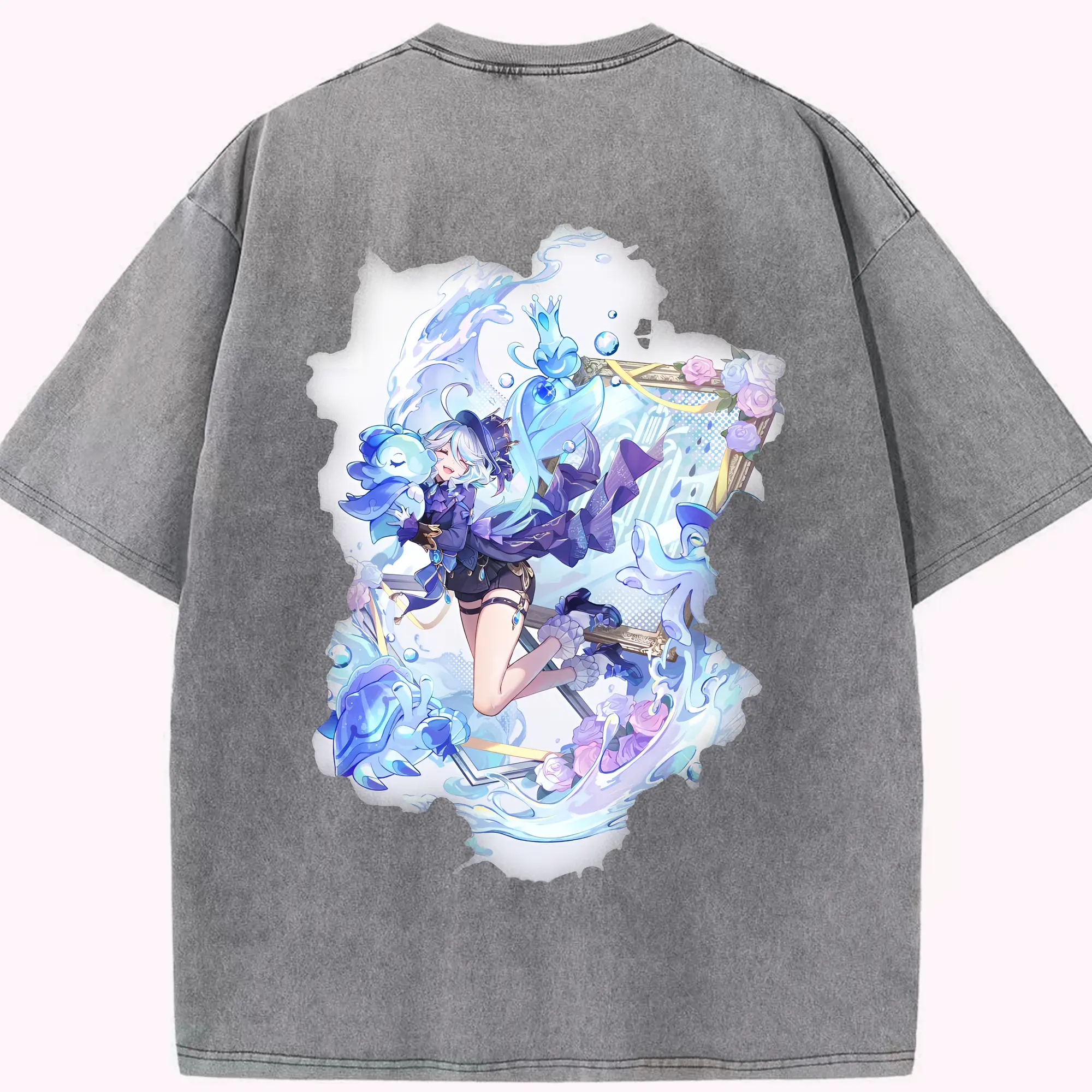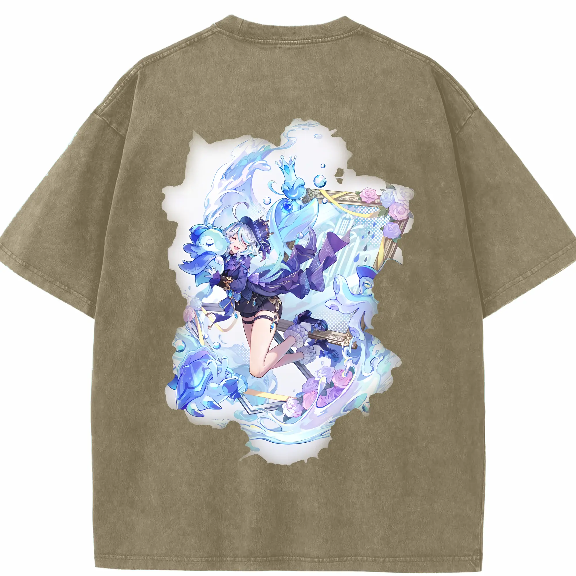 原 神 グッズ フリーナ - 綿100% ヴィンテージ風 半袖Tシャツ ・ フロントプリント ・ 柔らか肌触り ・ 通気性 快適 ・ スポーツ カジュアル 外出用