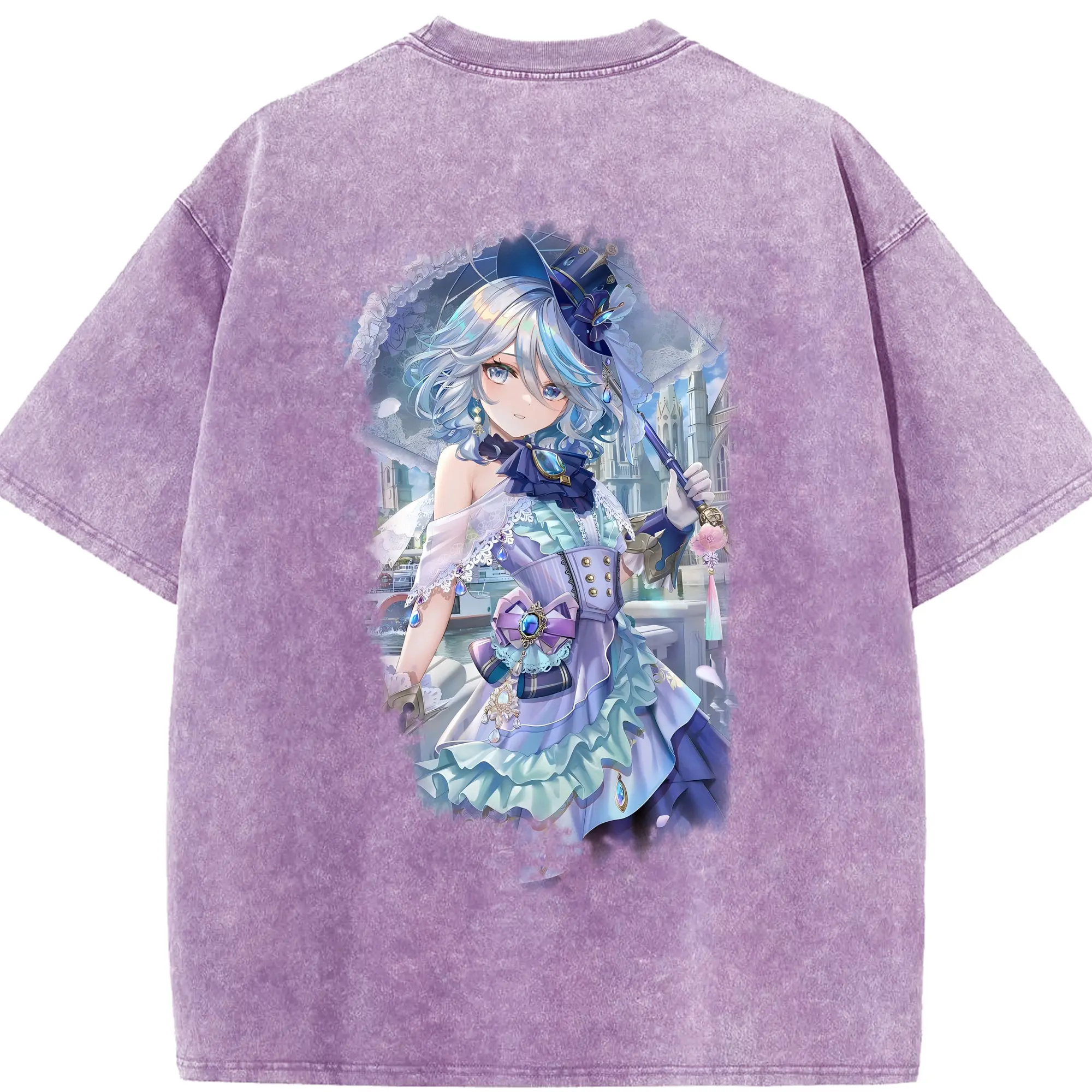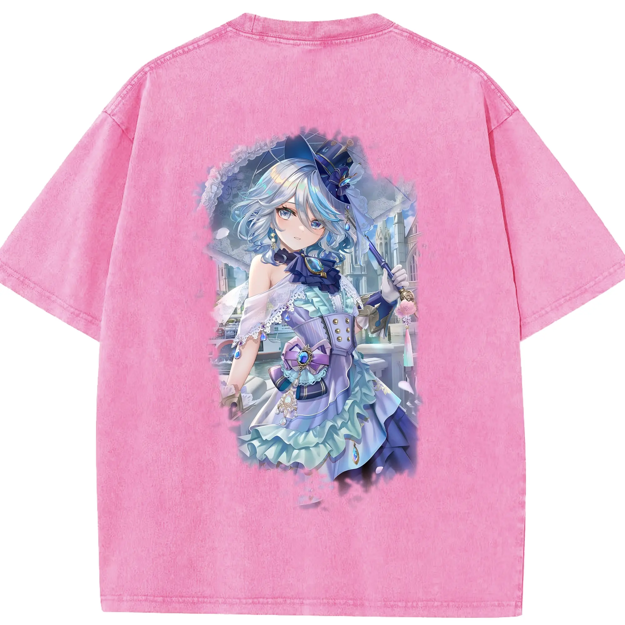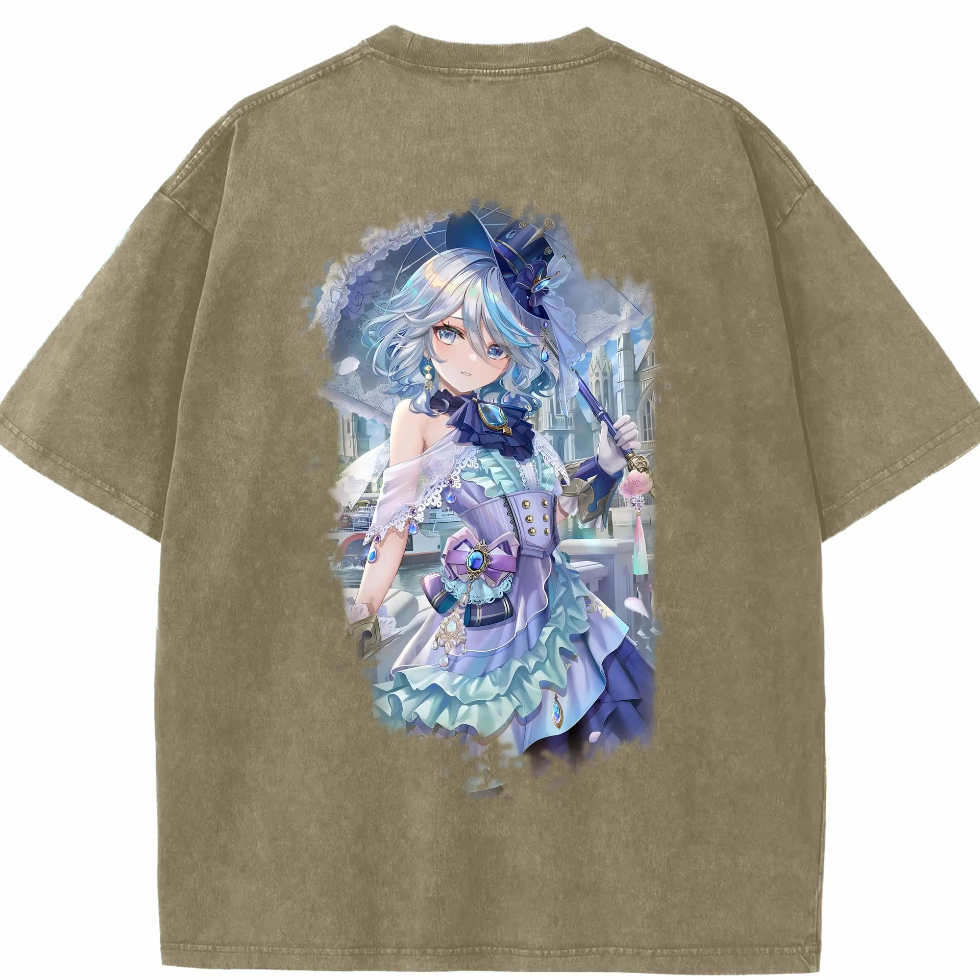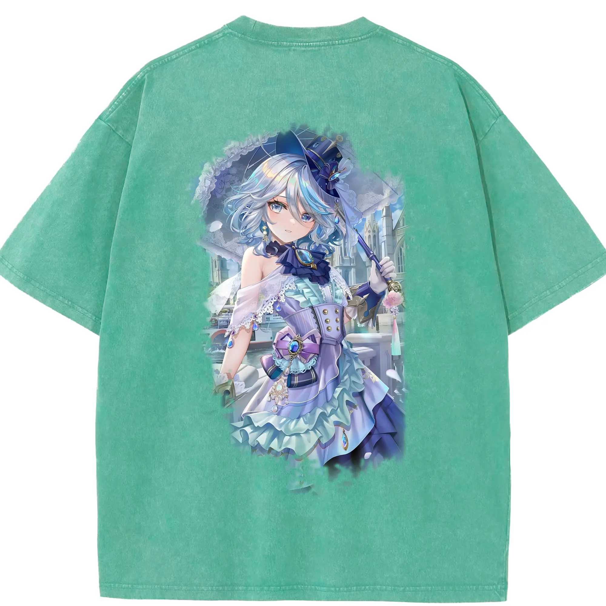 原 神 グッズ フリーナ - 綿100% ヴィンテージ風 半袖Tシャツ ・ フロントプリント ・ 柔らか肌触り ・ 通気性 快適 ・ スポーツ カジュアル 外出用