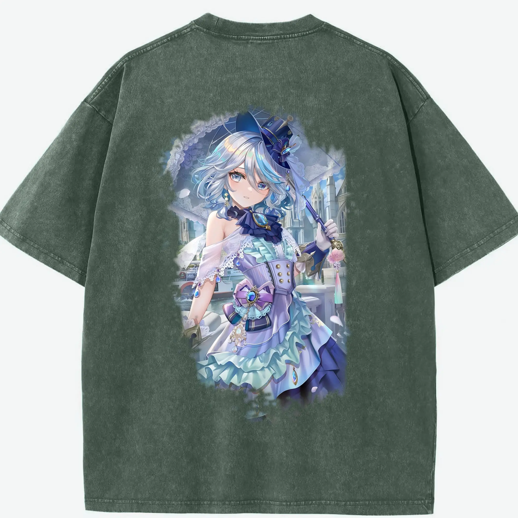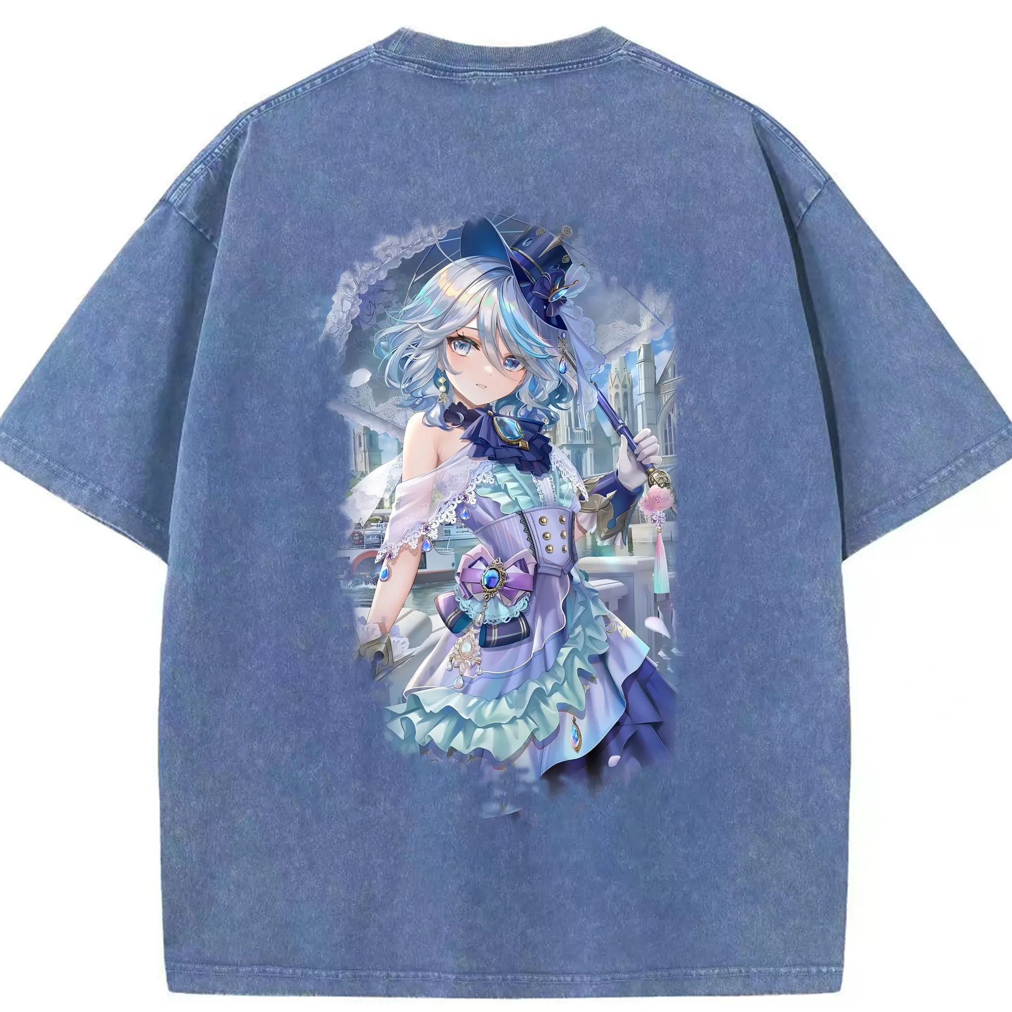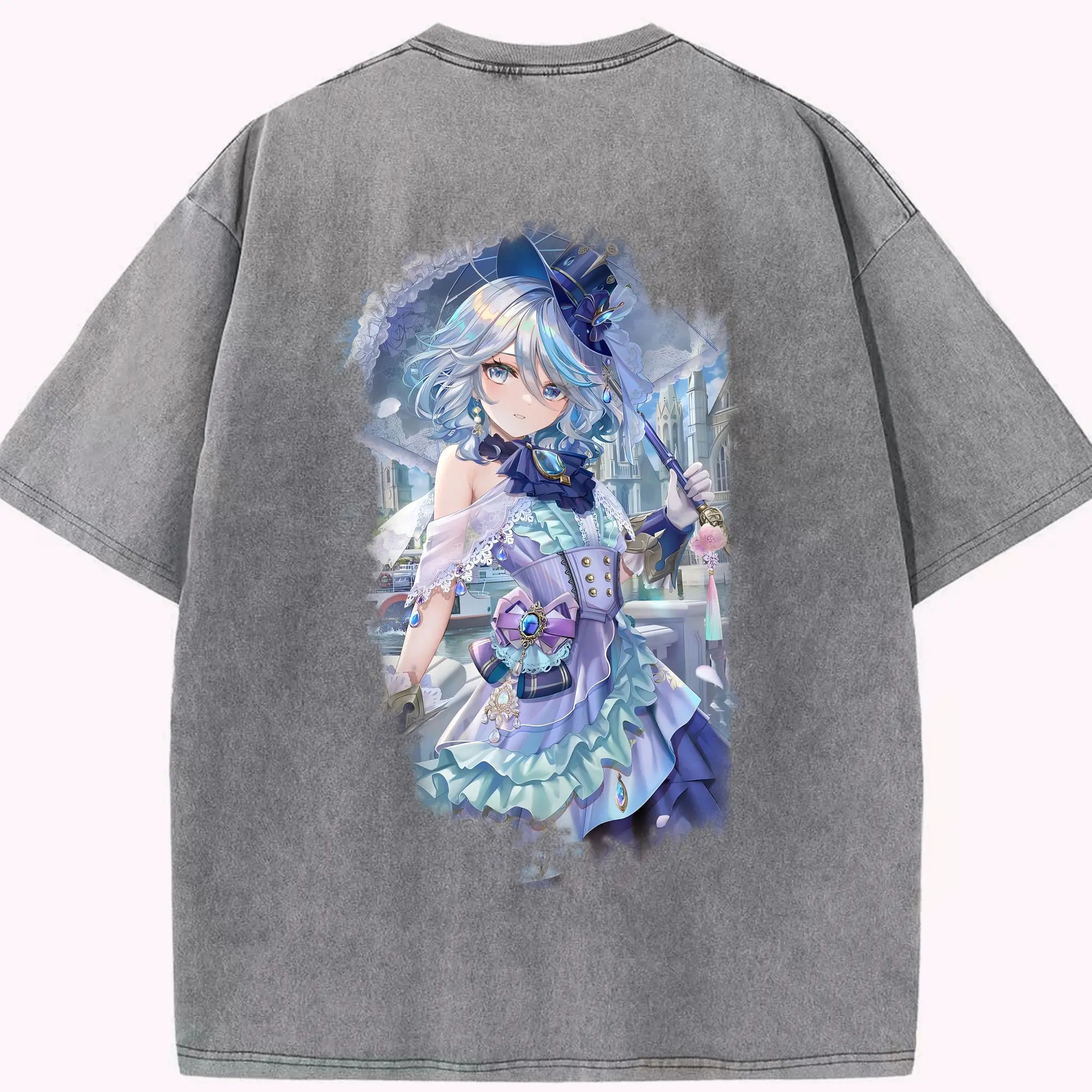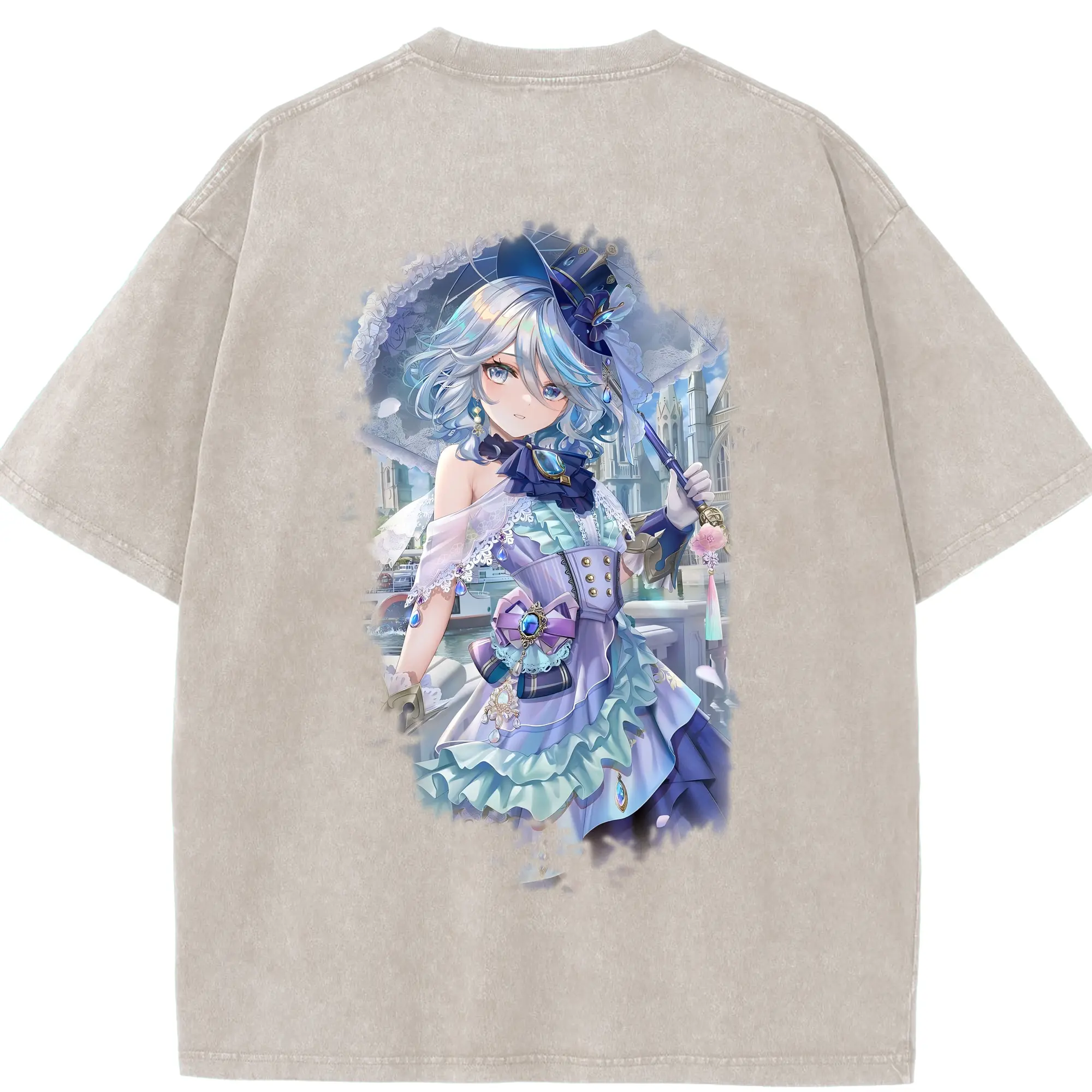 原 神 グッズ フリーナ - 綿100% ヴィンテージ風 半袖Tシャツ ・ フロントプリント ・ 柔らか肌触り ・ 通気性 快適 ・ スポーツ カジュアル 外出用