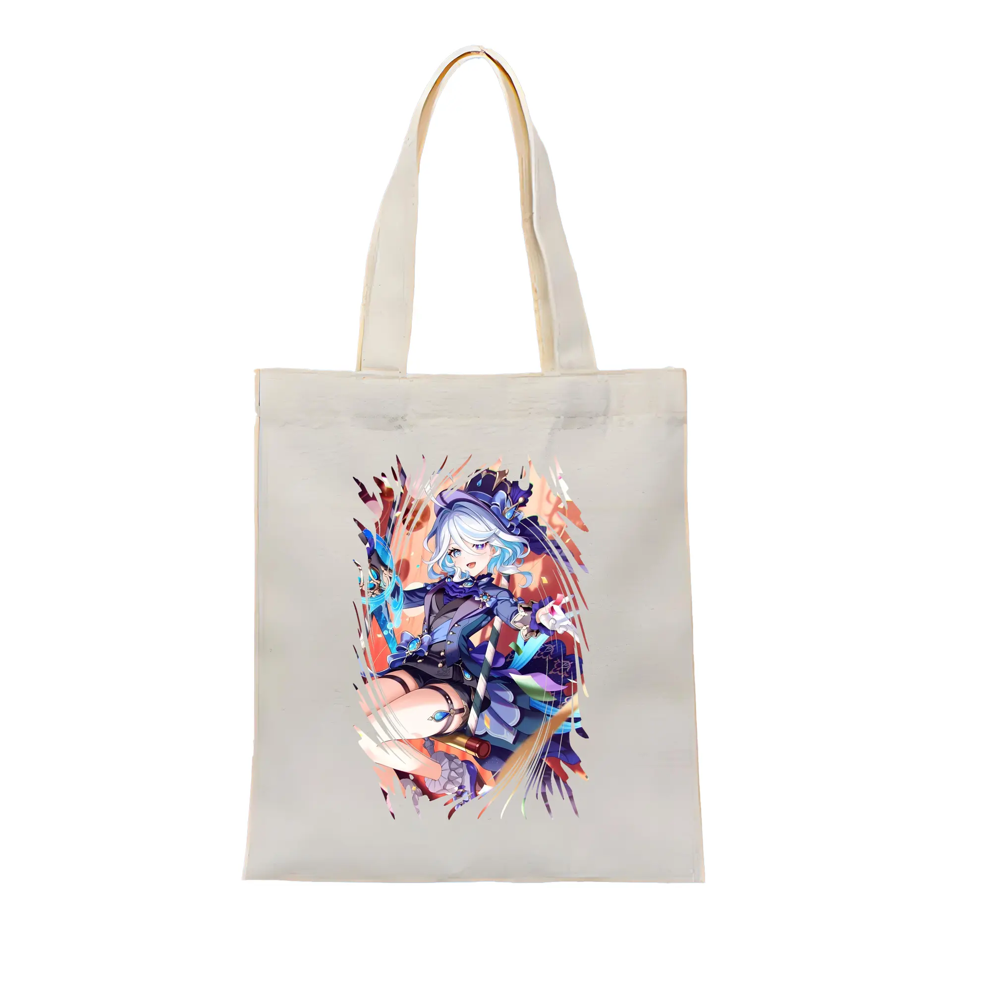 原 神 グッズ フリーナ - 縦型キャンバス手提げバッグ(トートバッグ) ・ キャンバス素材 ・ ショッピング用 ・ 軽量 丈夫 お手入れ簡単