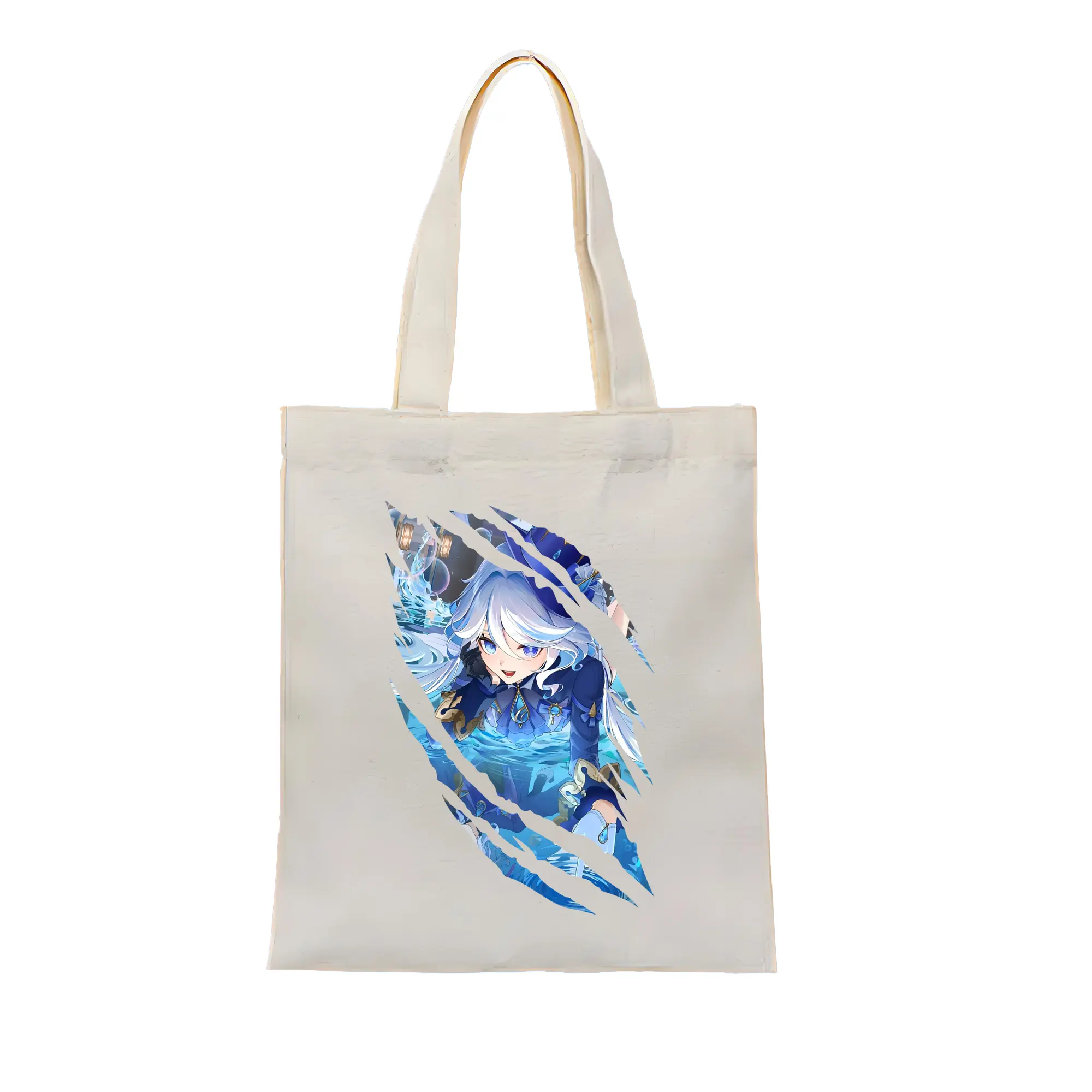 原 神 グッズ フリーナ - 縦型キャンバス手提げバッグ(トートバッグ) ・ キャンバス素材 ・ ショッピング用 ・ 軽量 丈夫 お手入れ簡単