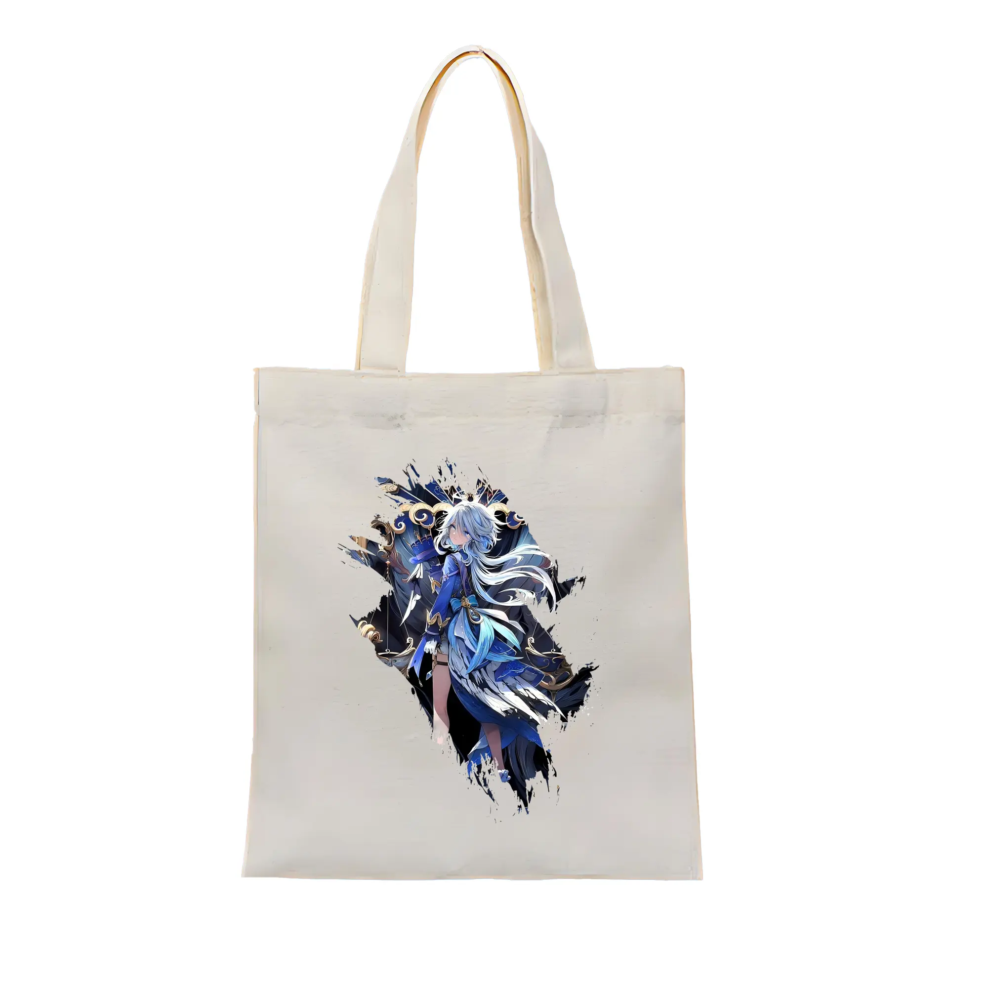 原 神 グッズ フリーナ - 縦型キャンバス手提げバッグ(トートバッグ) ・ キャンバス素材 ・ ショッピング用 ・ 軽量 丈夫 お手入れ簡単