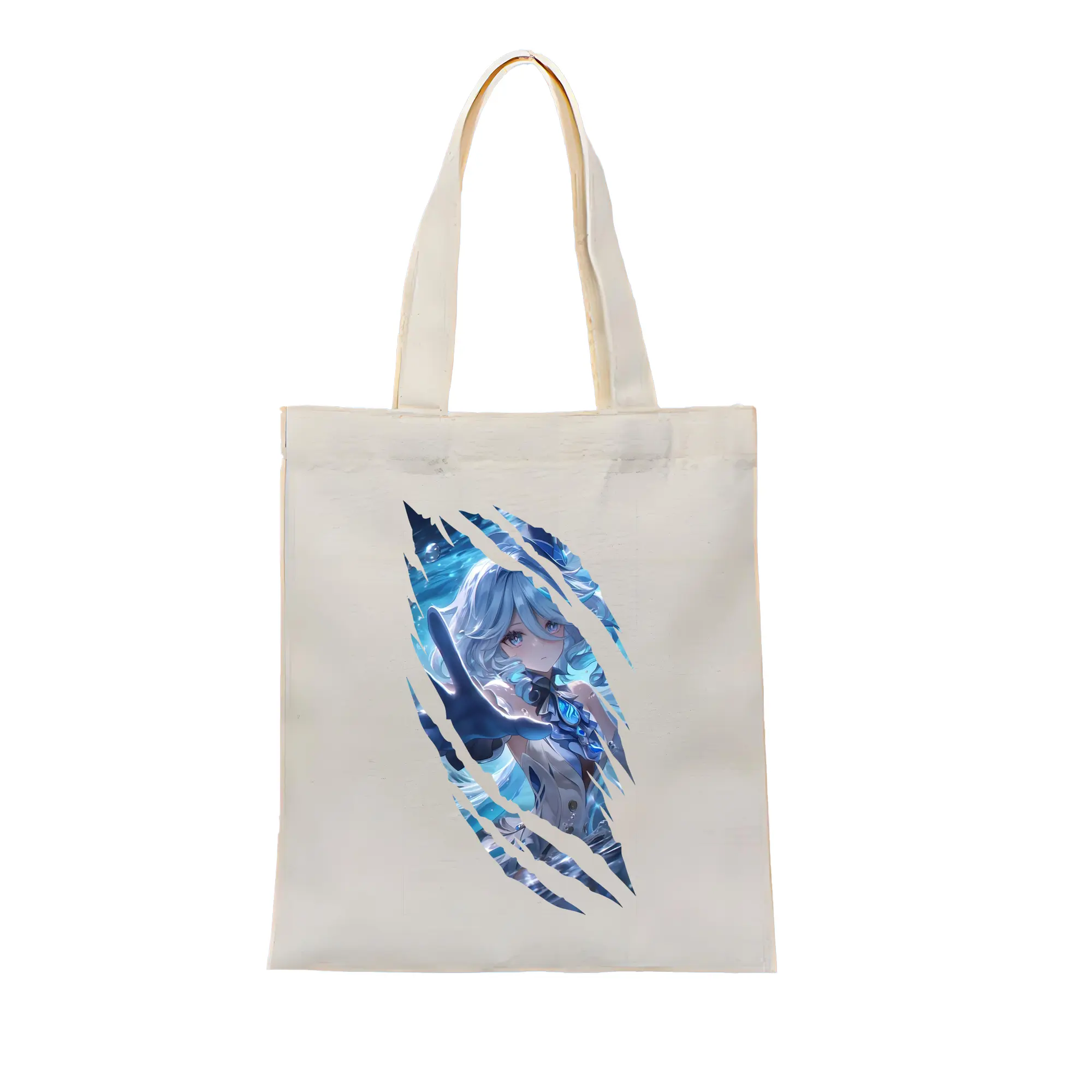 原 神 グッズ フリーナ - 縦型キャンバス手提げバッグ(トートバッグ) ・ キャンバス素材 ・ ショッピング用 ・ 軽量 丈夫 お手入れ簡単