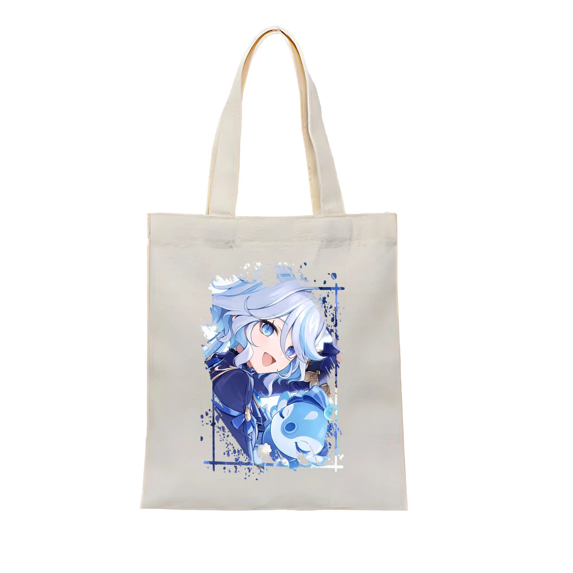 原 神 グッズ フリーナ - 縦型キャンバス手提げバッグ(トートバッグ) ・ キャンバス素材 ・ ショッピング用 ・ 軽量 丈夫 お手入れ簡単