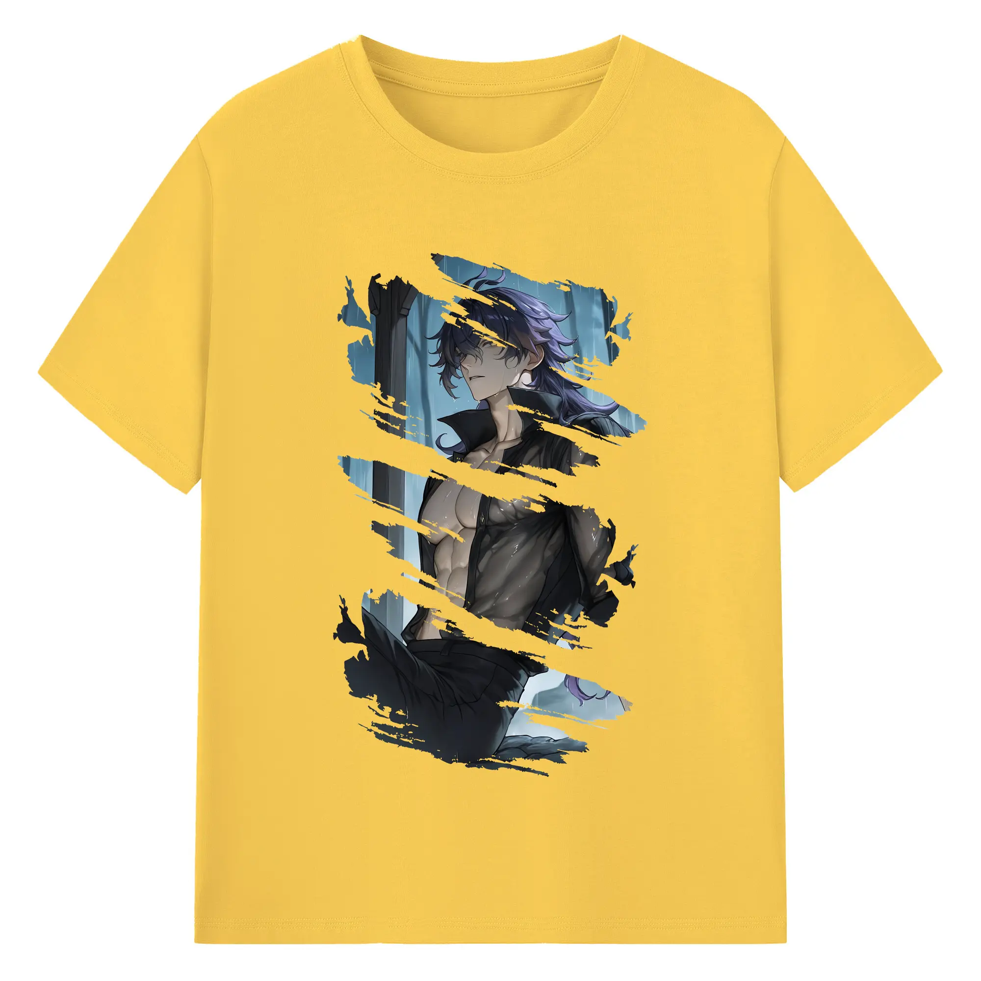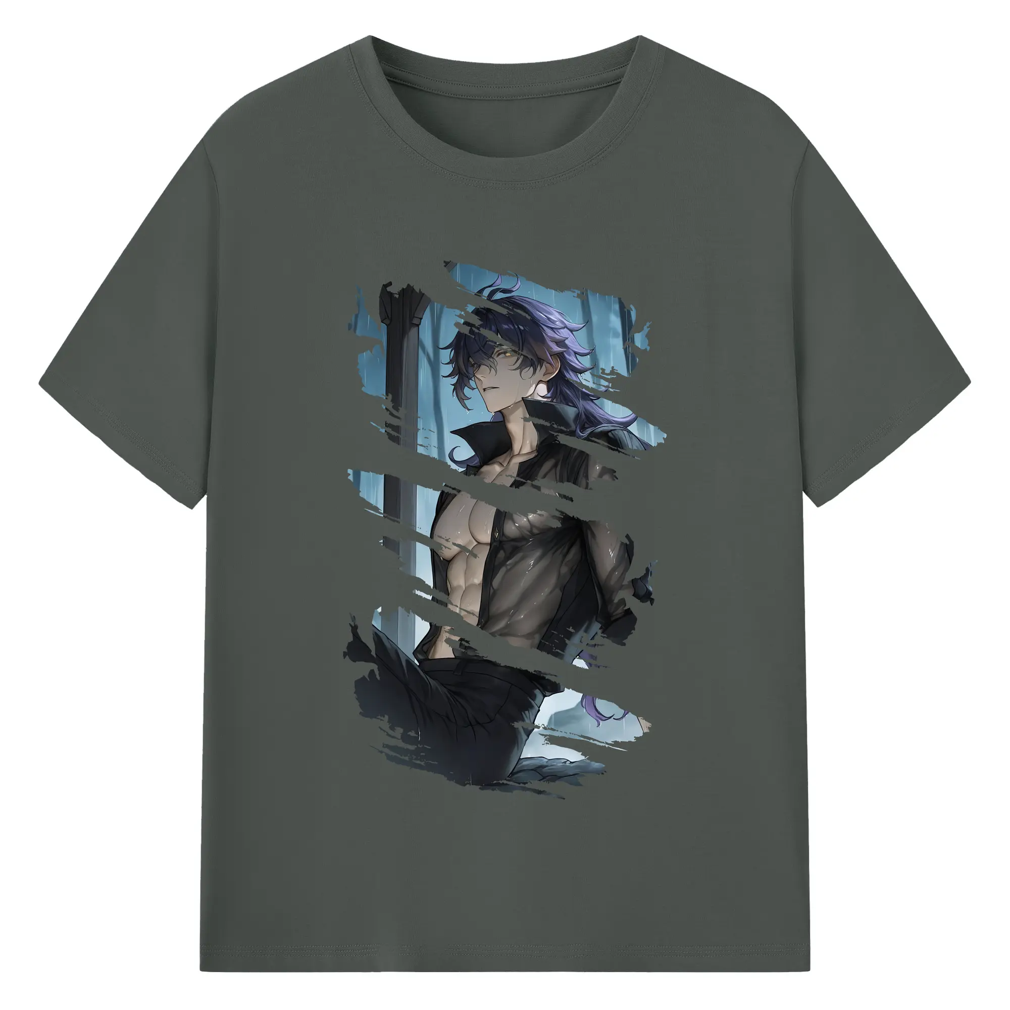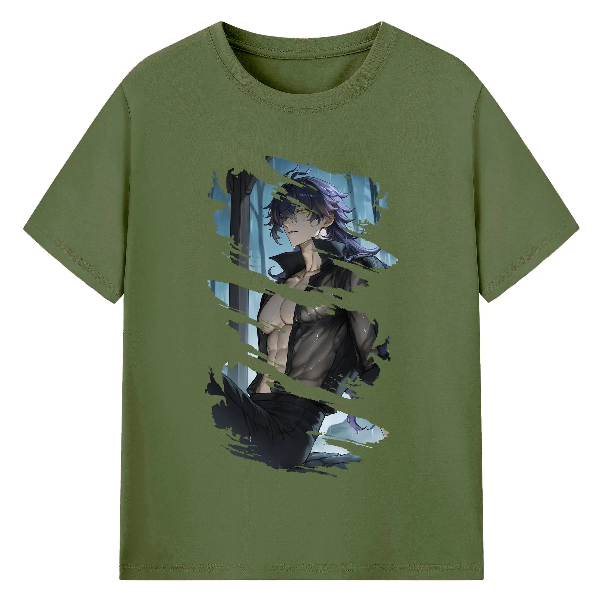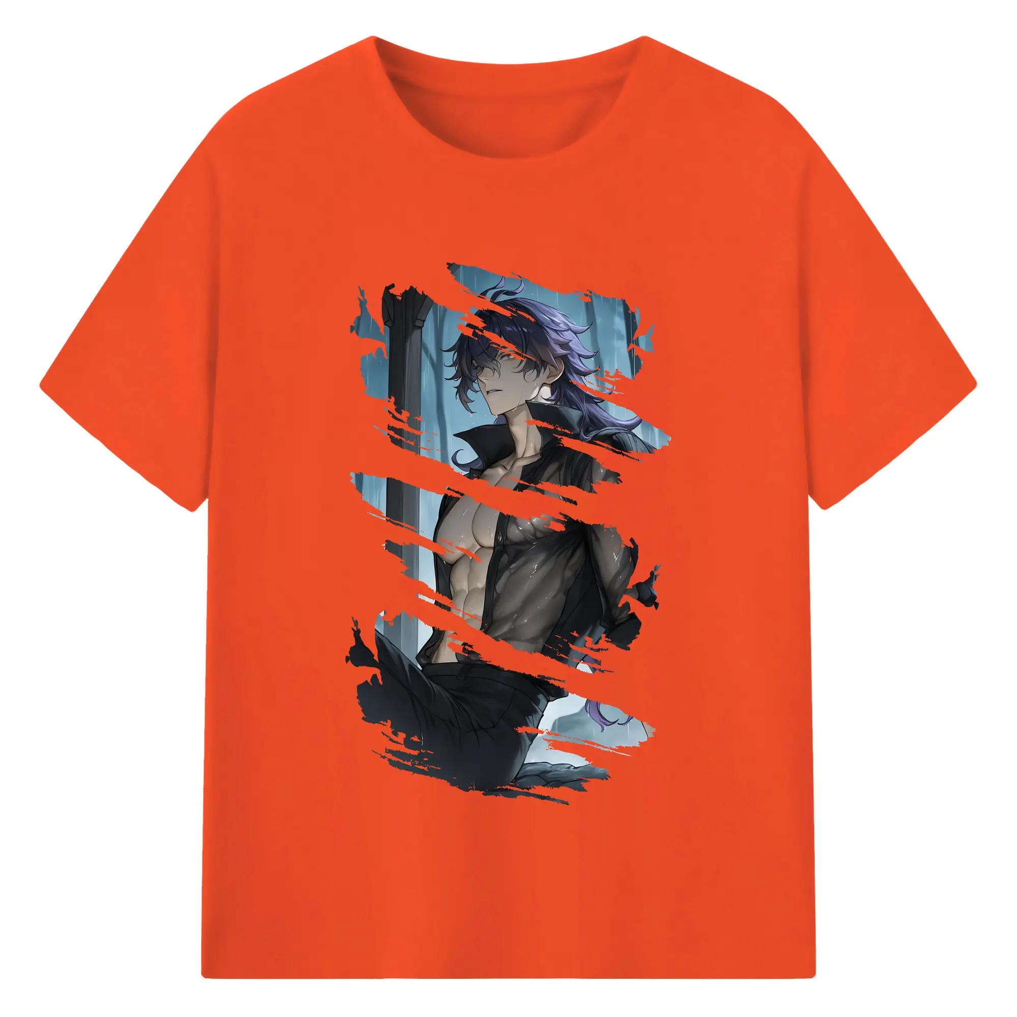 鬼滅の刃 グッズ,不死川 実弥 - 綿100% 半袖Tシャツ ・ フロントプリント ・ 快適 通気性 ・ 日常使い 散歩 スポーツ用